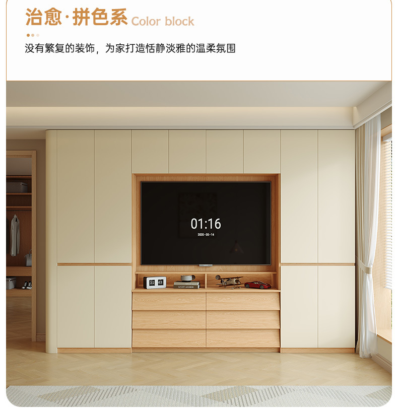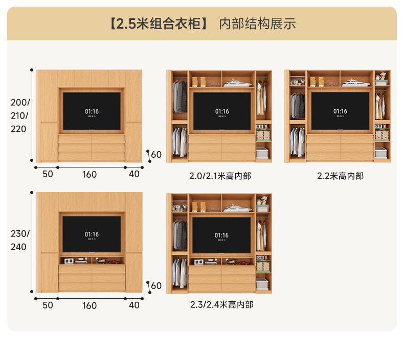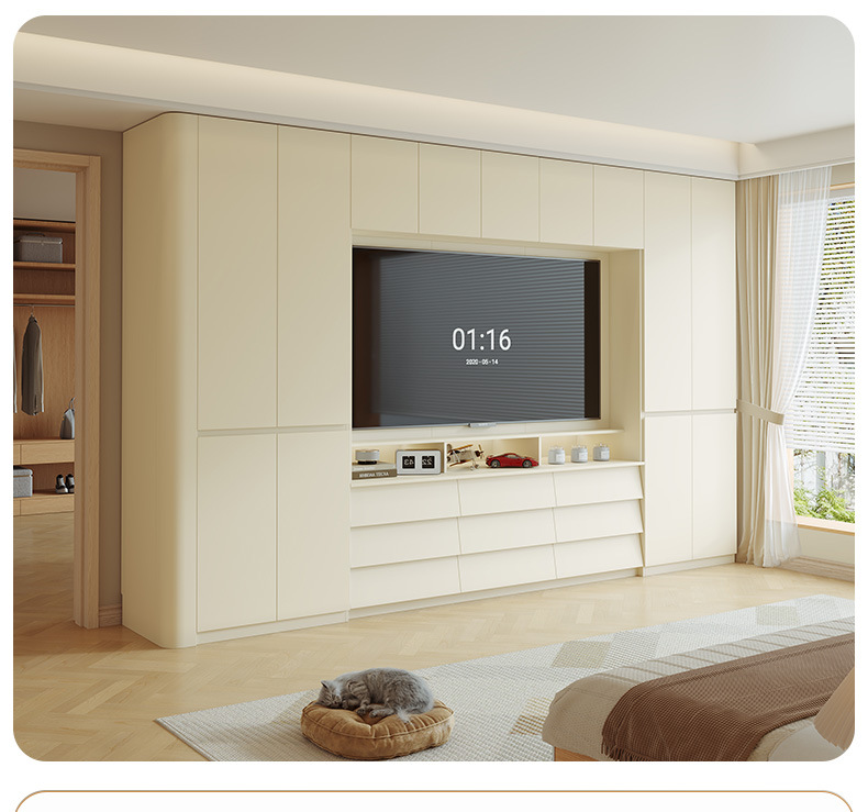 전체 단단한 참나무 분할 아크 옷장은 TV를 내장할 수 있습니다. 새로운 침실 홈 조합 대형 옷장스토어 가기