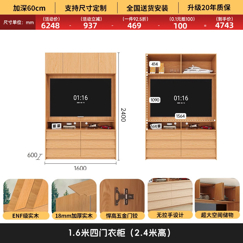 • 1.6*2.4(4도어 옷장)에 TV를 수납할 수 있습니다.