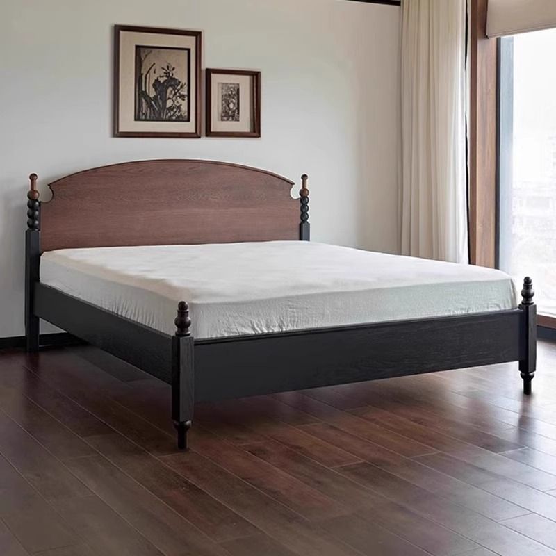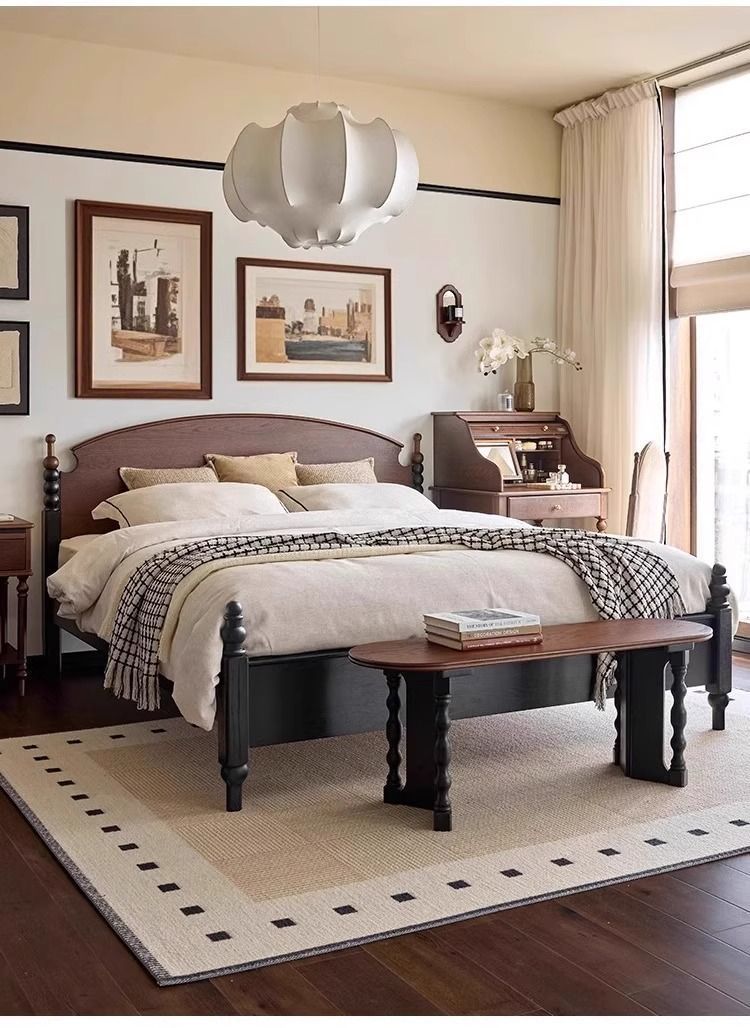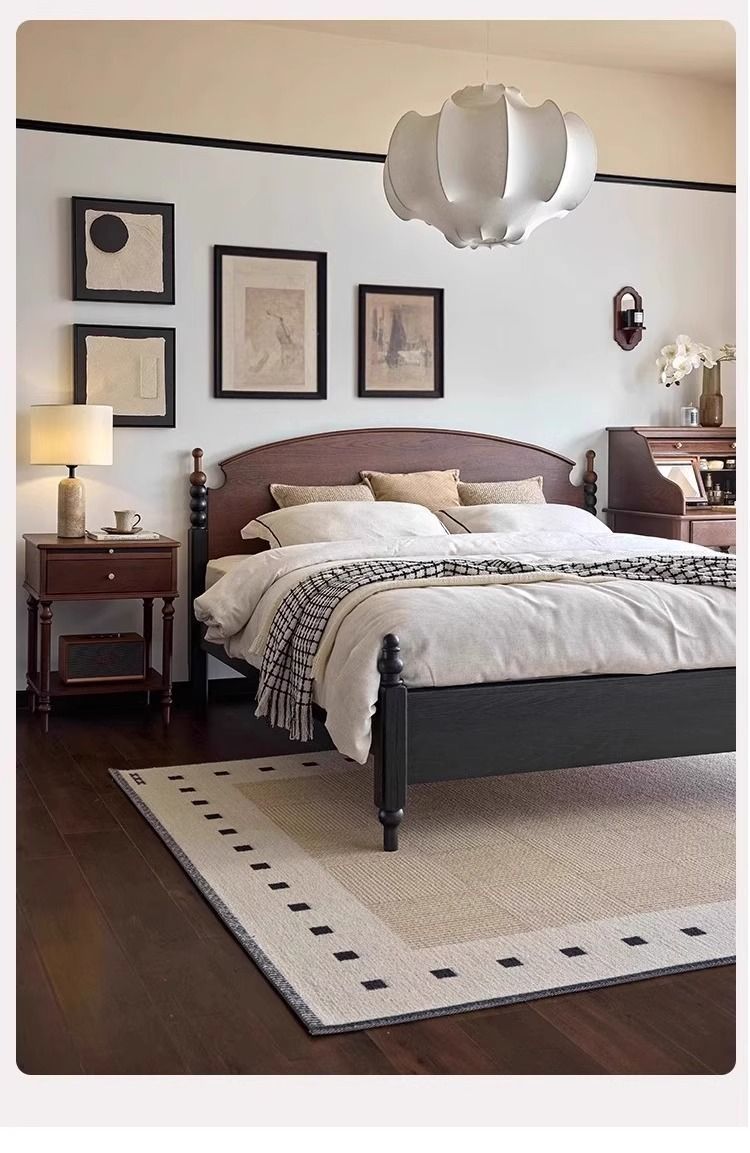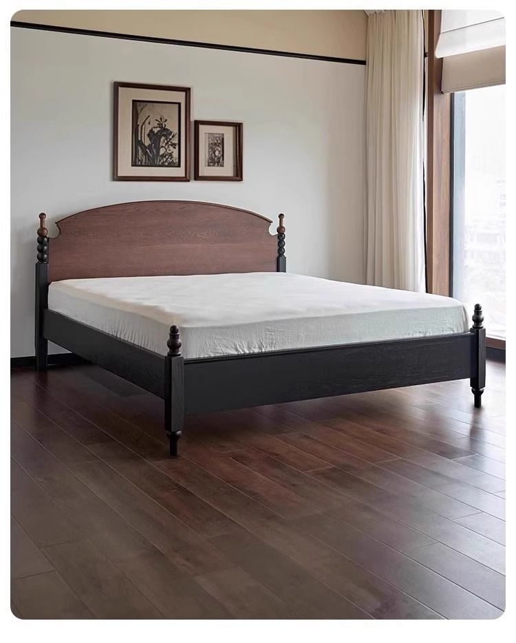 프렌치 레트로 스타일의 소형 원목 침대, 마스터 침실 더블 침대, 중세 스타일의 고급스럽고 분위기 있는 애쉬 우드 심플 웨딩 침대