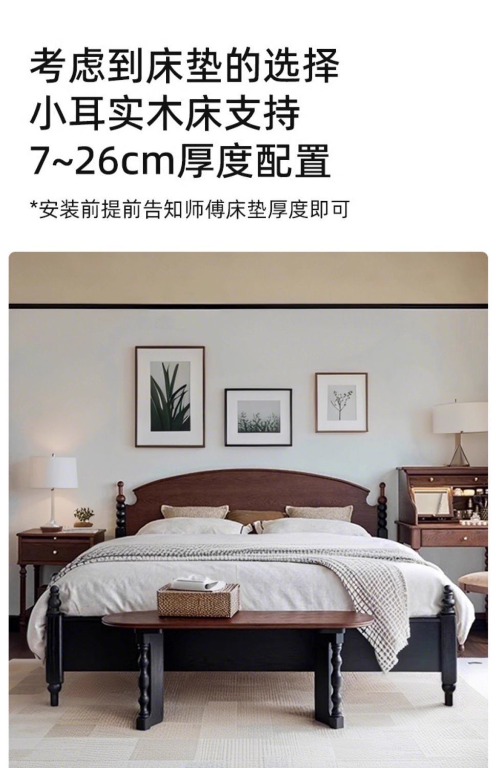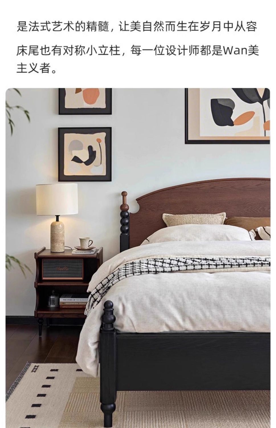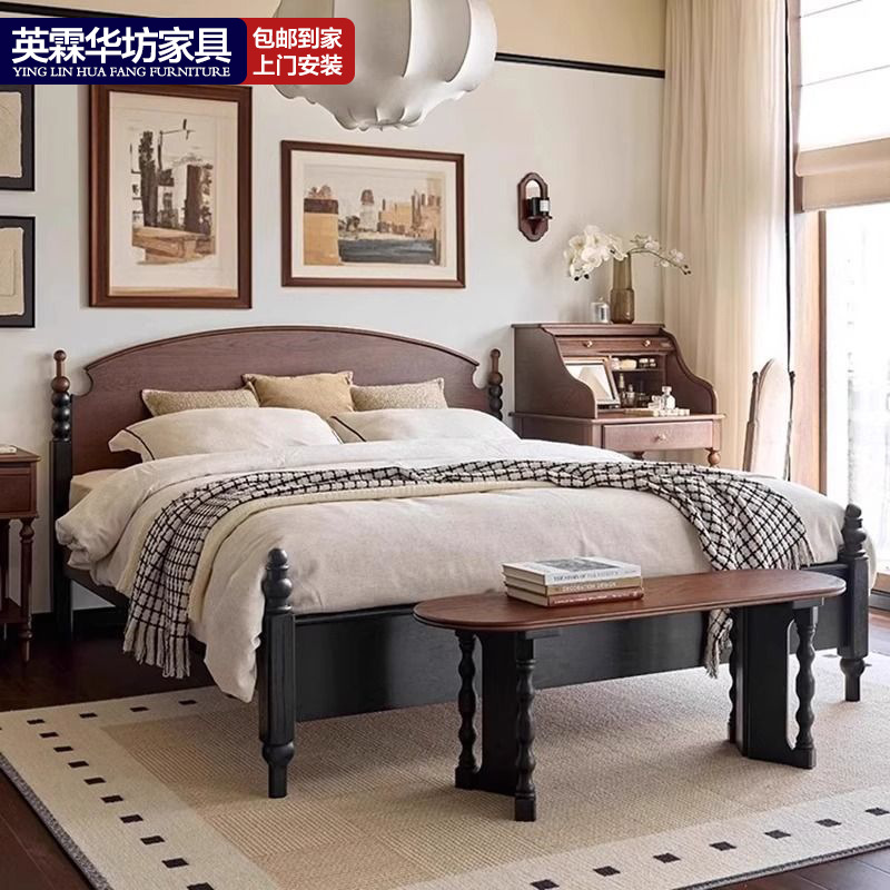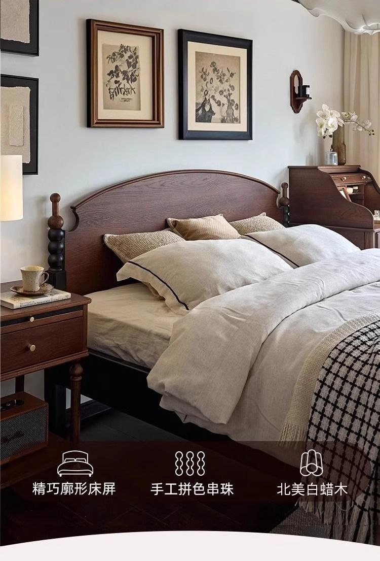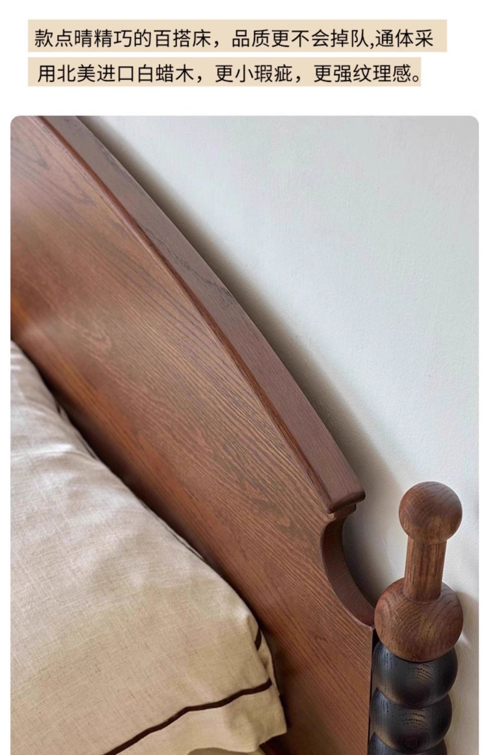 프렌치 레트로 스타일의 소형 원목 침대, 마스터 침실 더블 침대, 중세 스타일의 고급스럽고 분위기 있는 애쉬 우드 심플 웨딩 침대스토어 가기