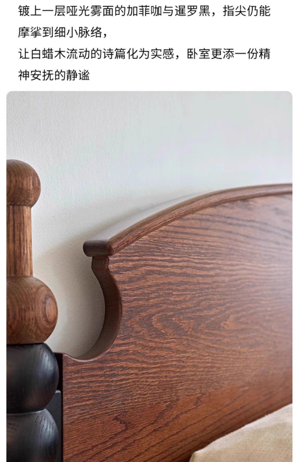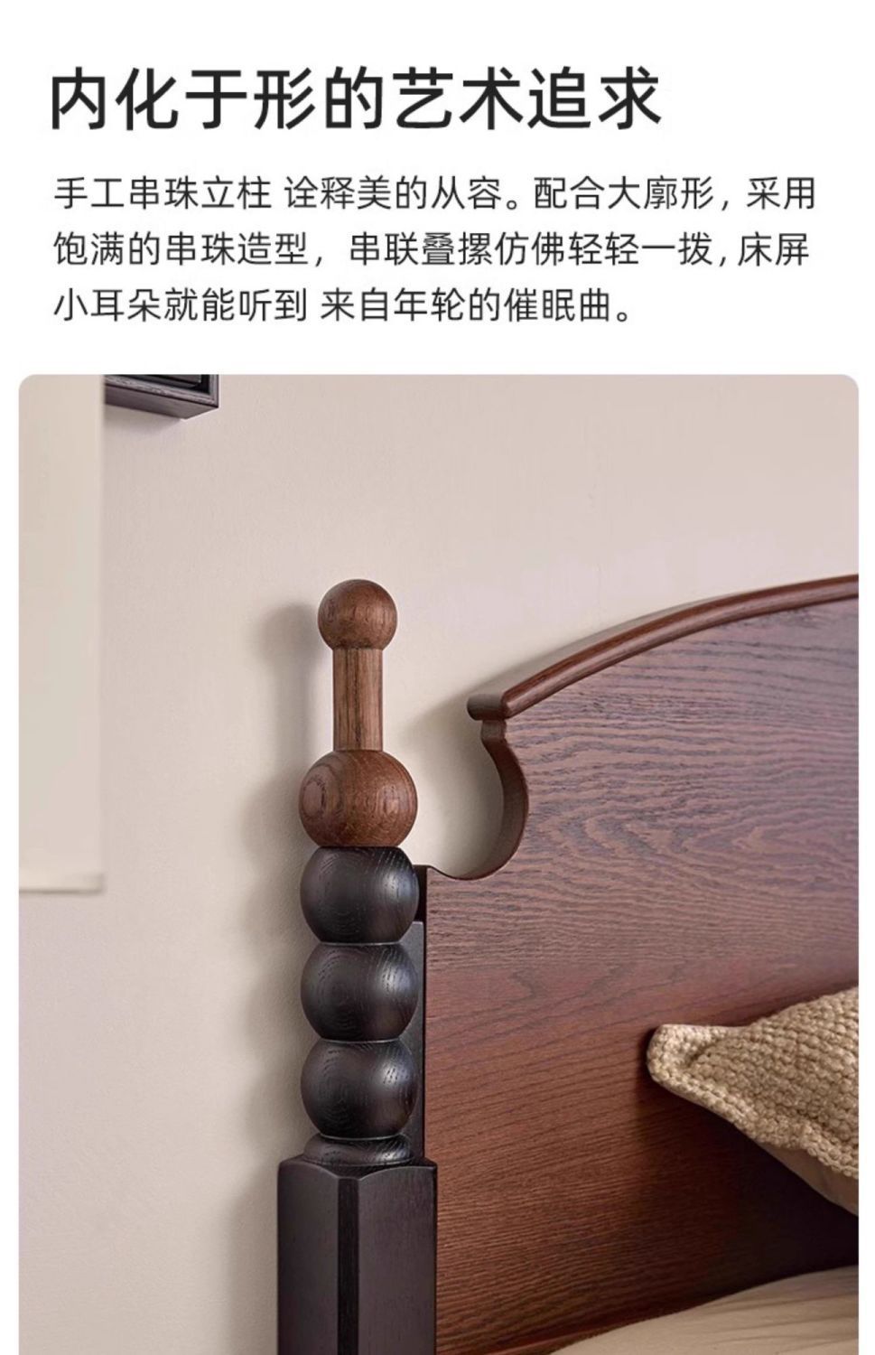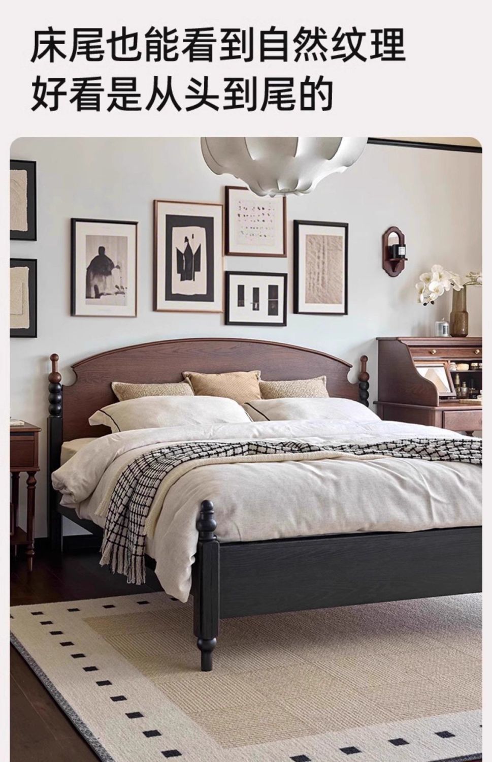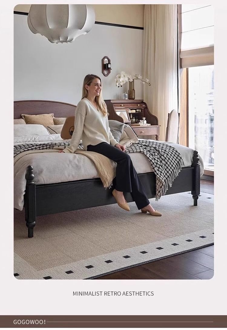 프렌치 레트로 스타일의 소형 원목 침대, 마스터 침실 더블 침대, 중세 스타일의 고급스럽고 분위기 있는 애쉬 우드 심플 웨딩 침대스토어 가기