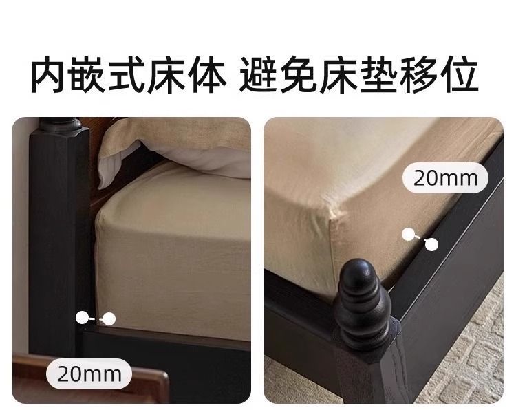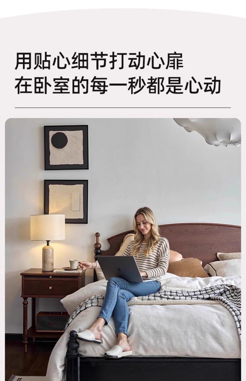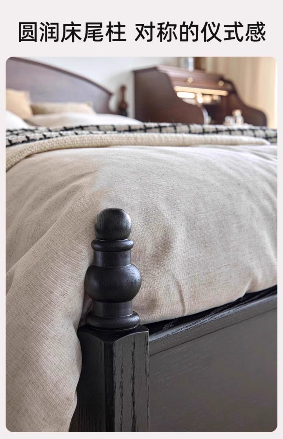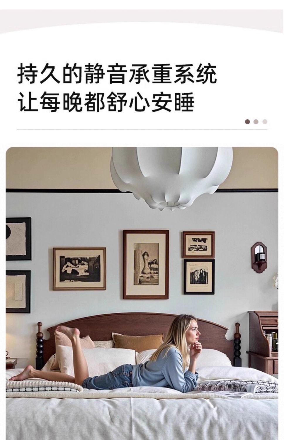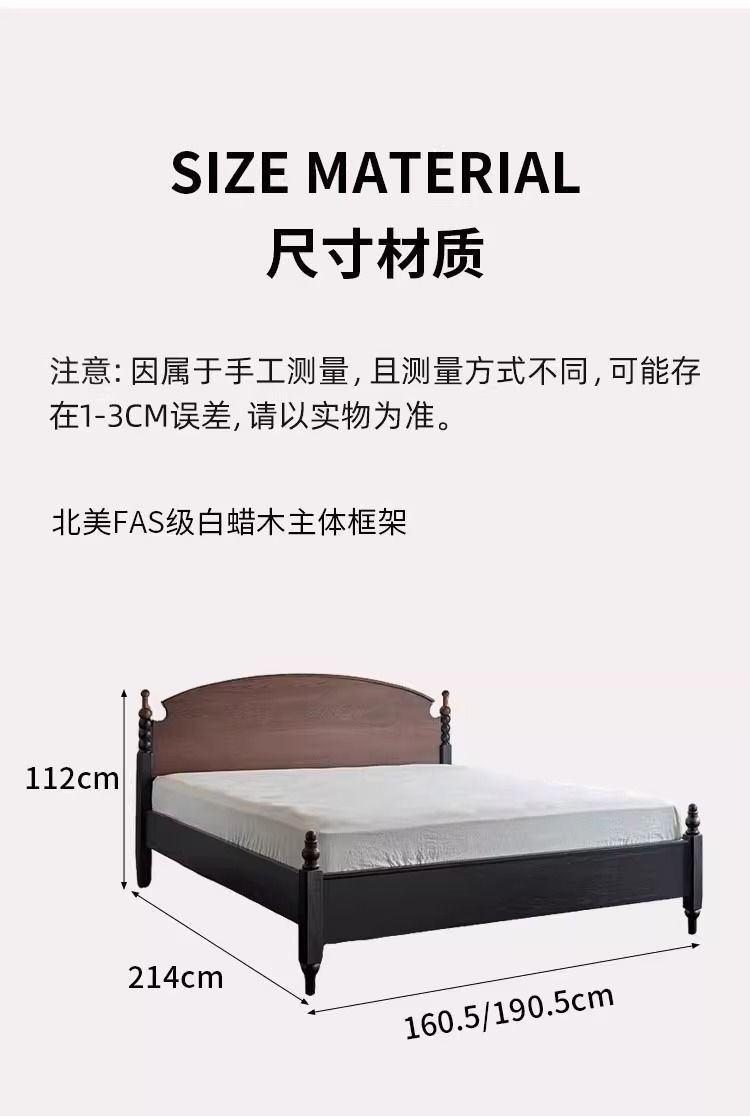 프렌치 레트로 스타일의 소형 원목 침대, 마스터 침실 더블 침대, 중세 스타일의 고급스럽고 분위기 있는 애쉬 우드 심플 웨딩 침대스토어 가기