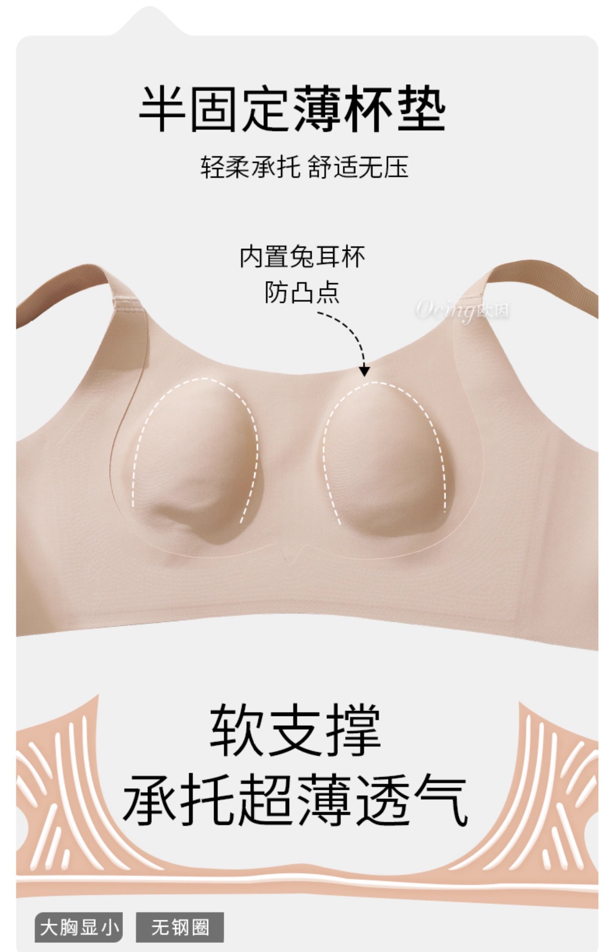 리퀴드 파운데이션, 보이지 않는 속옷, 얇고 큰 가슴, 처짐 방지, 토끼 귀 컵, 리프팅 및 조절, 편안하고 흔적이 없는 여성용 브라