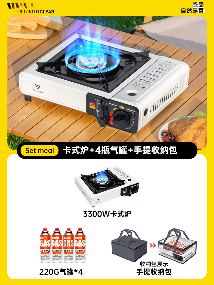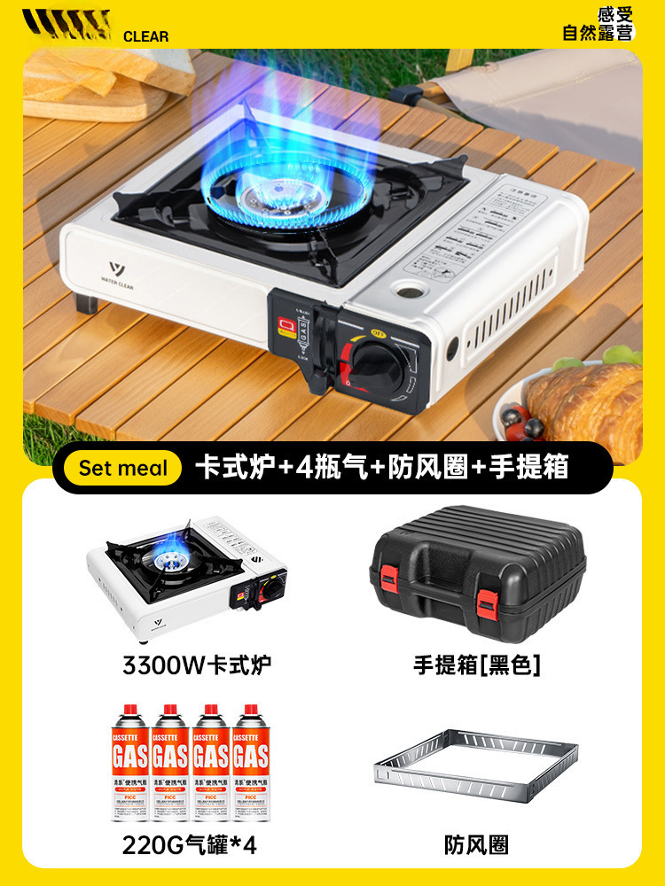 • [한 상자에 보관] 업그레이드된 흰색 스토브 + 가스 탱크 4개 + 방풍 링 + 전체 보관 상자