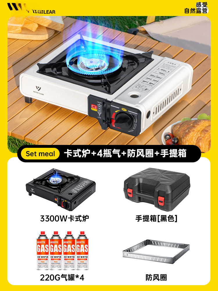 • [한 상자에 보관] 업그레이드된 검정색 스토브 + 가스 탱크 4개 + 방풍 링 + 전체 보관 상자