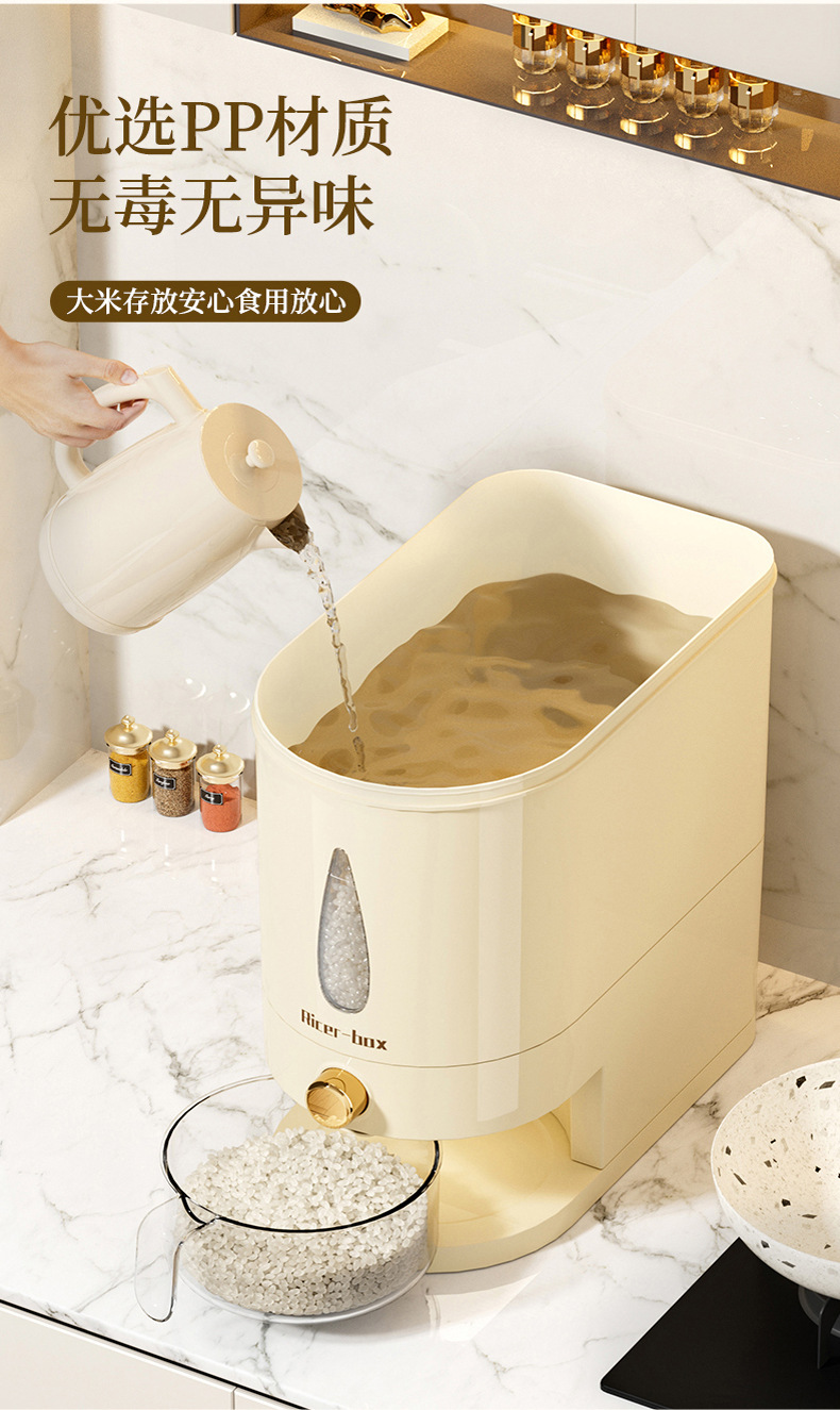 쌀통 가정용 새로운 스타일의 방습 식품 등급 밀봉 쌀통 쌀 저장 상자 쌀 다기능 프레스 쌀통스토어 가기