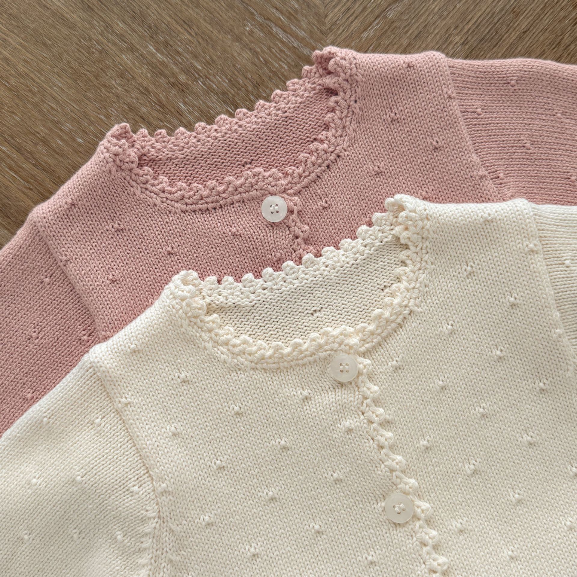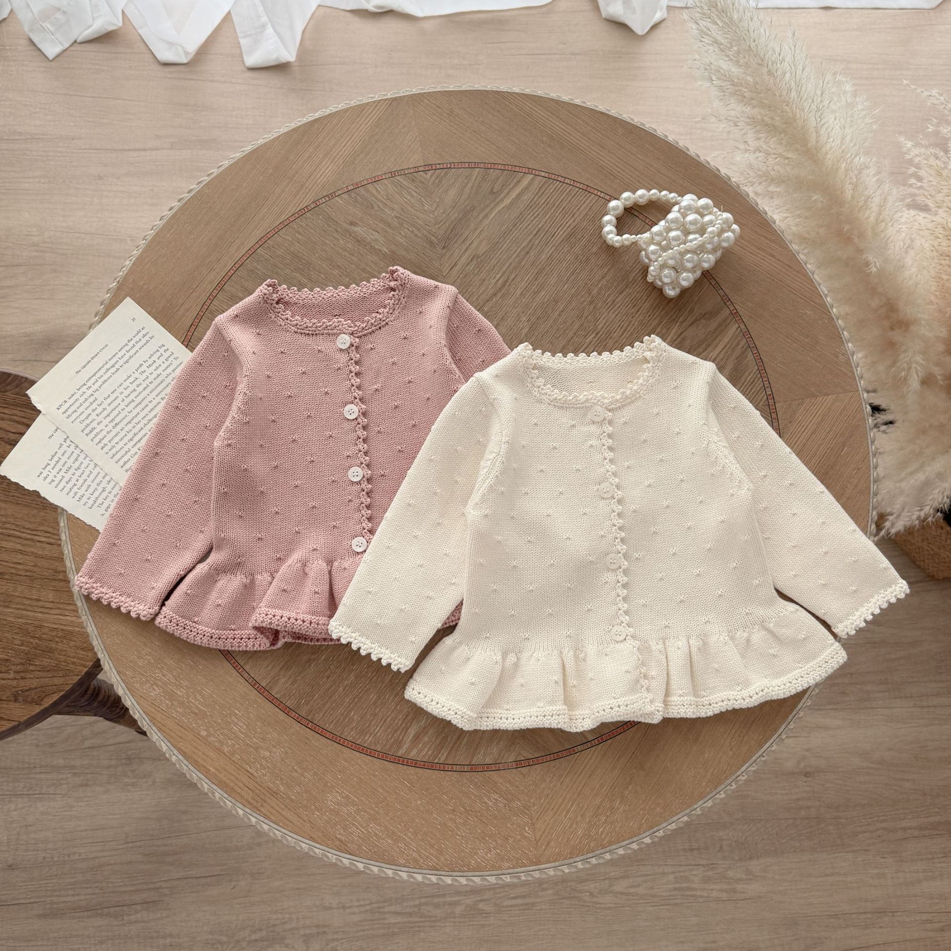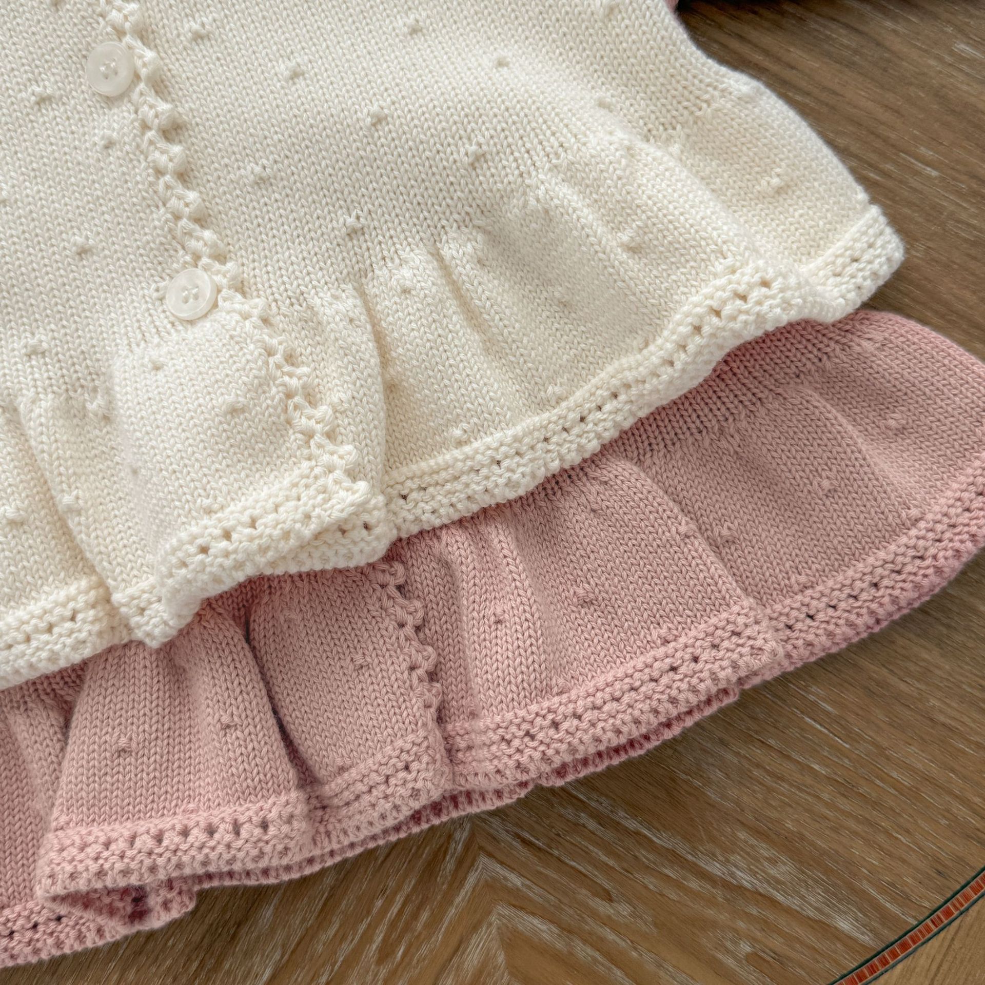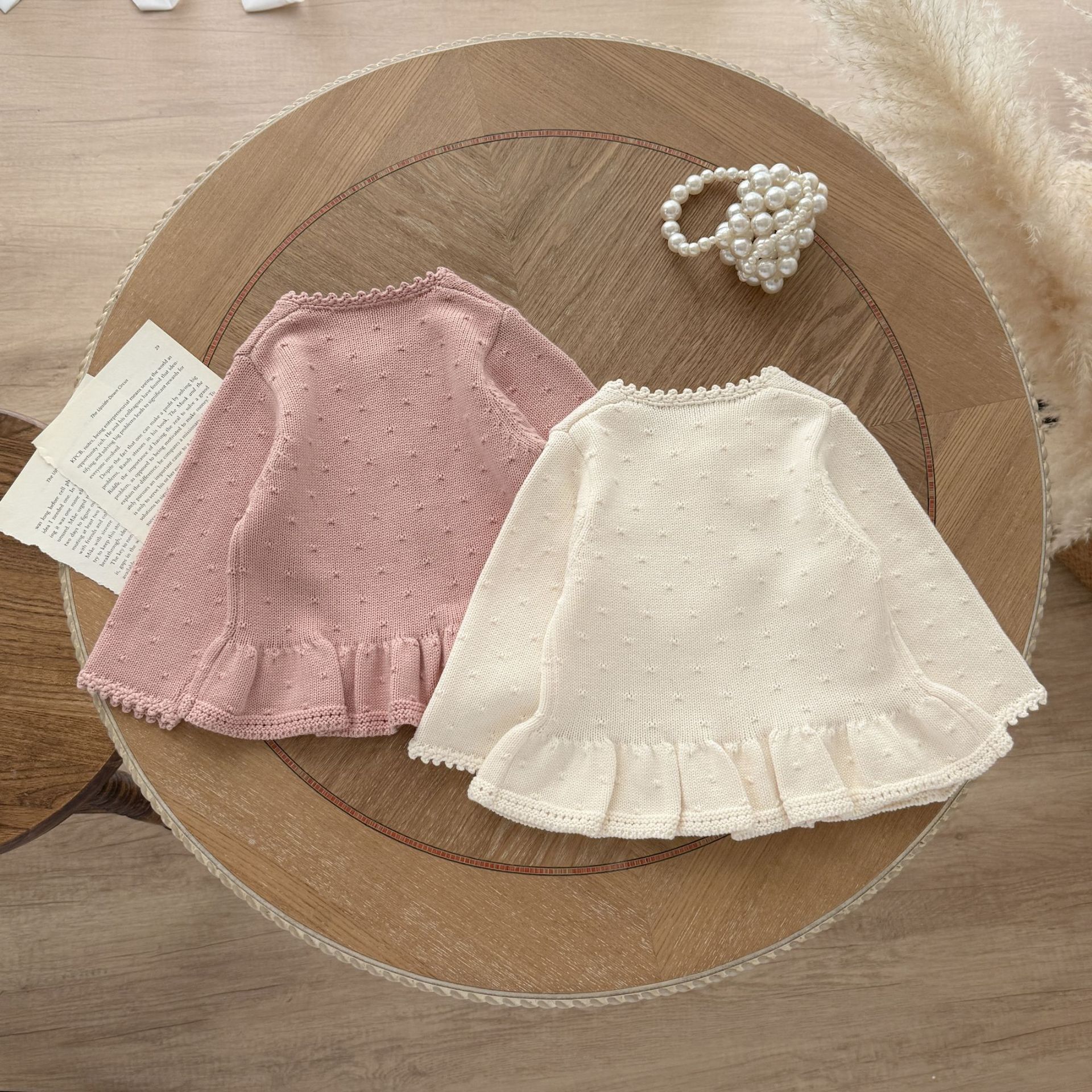 Ins2025 봄과 가을 아기 소녀 수제 크로 셰 뜨개질 칼라 입체 작은 패턴 카디건 스커트 귀여운 니트 자켓스토어 가기