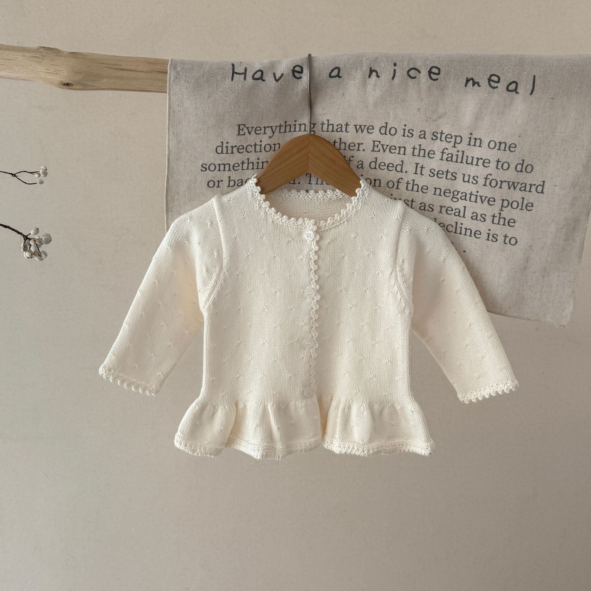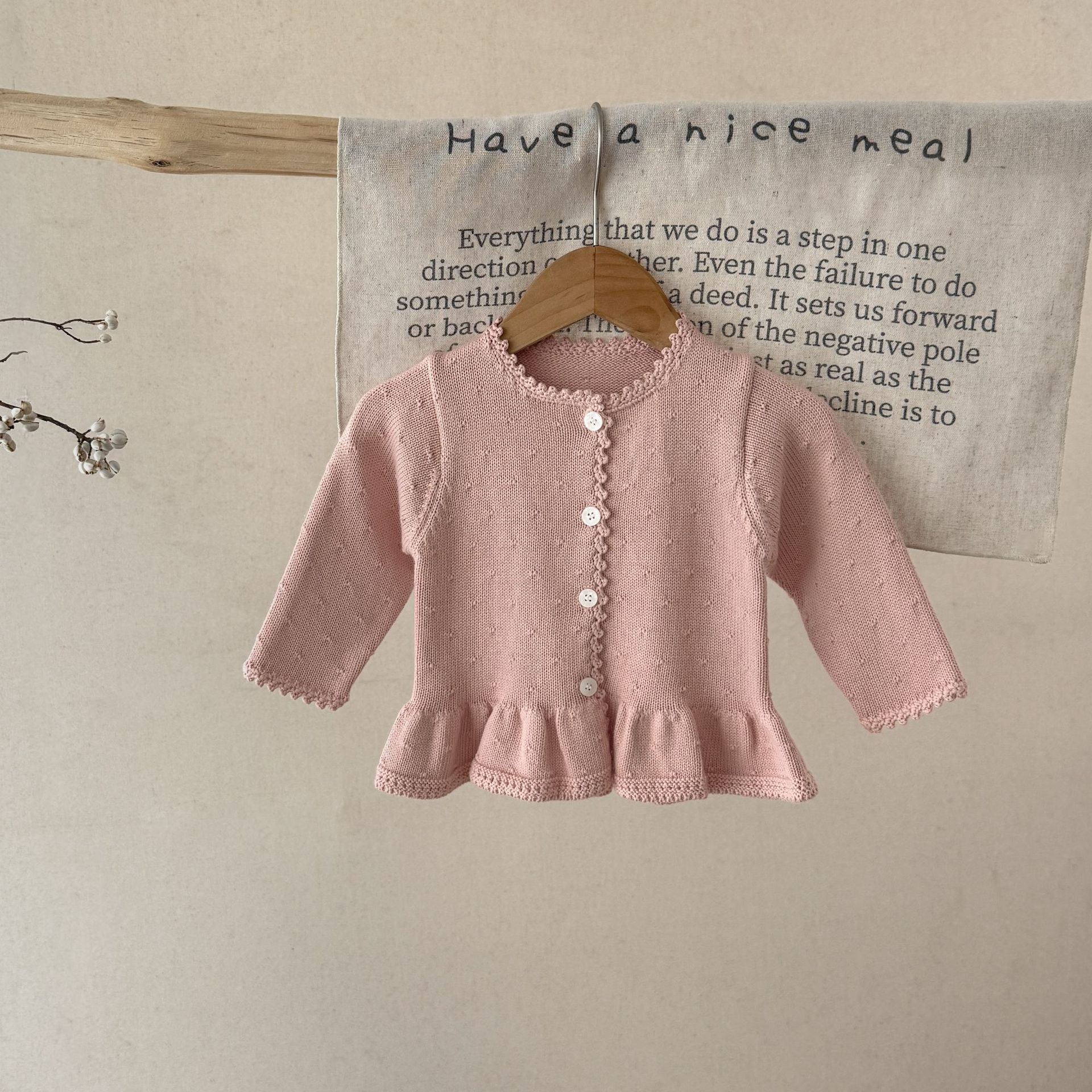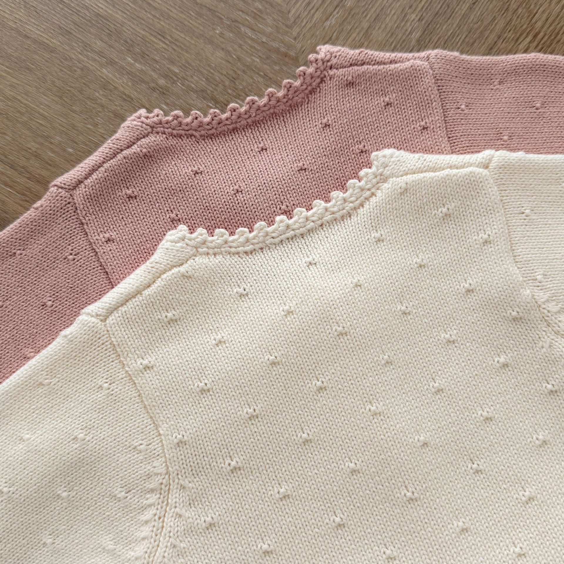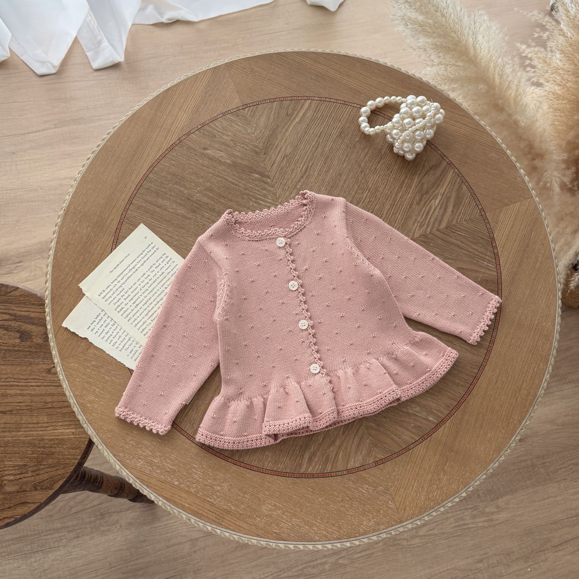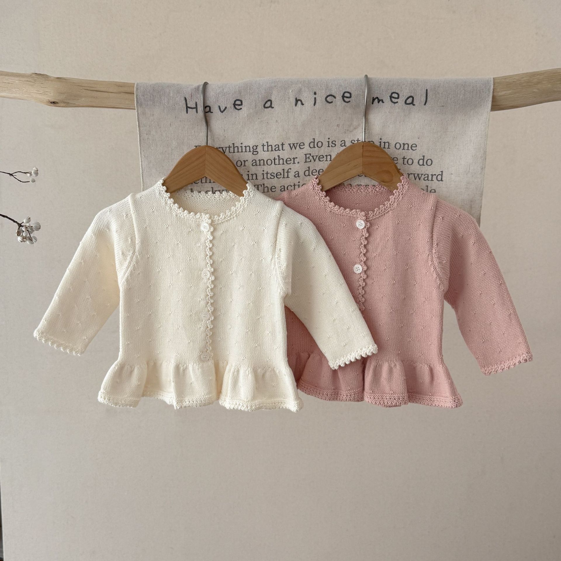 Ins2025 봄과 가을 아기 소녀 수제 크로 셰 뜨개질 칼라 입체 작은 패턴 카디건 스커트 귀여운 니트 자켓스토어 가기