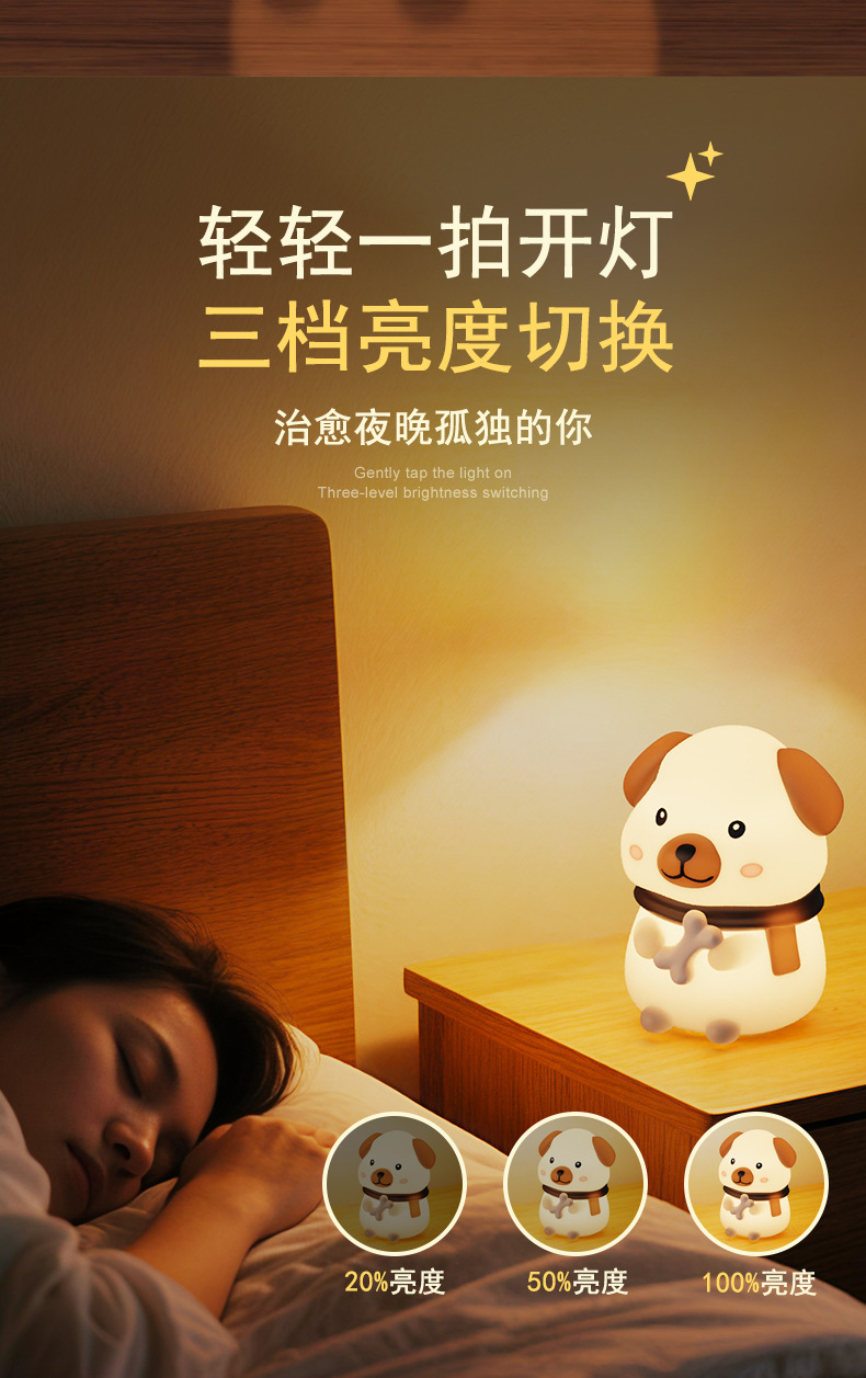인터넷 인기 강아지 무드등 충전식 센서 침대 옆 분위기등 침실 수면등 다채로운 조명
