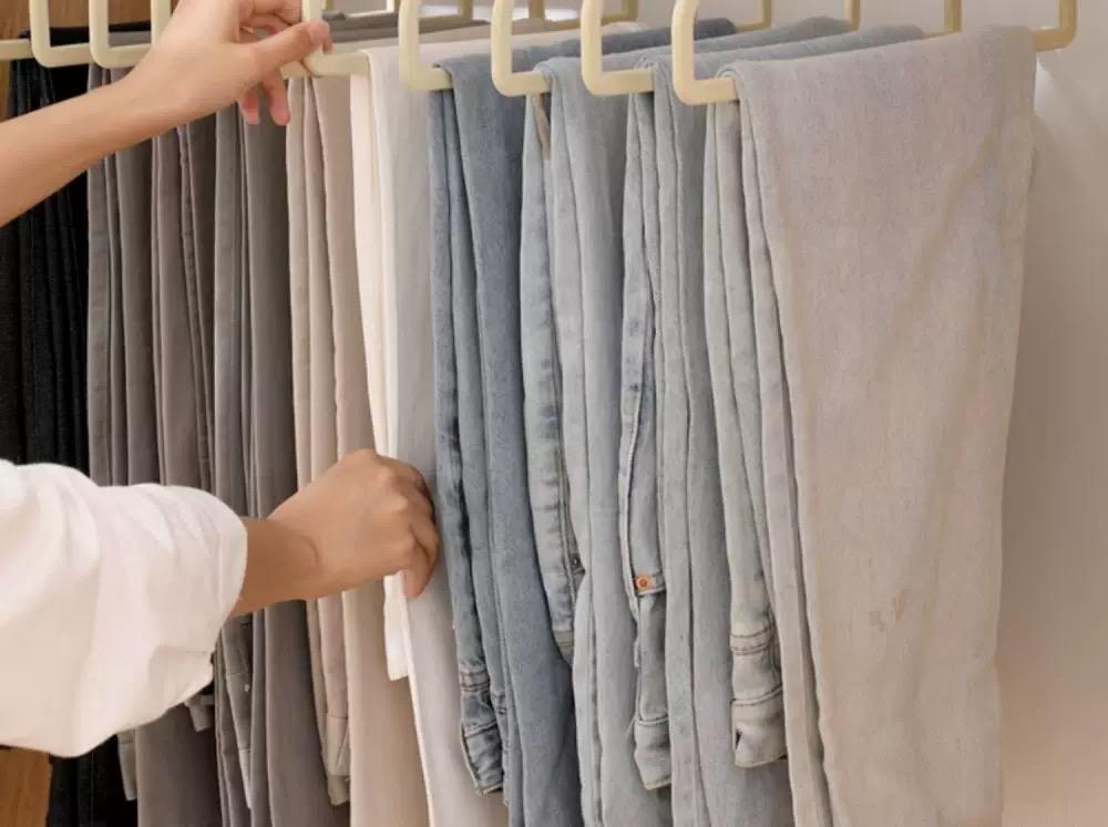 가정용 미끄럼 방지 및 흔적 없는 캐비닛 특수 바지 걸이 정리함은 미끄럼 방지 플록 옷 건조기 침실용 두꺼운 바지 걸이를 추천합니다.