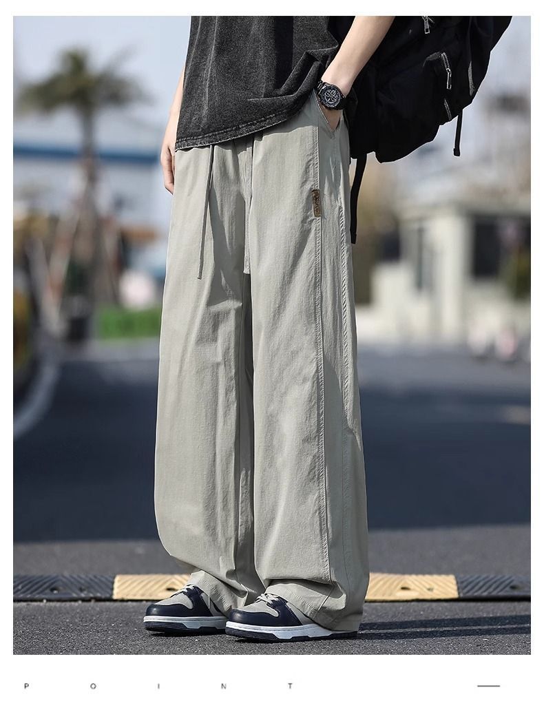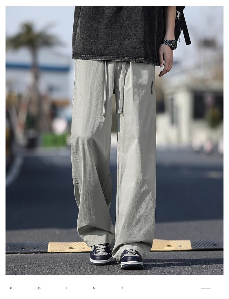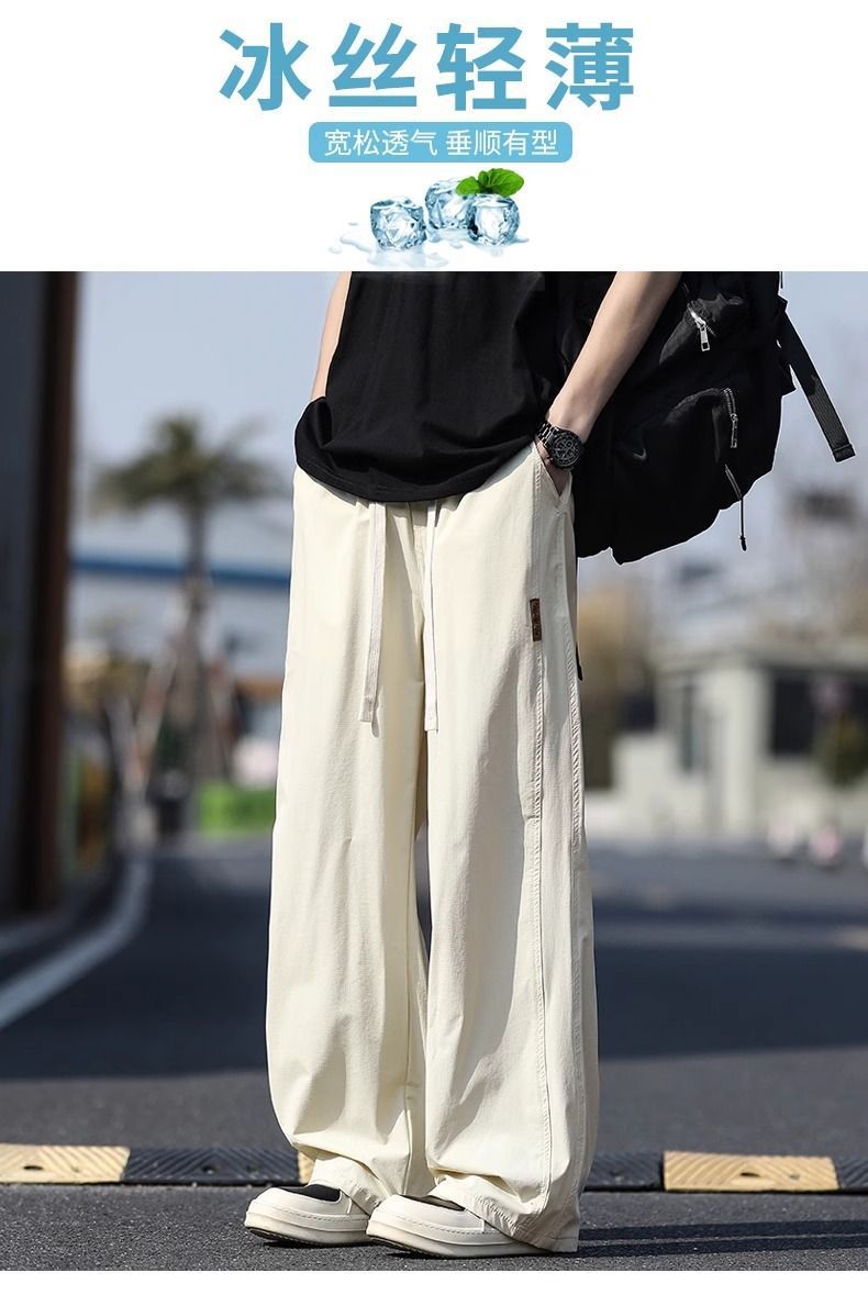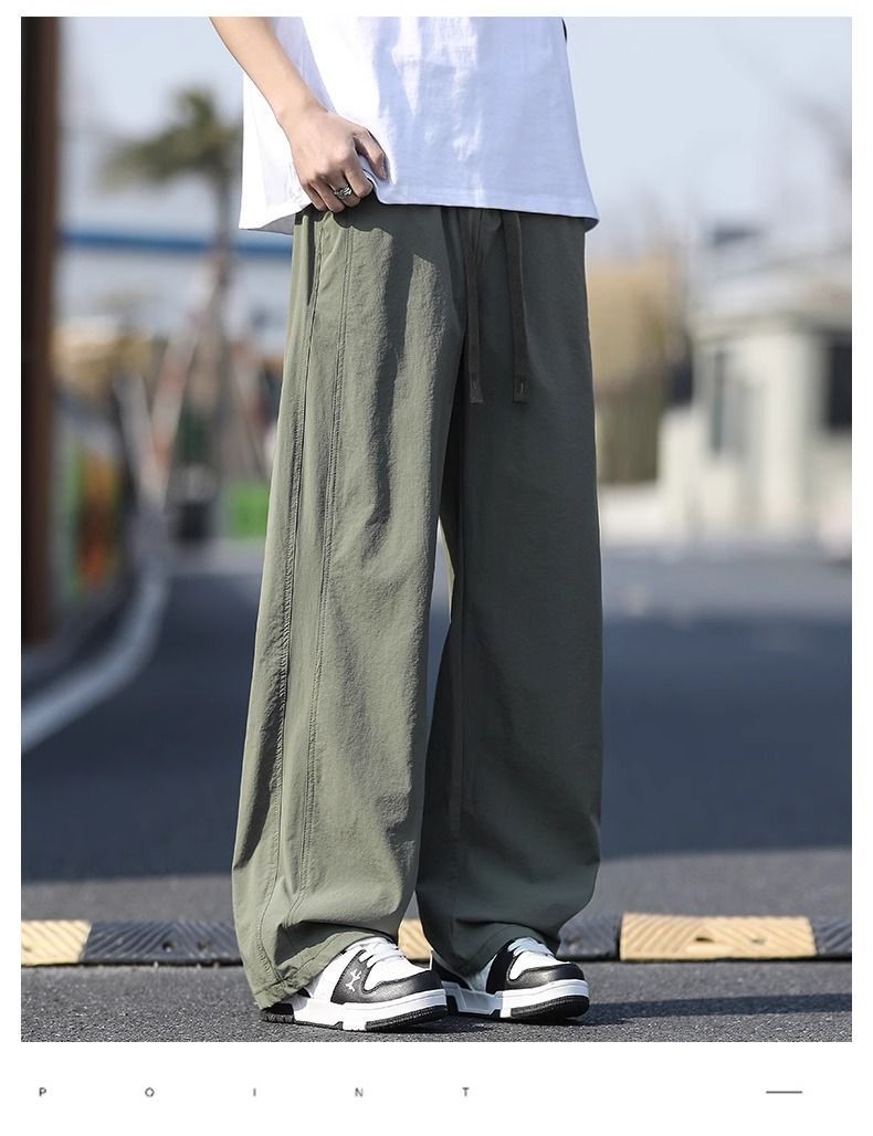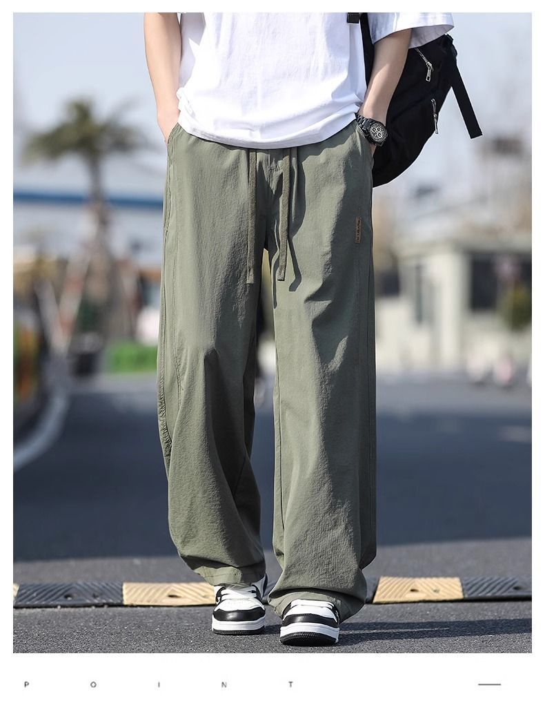 새로운 캐주얼 바지 캐주얼 바지 여름 얇은 유행 느슨한 속건 스포츠 스트레이트 바지 남성용 얼음 실크