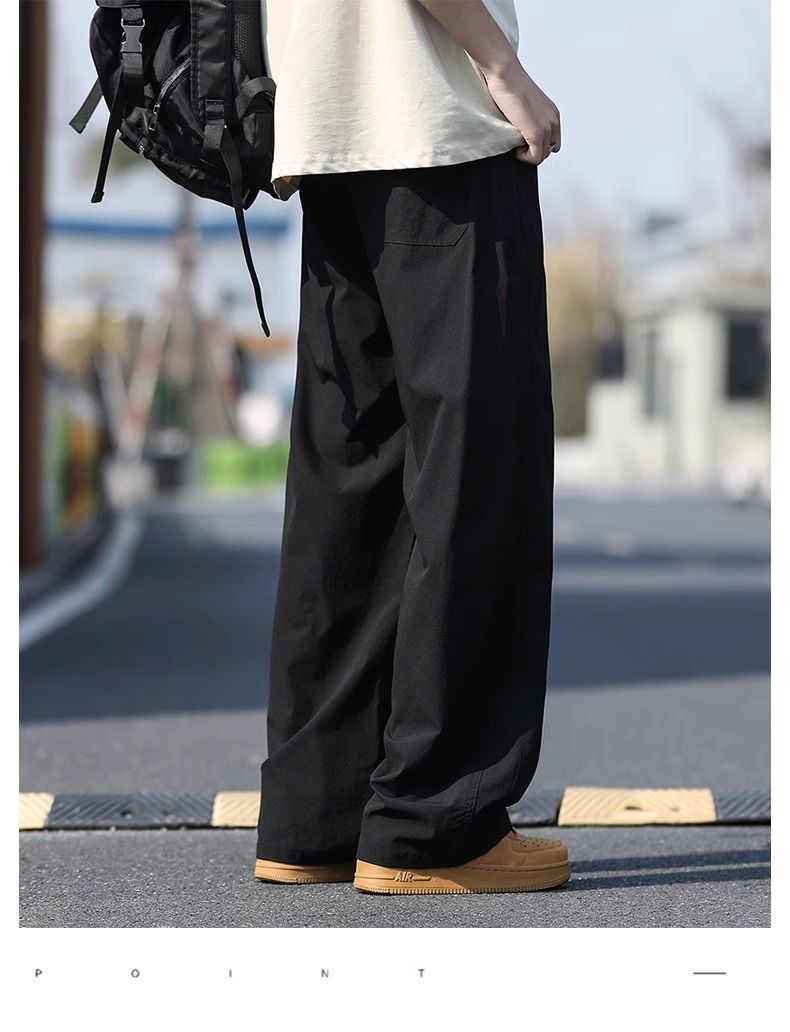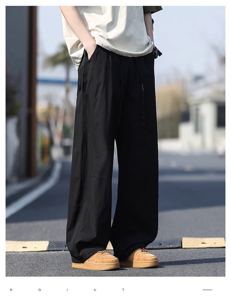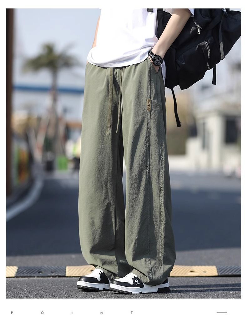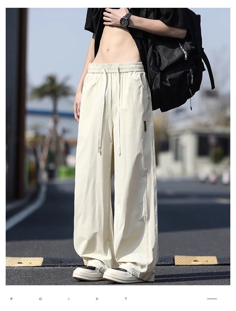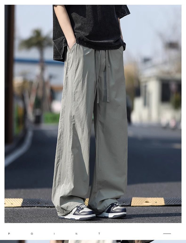 새로운 캐주얼 바지 캐주얼 바지 여름 얇은 유행 느슨한 속건 스포츠 스트레이트 바지 남성용 얼음 실크