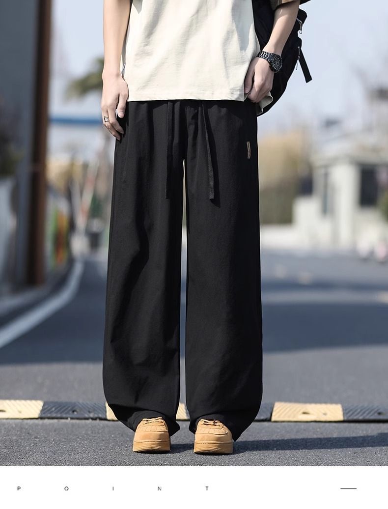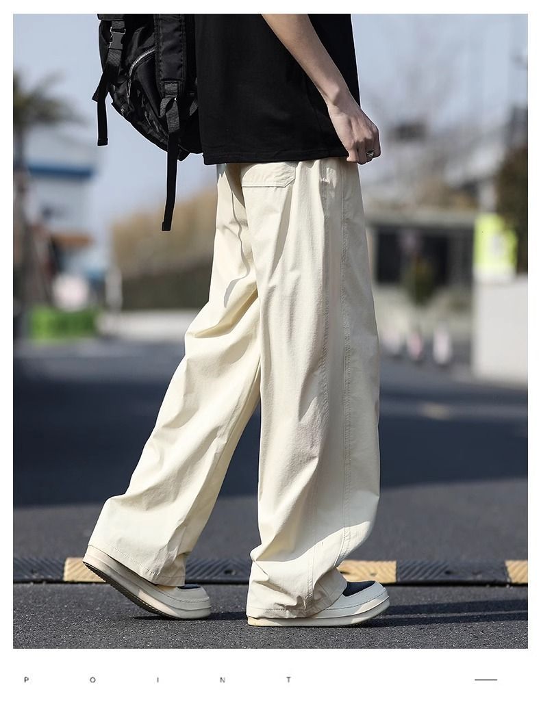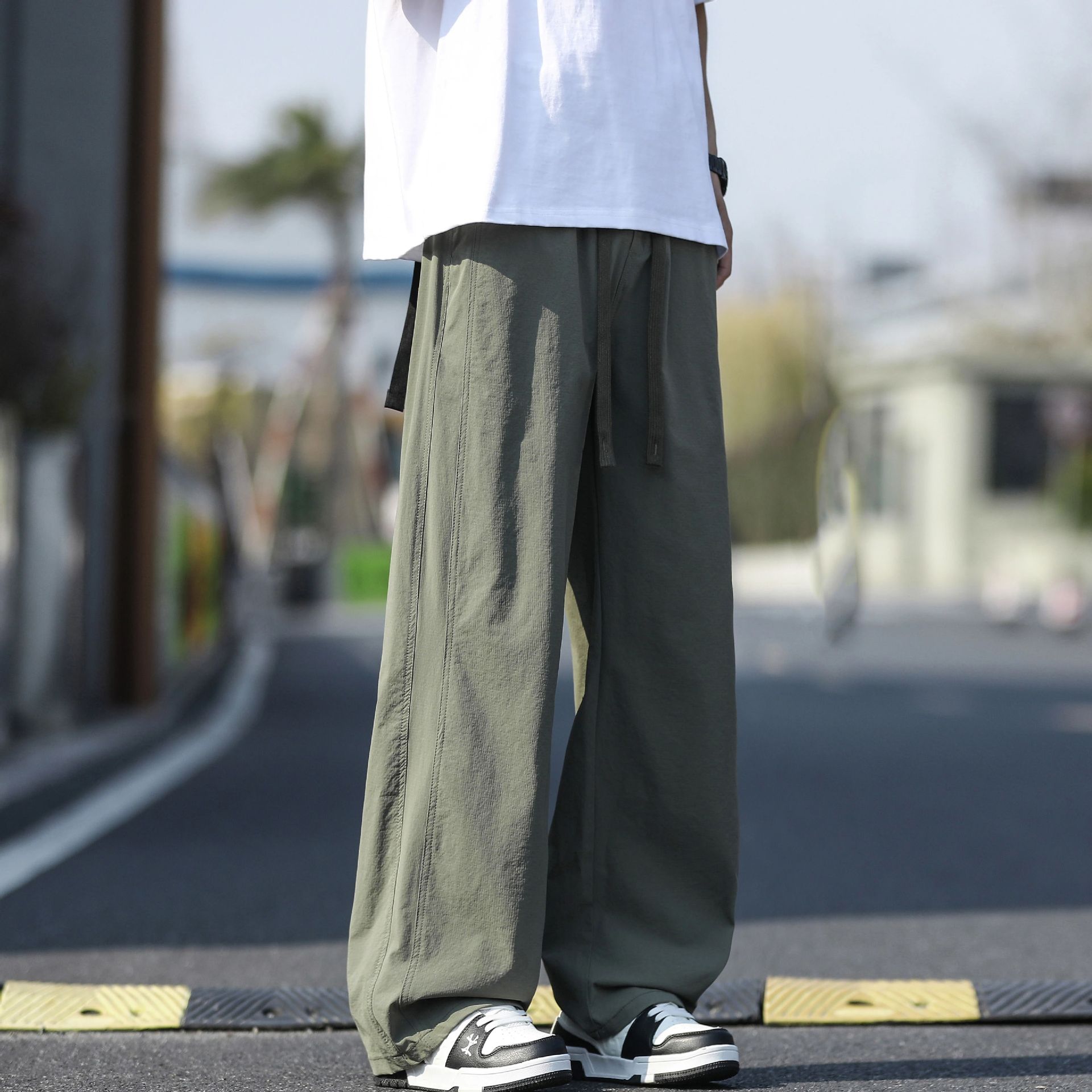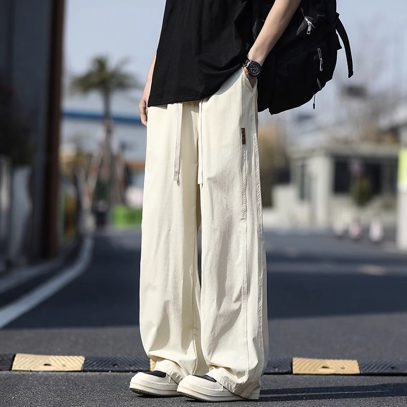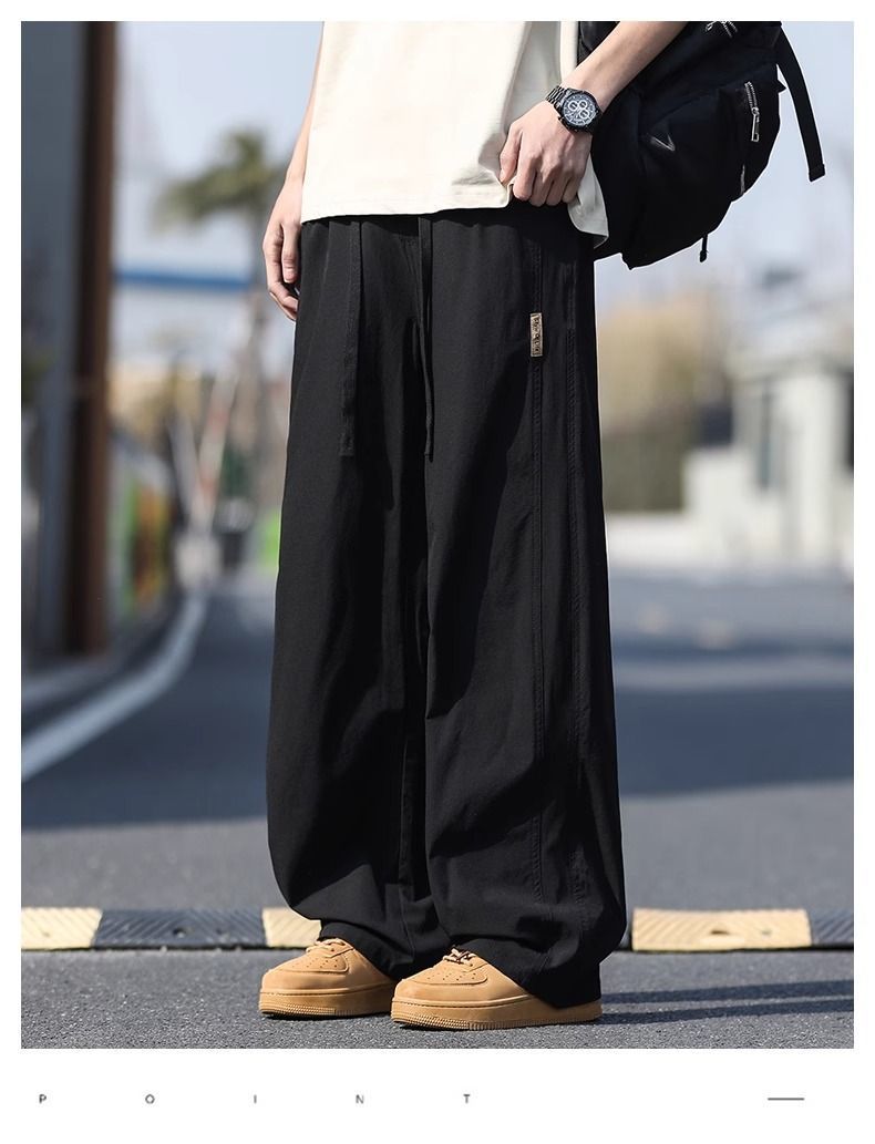 새로운 캐주얼 바지 캐주얼 바지 여름 얇은 유행 느슨한 속건 스포츠 스트레이트 바지 남성용 얼음 실크