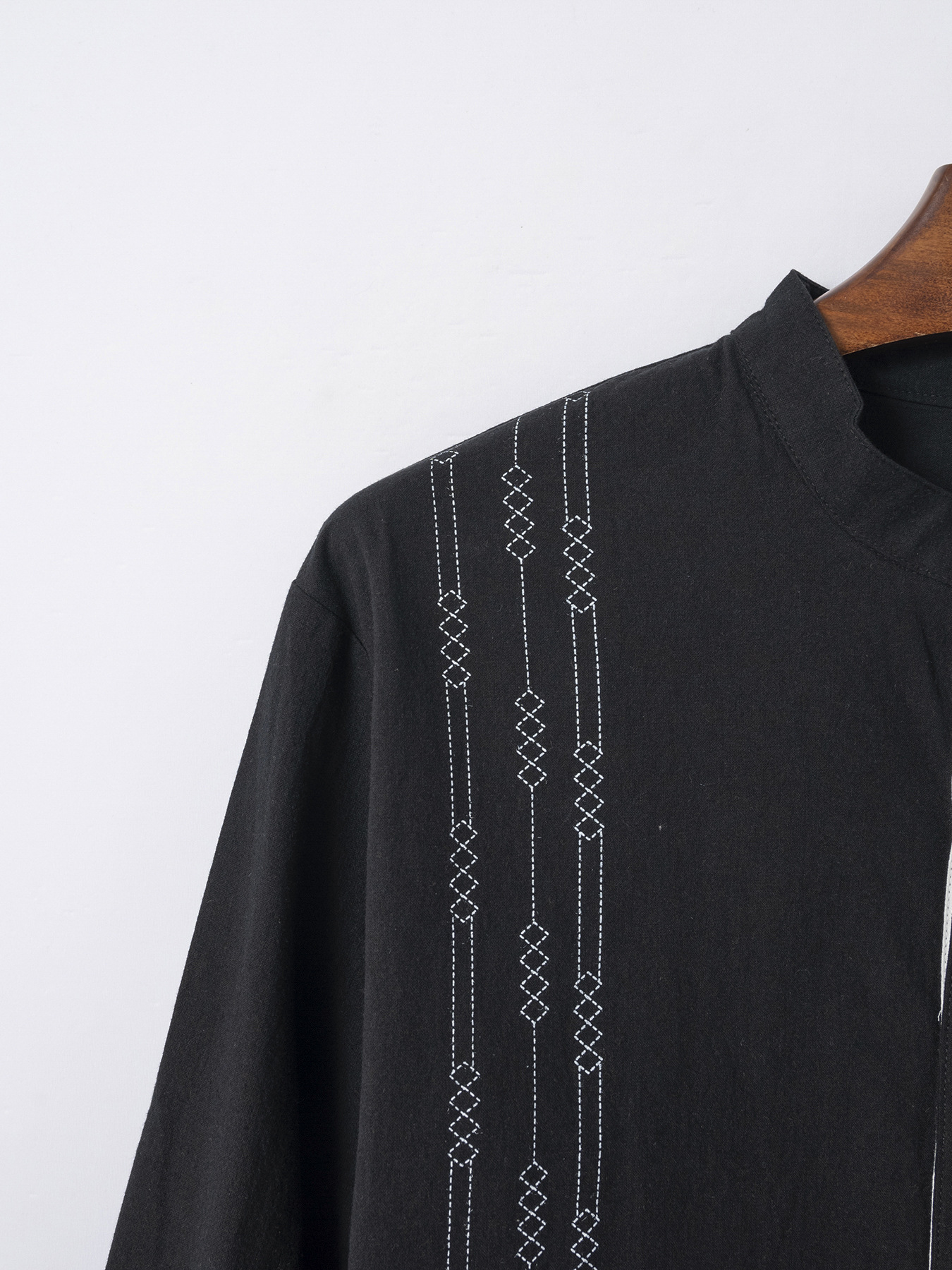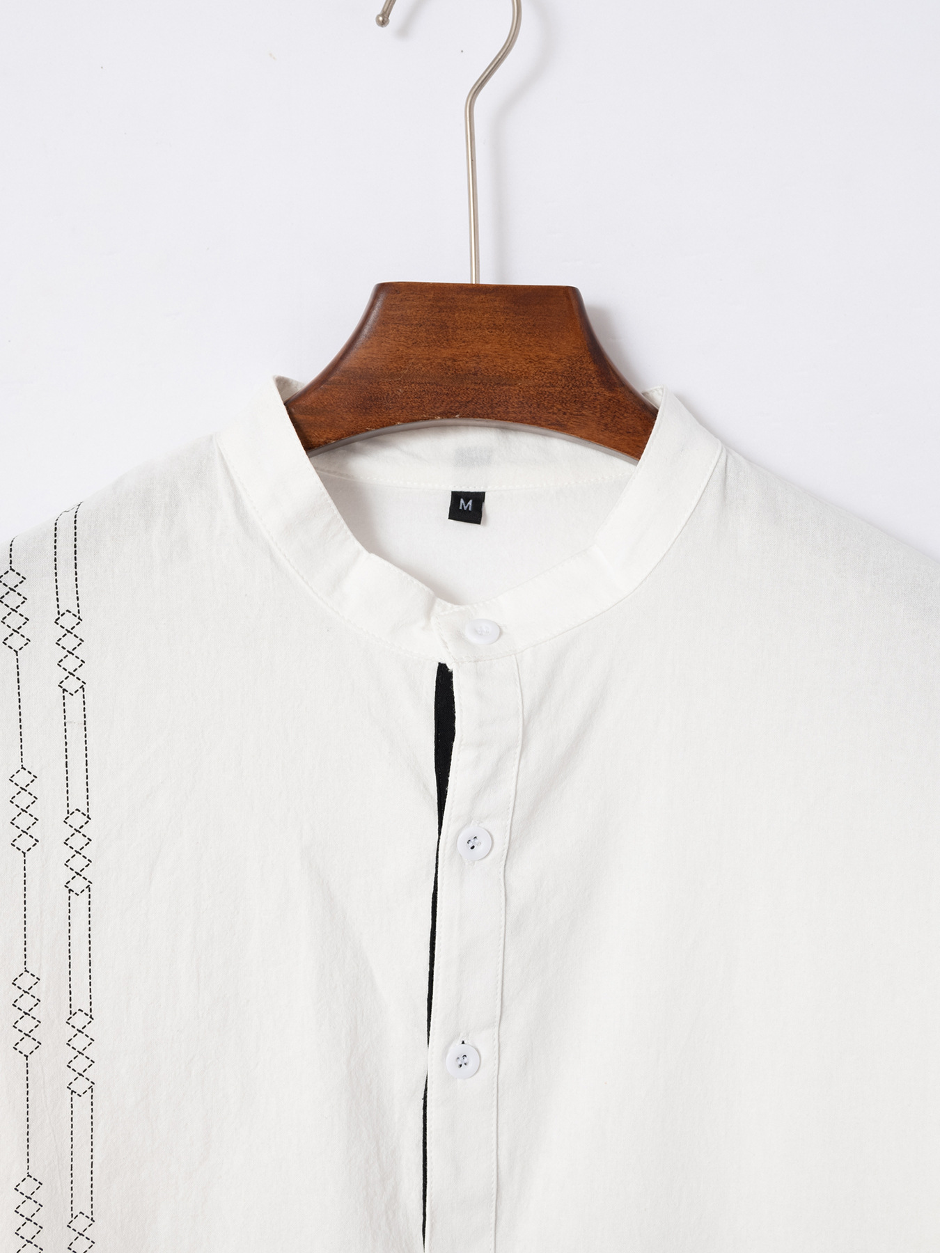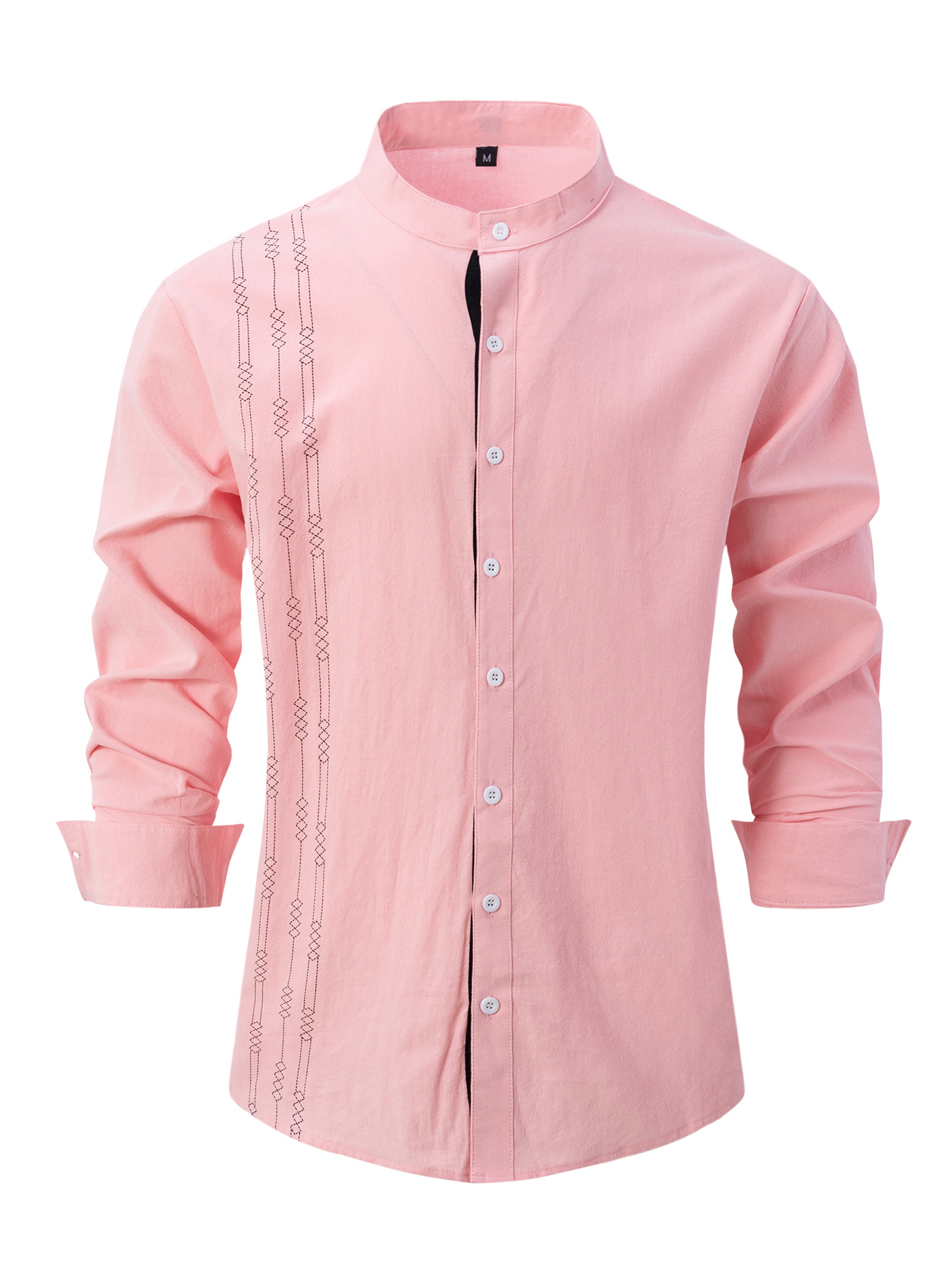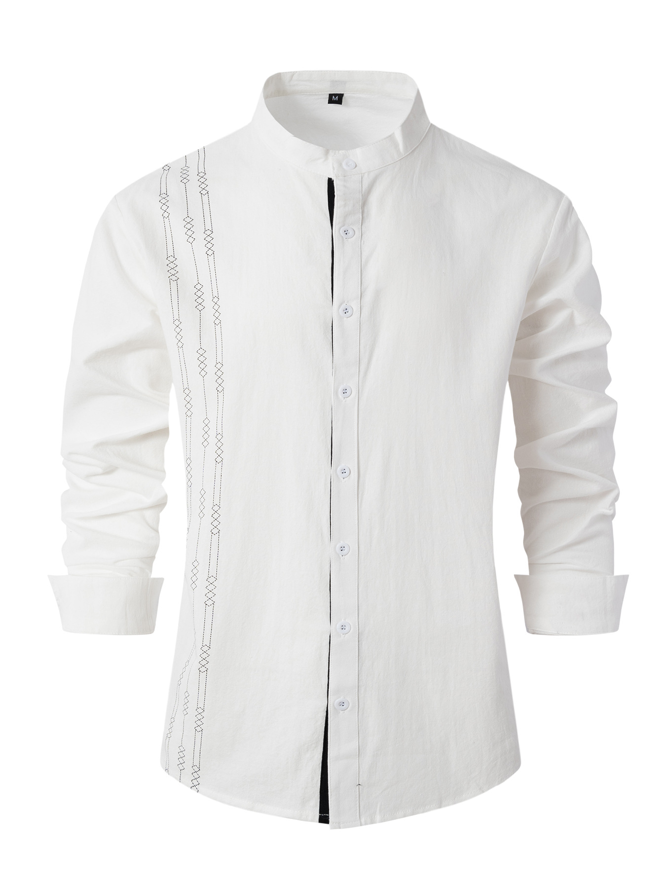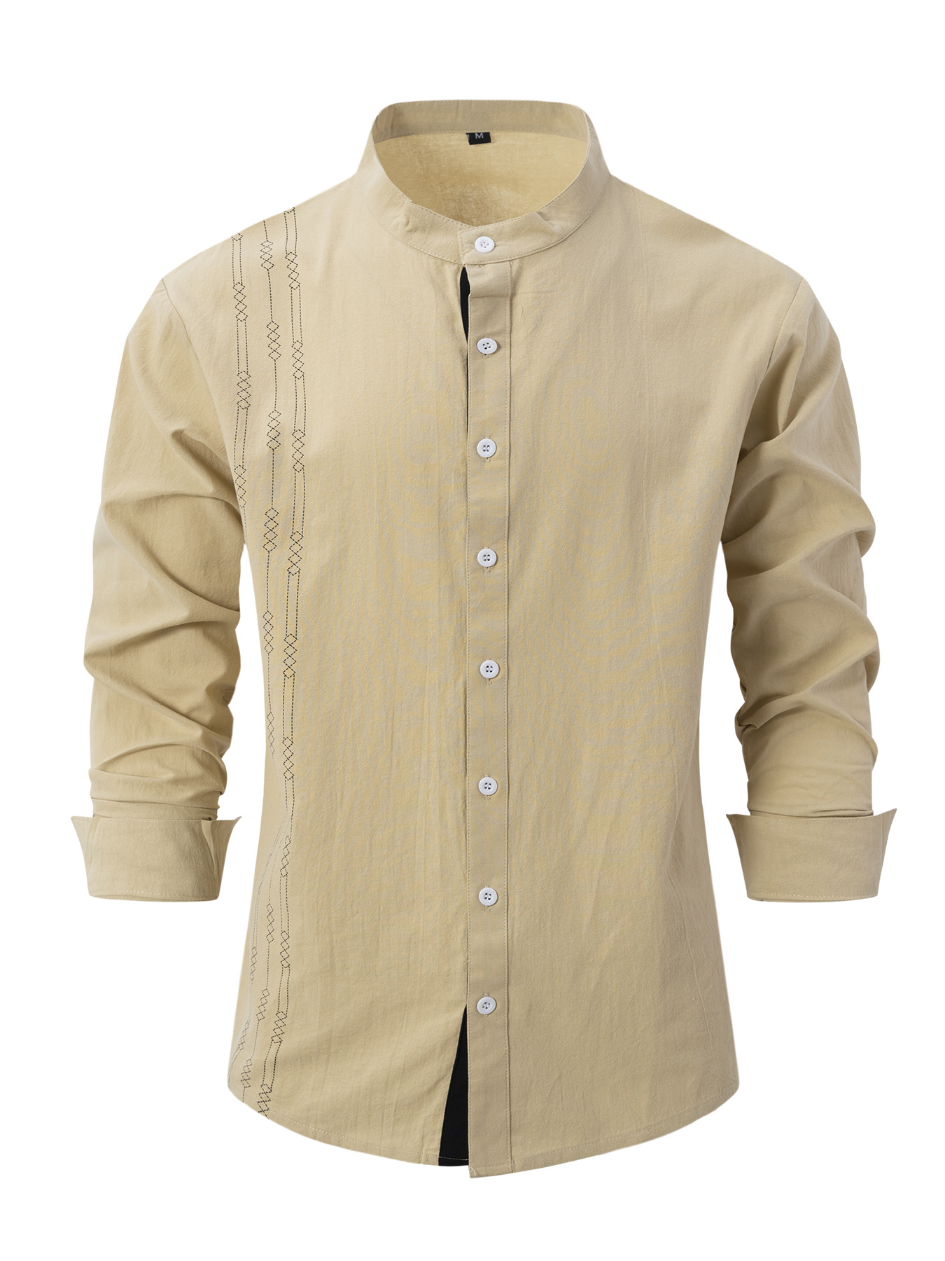 크로스보더 남성용 긴팔 면 및 린넨 3D 프린트 남성 캐주얼 긴팔 스탠드 칼라 루즈하고 다재다능한 트렌디 셔츠스토어 가기