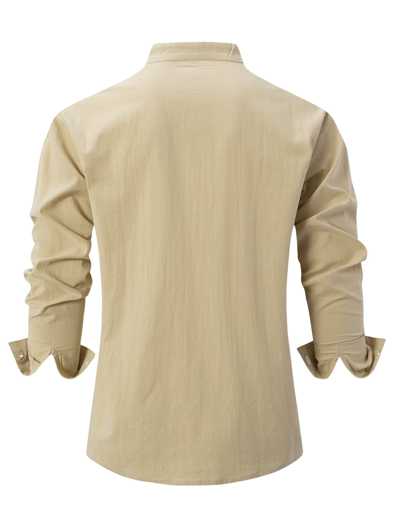 크로스보더 남성용 긴팔 면 및 린넨 3D 프린트 남성 캐주얼 긴팔 스탠드 칼라 루즈하고 다재다능한 트렌디 셔츠