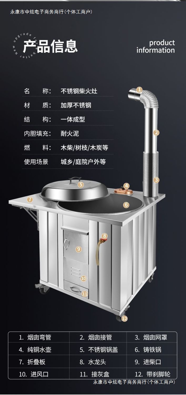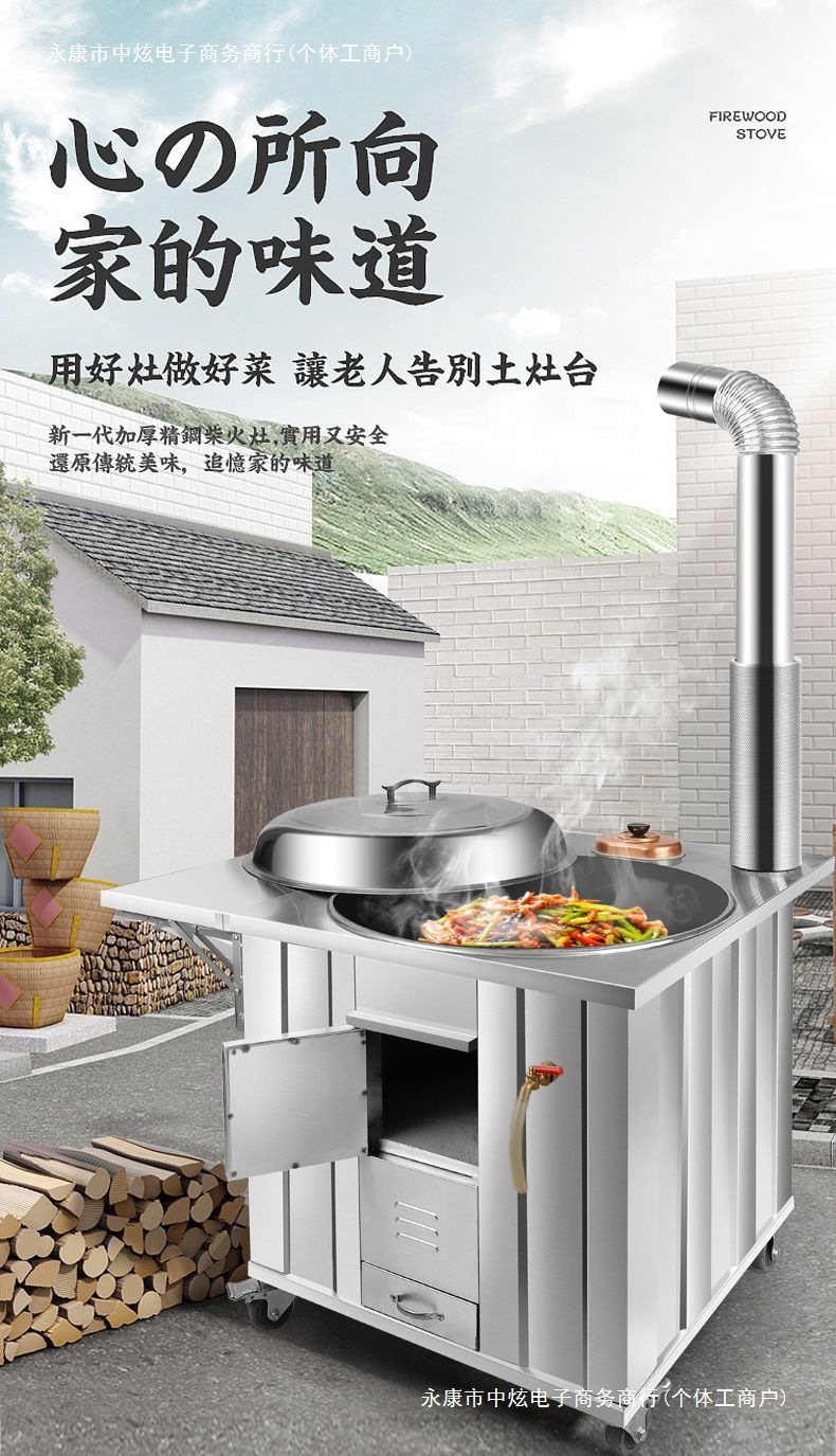스테인레스 스틸 스토브 두꺼운 농촌 장작 스토브 가정용 장작 태우기 이동식 실내 무연 스토브스토어 가기