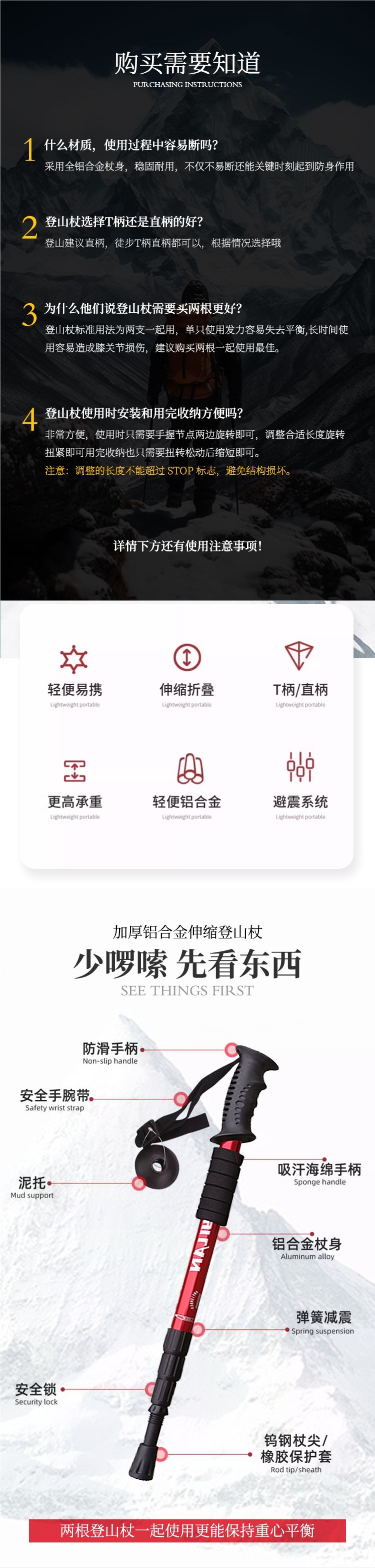 • [업그레이드된 4섹션 T 핸들] 실버 충격 흡수 시스템 내장