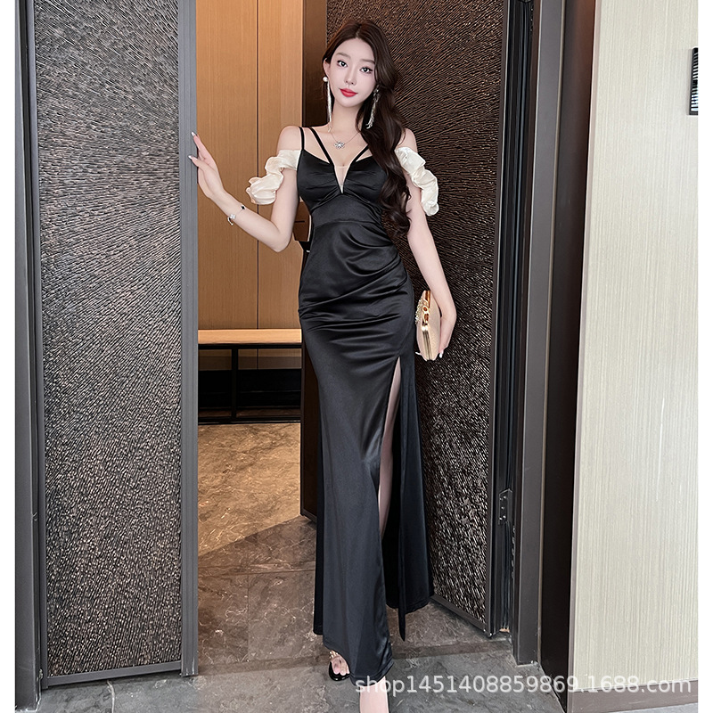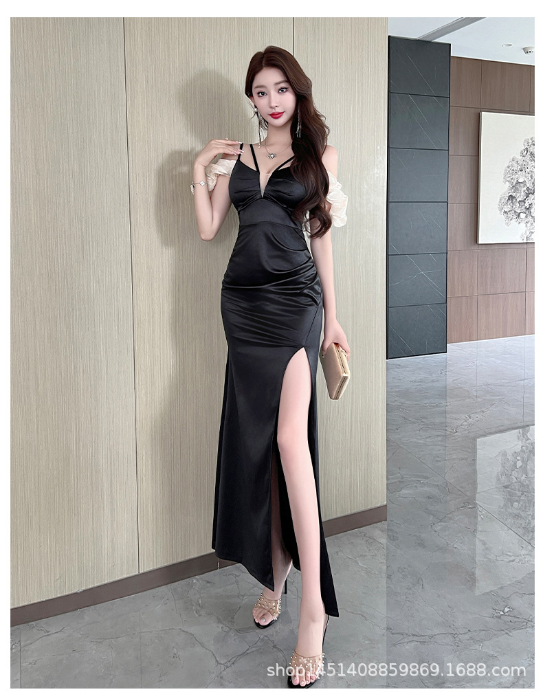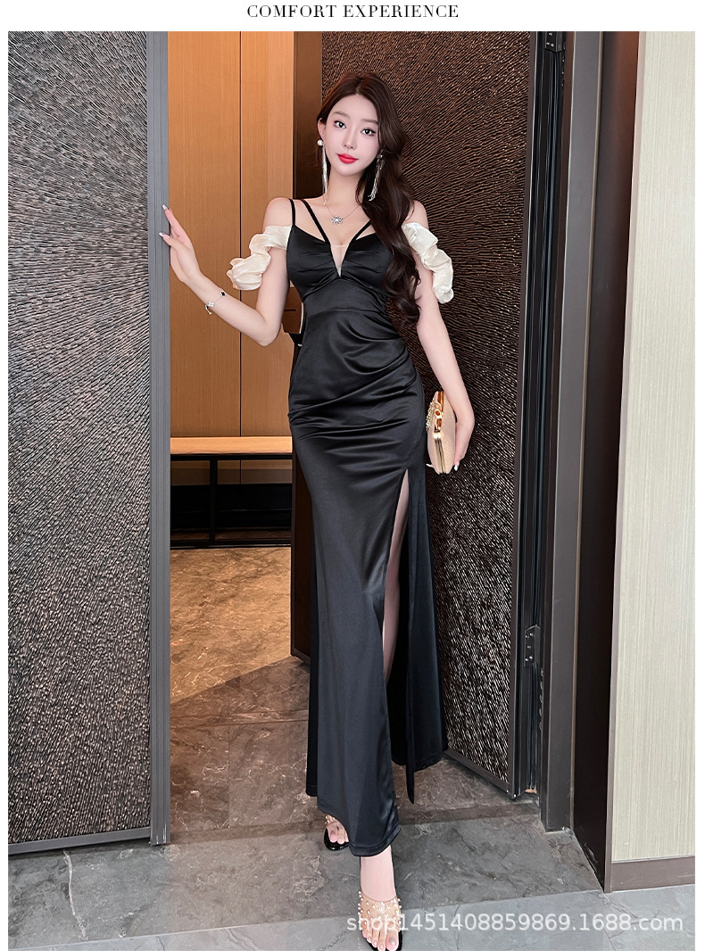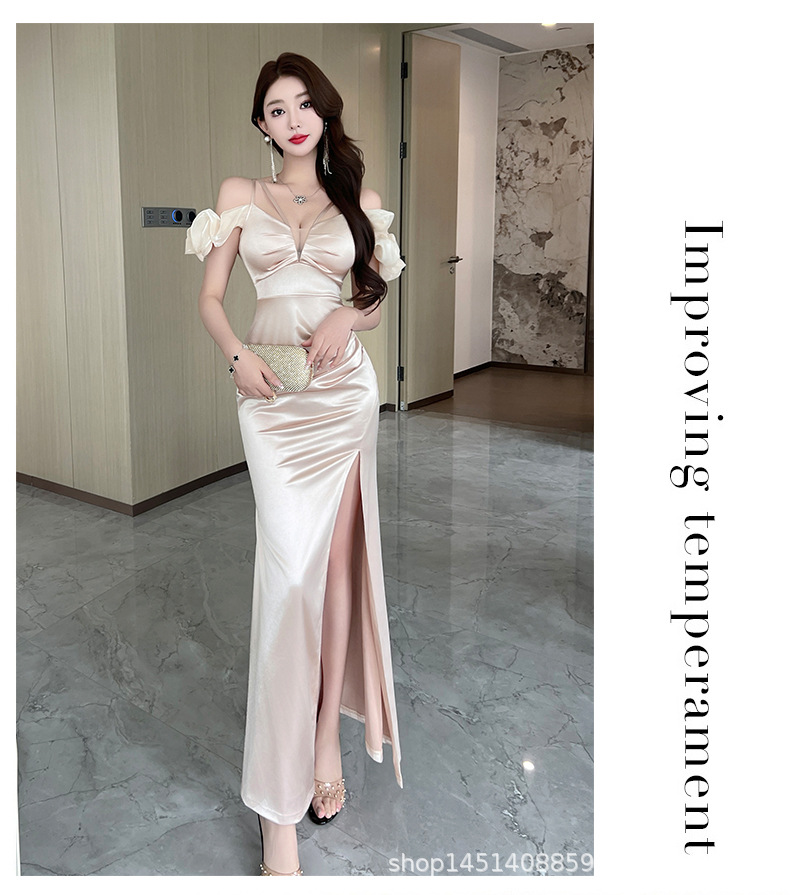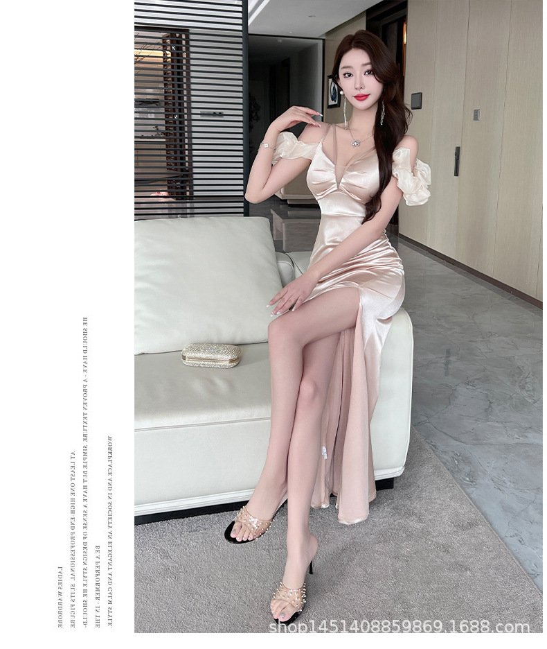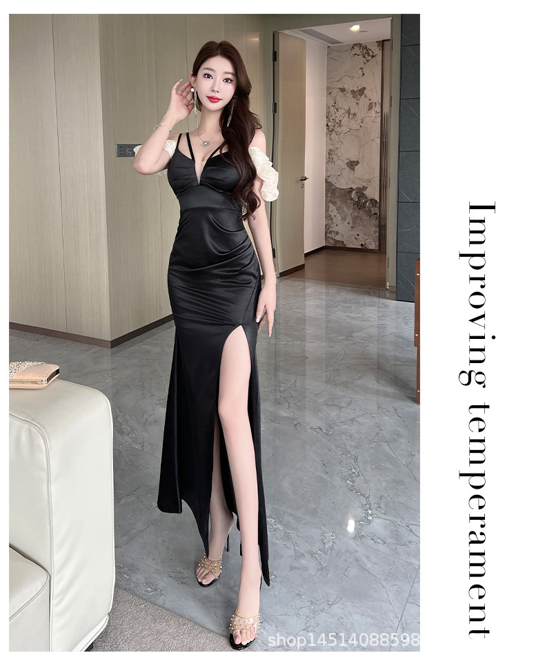 섹시한 순수한 욕망 나이트 클럽 여성 나이트 클럽 작업복 슬리밍 허리 롱 스커트 드레스 새로운 슬릿 드레스