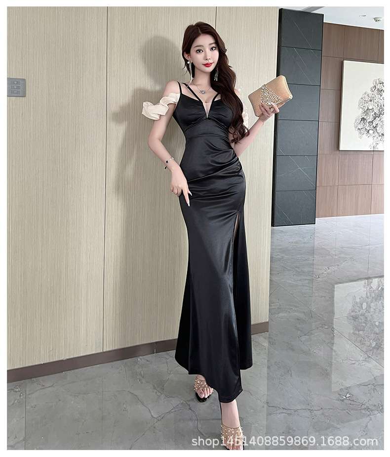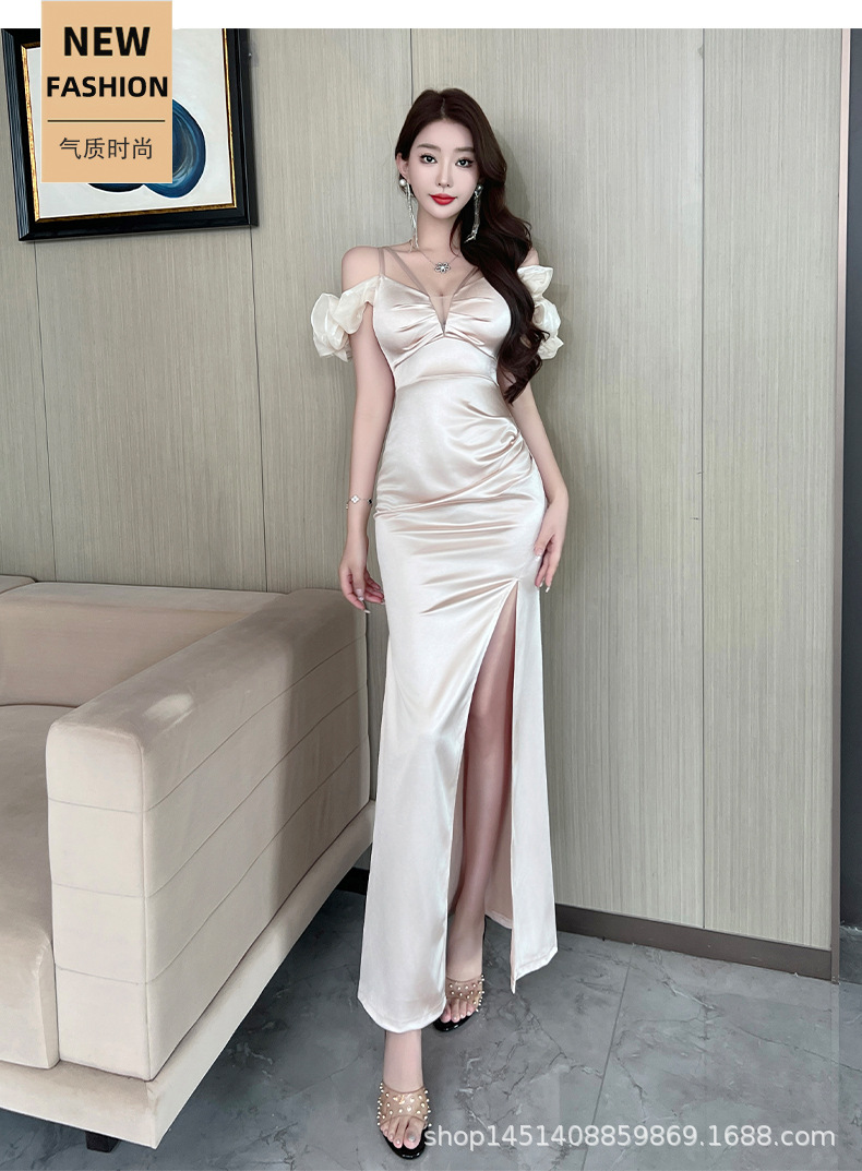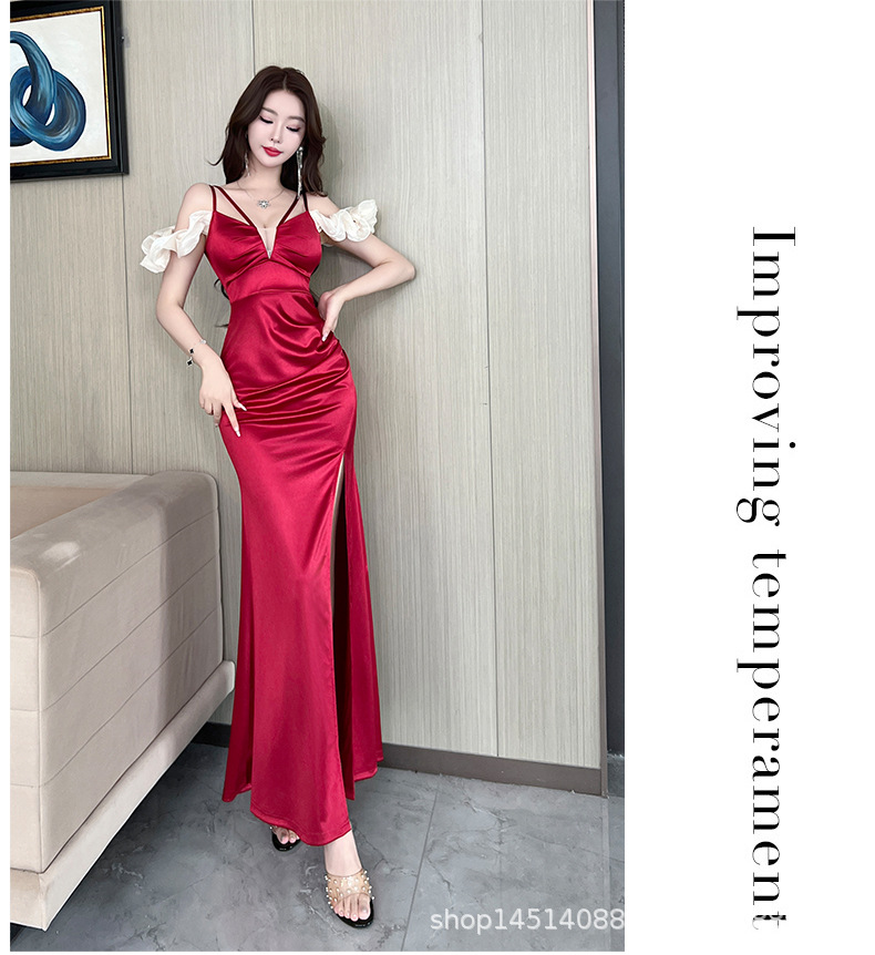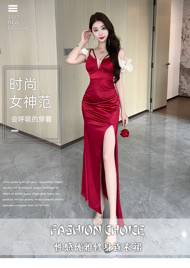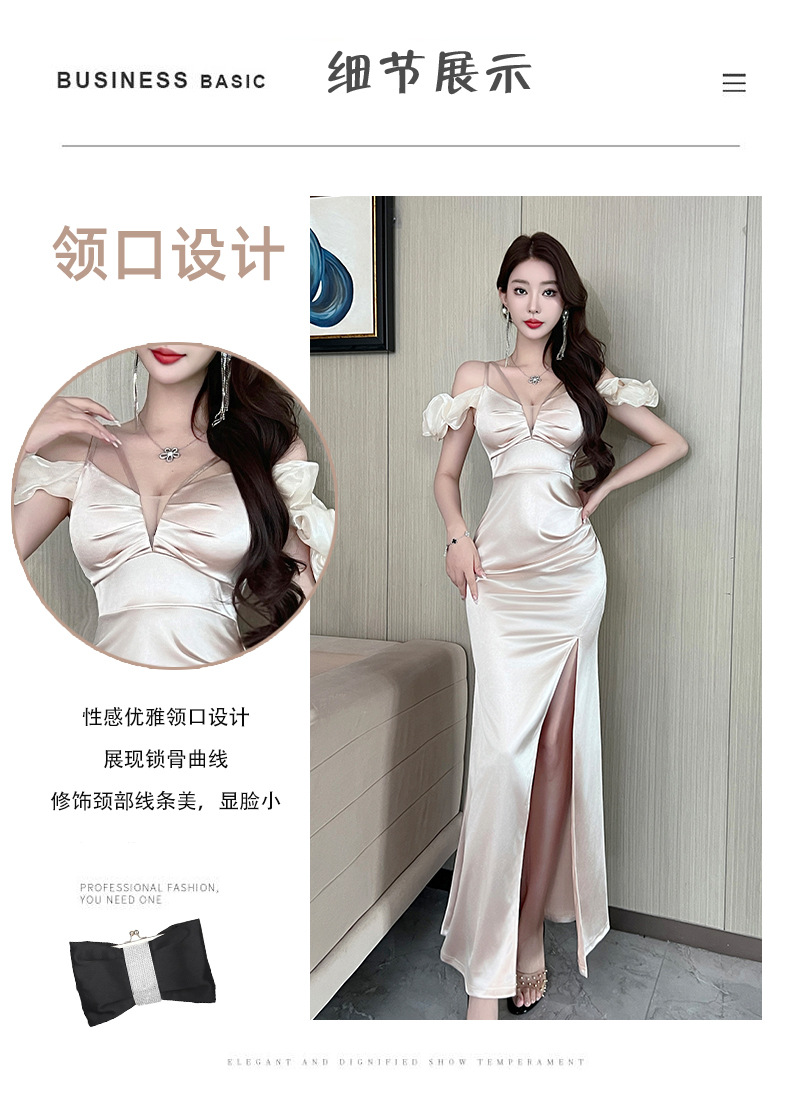 섹시한 순수한 욕망 나이트 클럽 여성 나이트 클럽 작업복 슬리밍 허리 롱 스커트 드레스 새로운 슬릿 드레스