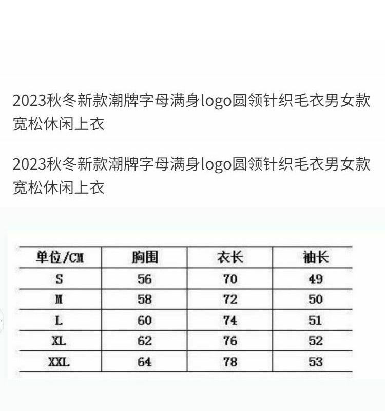 2024 가을 겨울 트렌디 브랜드 레터링 로고 라운드넥 니트 스웨터 남녀공용 루즈핏 캐주얼 긴팔 상의