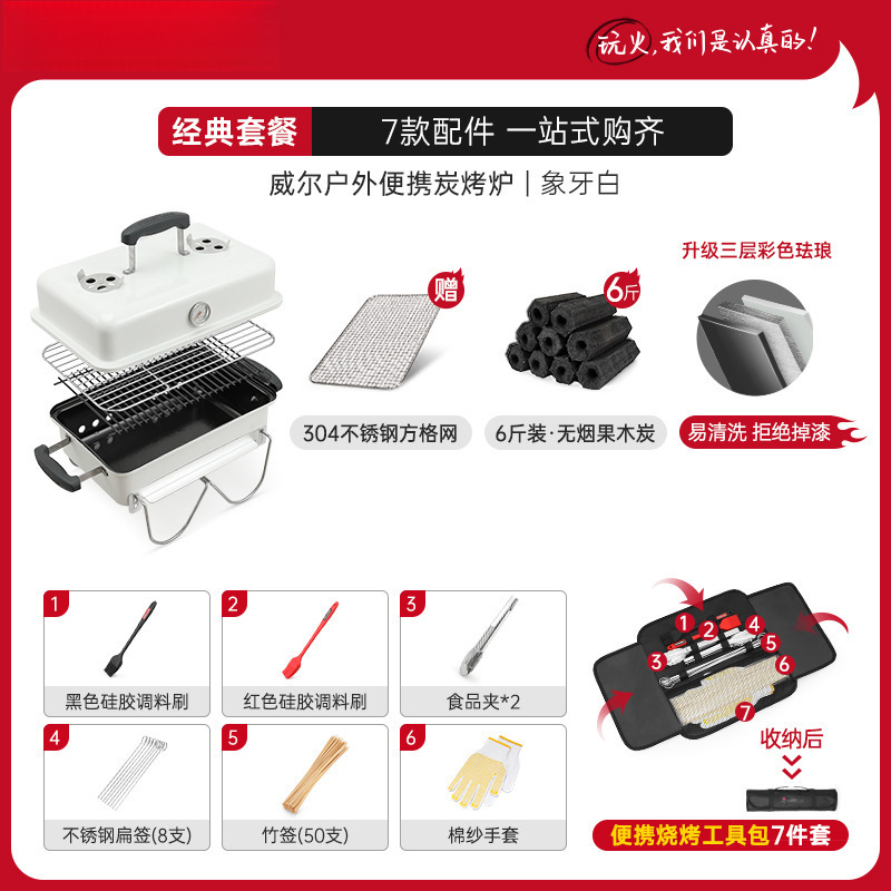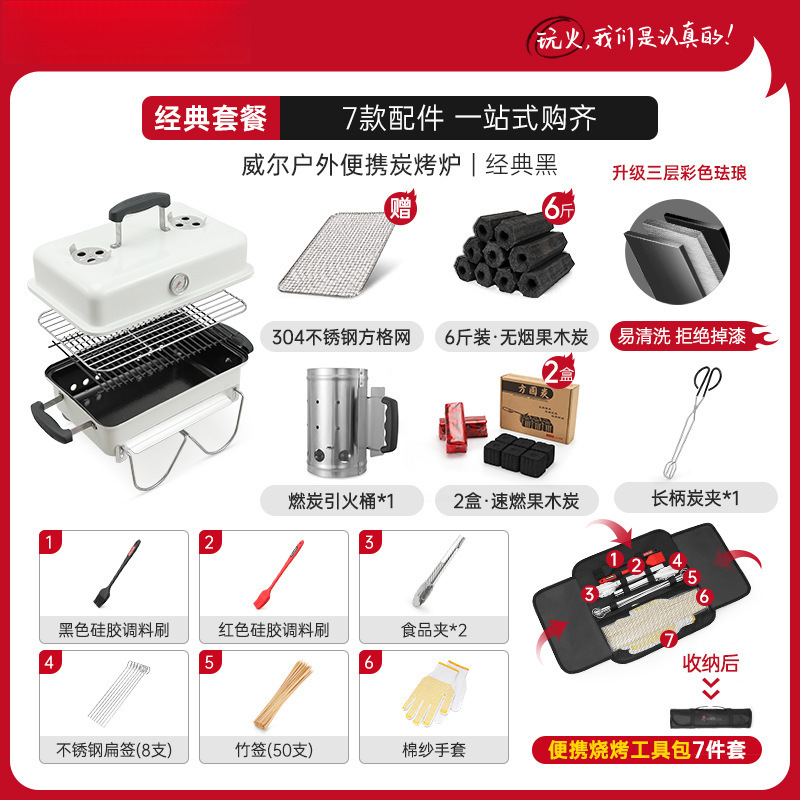 • 윌 아이보리 화이트 [공구가방 + 숯 3kg개 + 초속 탄소 2박스 + 불통 + 숯 클립 + 무료 촘촘한 그물]
