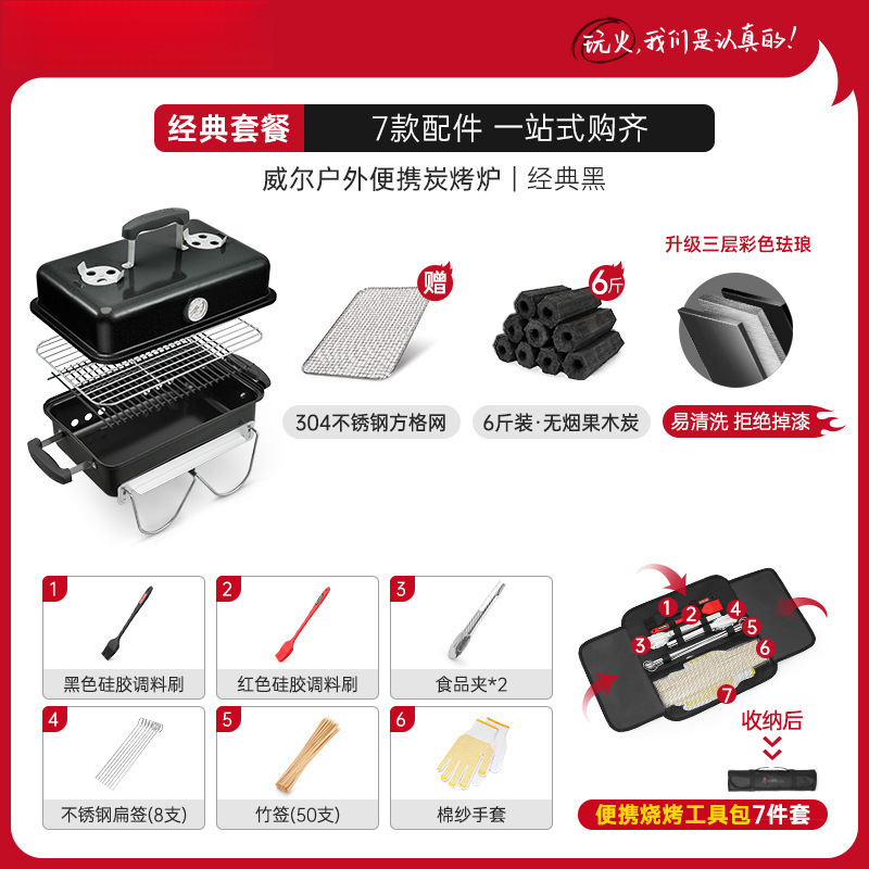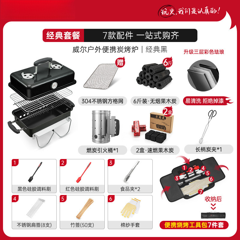 • 윌 클래식 블랙 [숯 3kg개 + 속연탄 2박스 + 불통 + 숯클립 + 공구키트 + 무료 촘촘망]