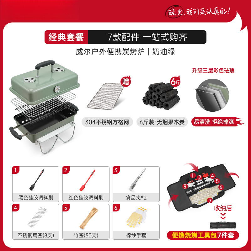 • 윌 크림 그린 [숯 3kg개 + 속연탄 2박스 + 불통 + 숯클립 + 공구 키트 + 무료 촘촘망 ]