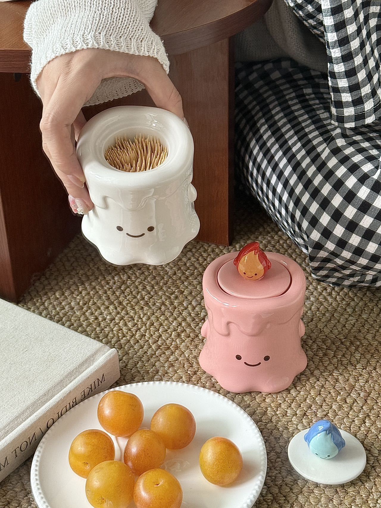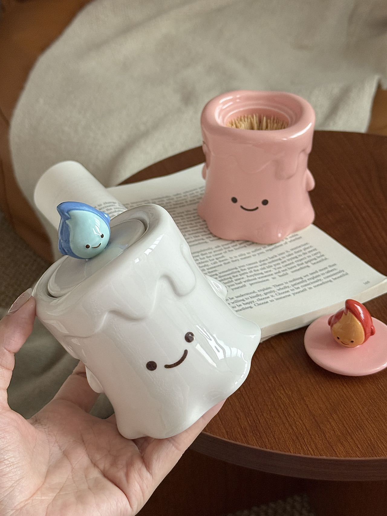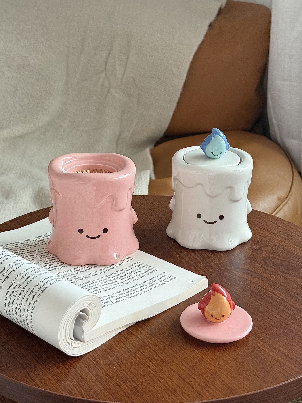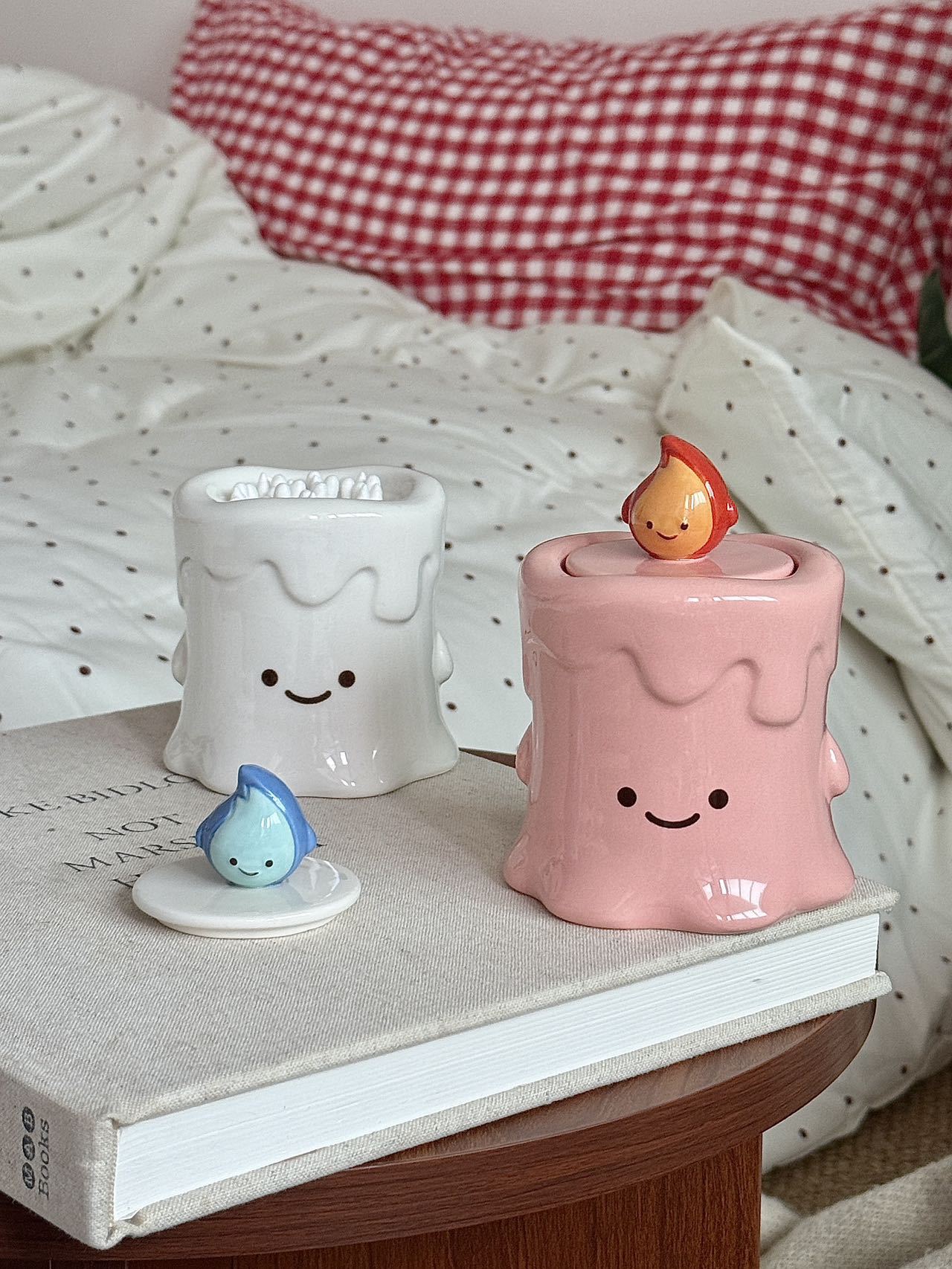 작은 불꽃 모양의 창의적이고 귀여운 세라믹 이쑤시개통, 면봉통, 고급스러운 가정용 거실 및 욕실 치실 보관 장식품
