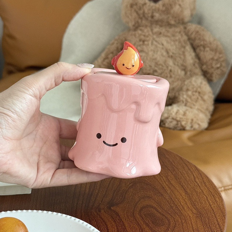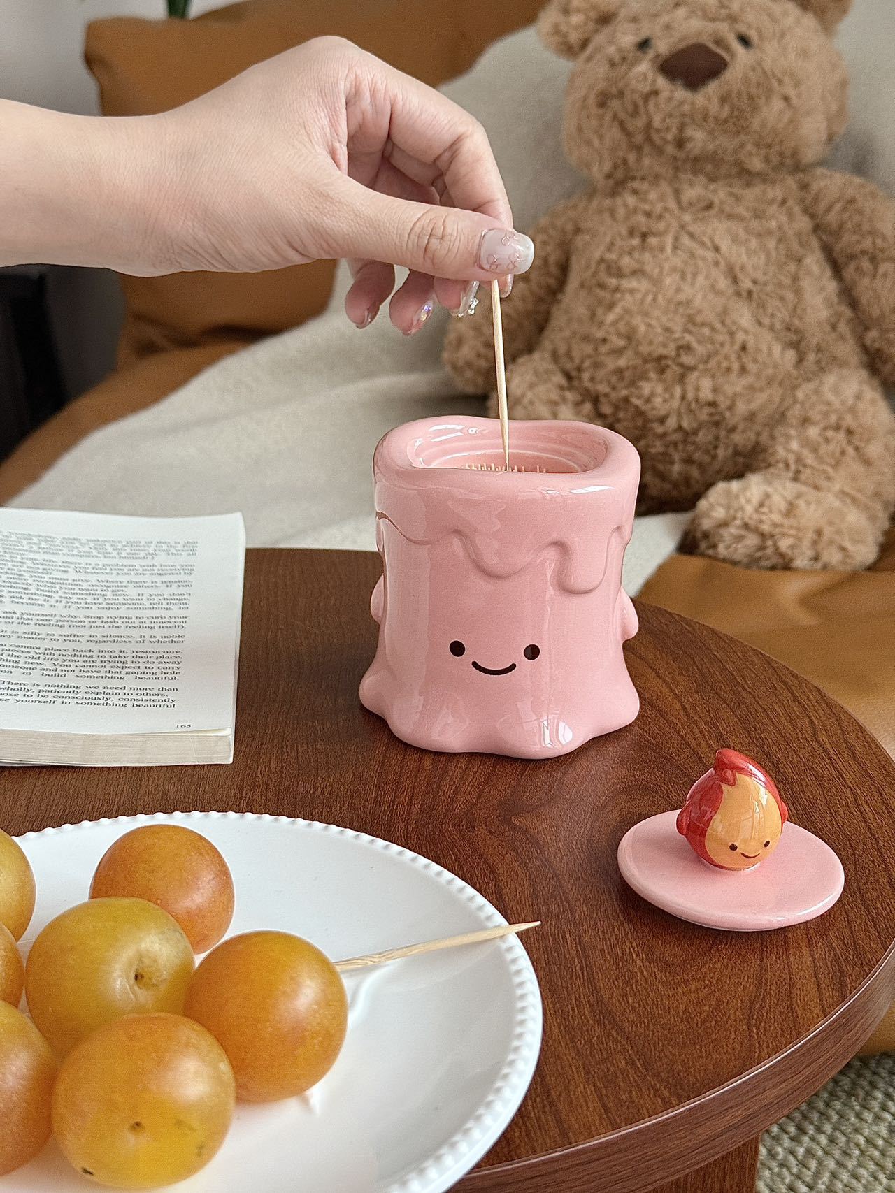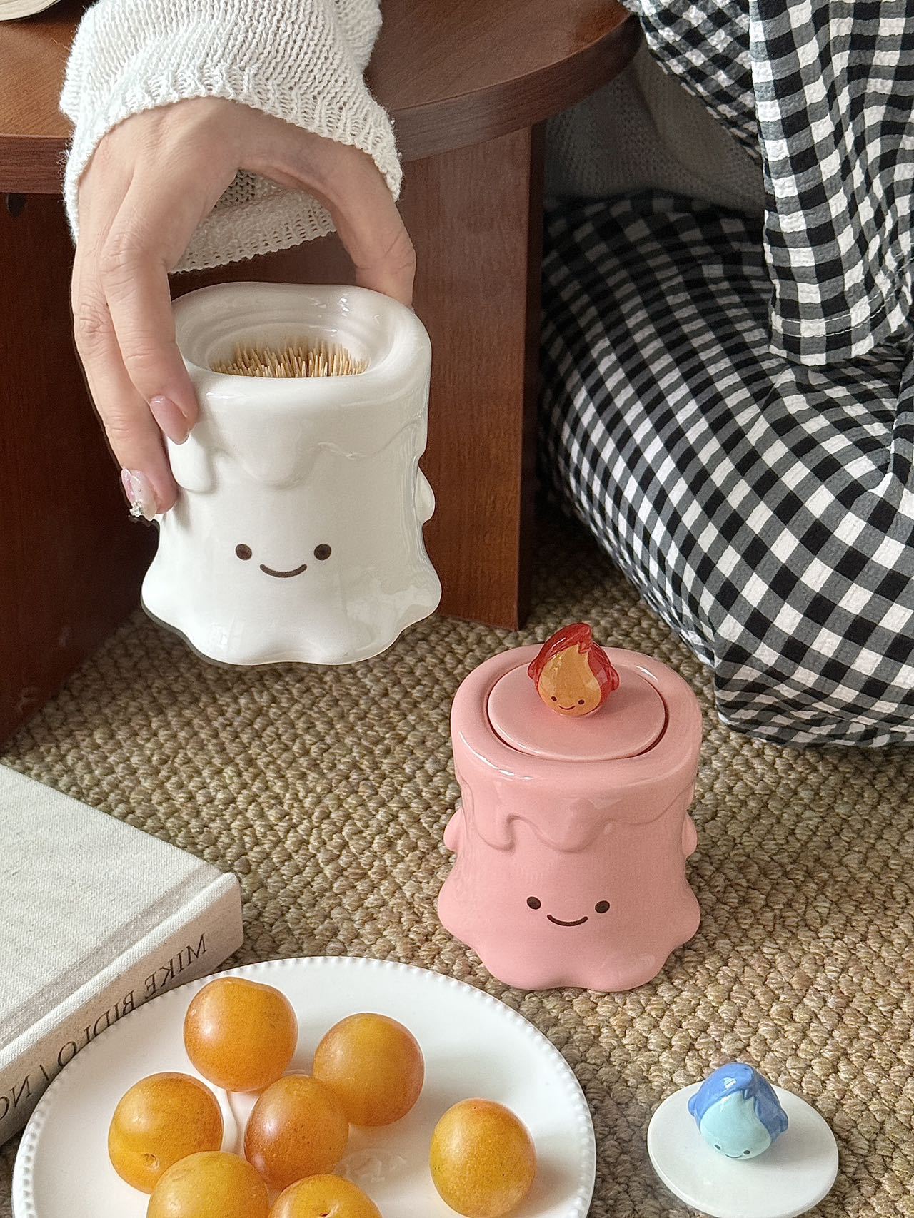 작은 불꽃 모양의 창의적이고 귀여운 세라믹 이쑤시개통, 면봉통, 고급스러운 가정용 거실 및 욕실 치실 보관 장식품