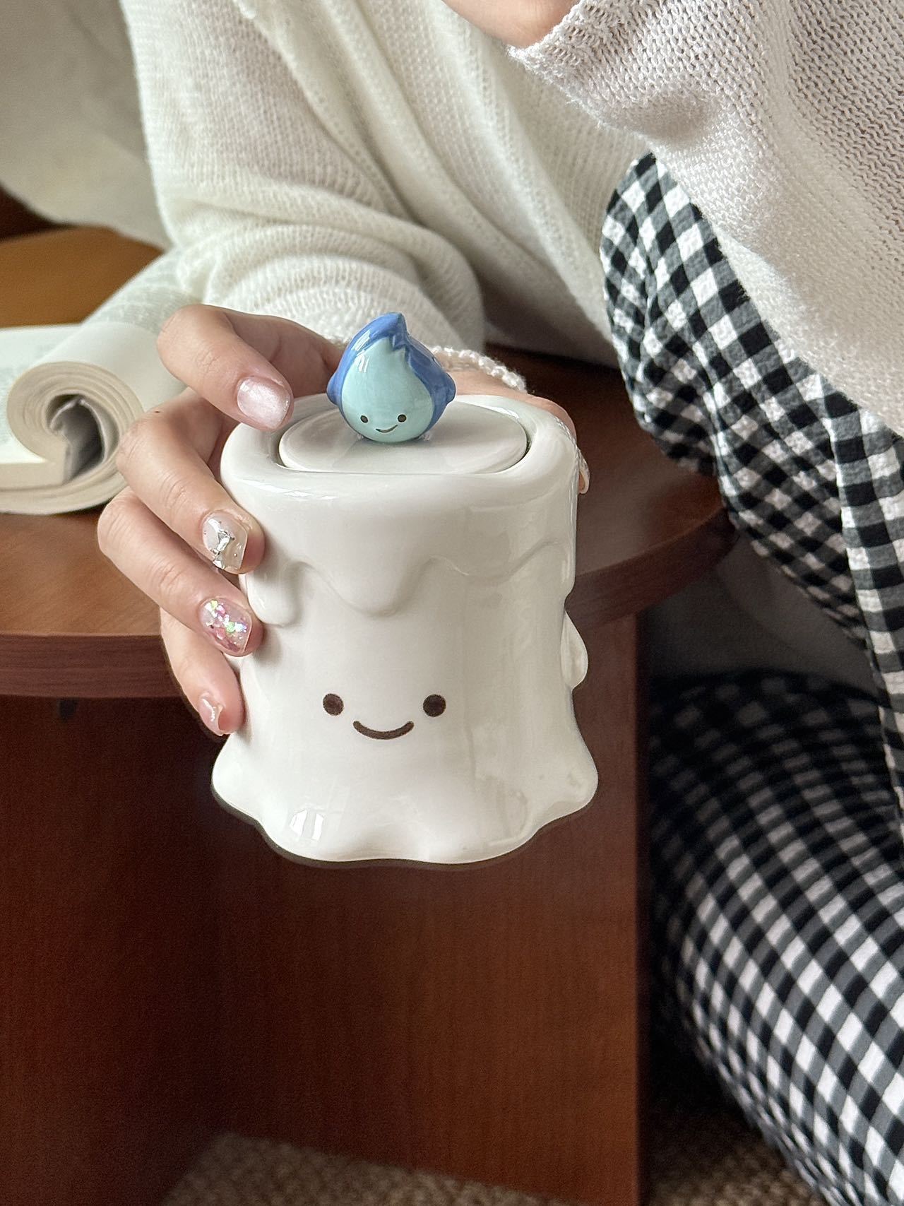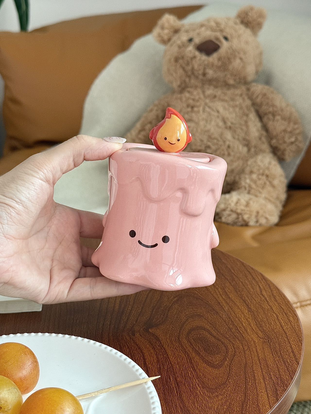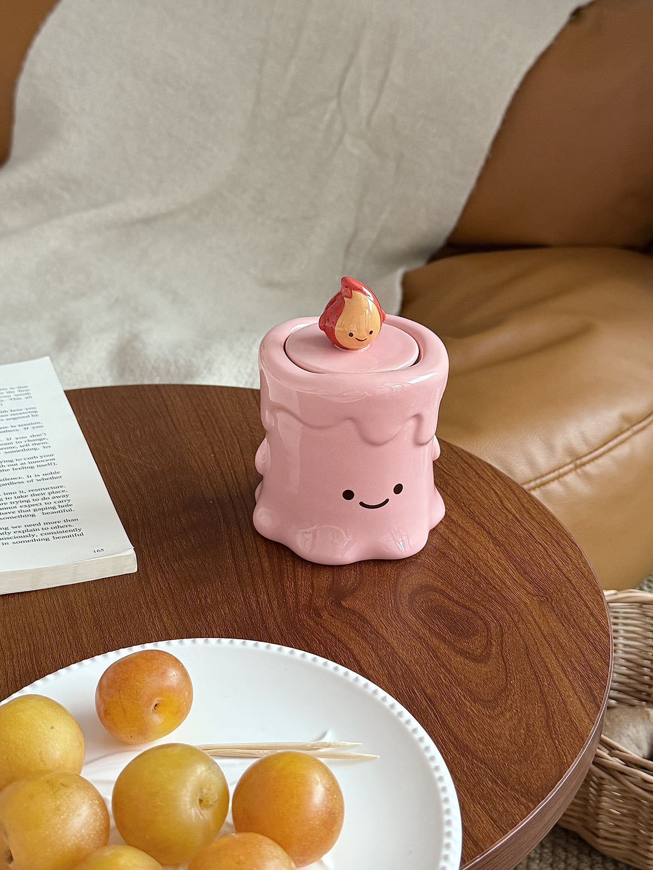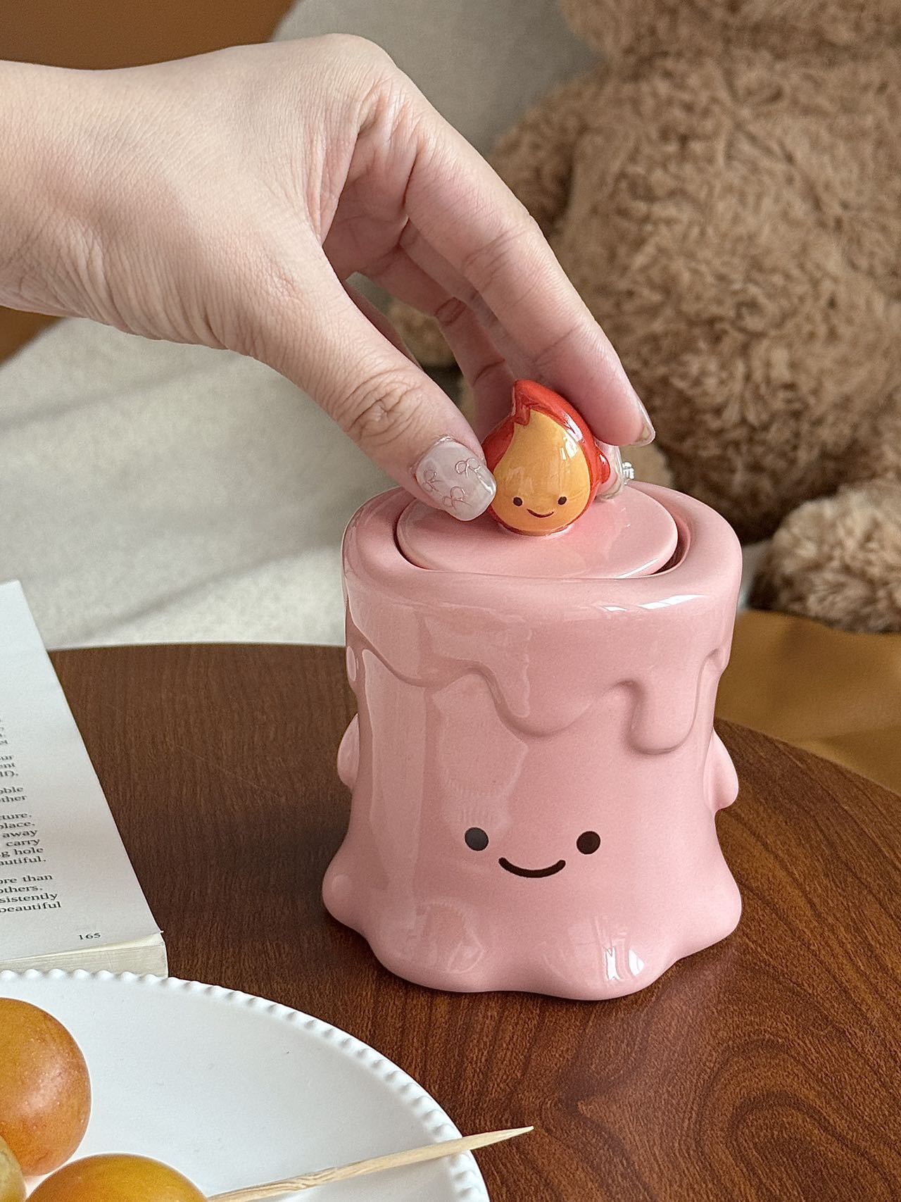 작은 불꽃 모양의 창의적이고 귀여운 세라믹 이쑤시개통, 면봉통, 고급스러운 가정용 거실 및 욕실 치실 보관 장식품