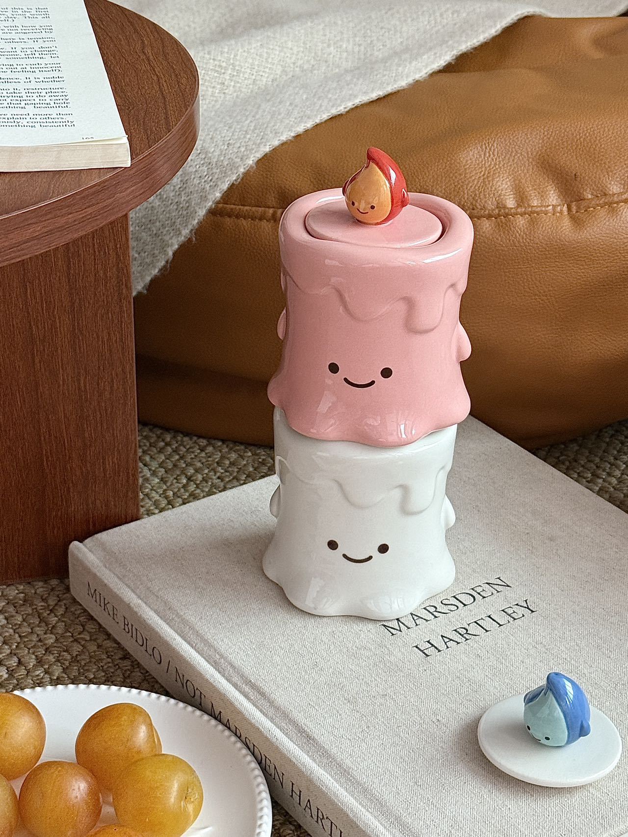 작은 불꽃 모양의 창의적이고 귀여운 세라믹 이쑤시개통, 면봉통, 고급스러운 가정용 거실 및 욕실 치실 보관 장식품스토어 가기
