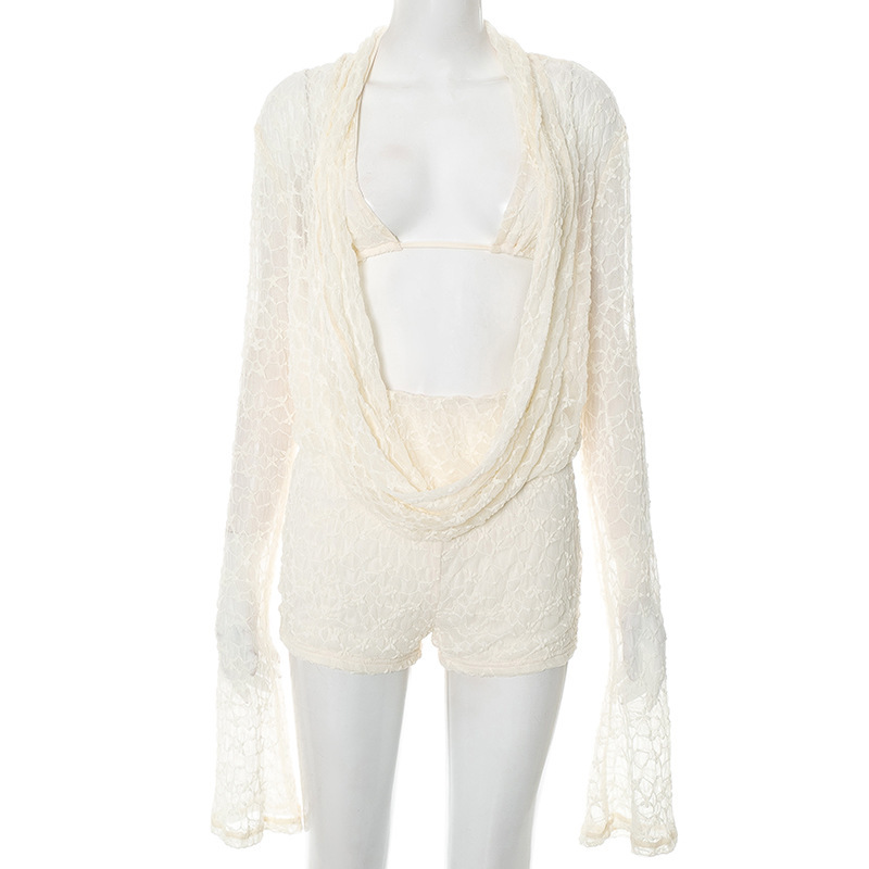 Sanhu Lianjiang Y25ST234 유럽과 미국 여성 여름 새로운 섹시한 매력 스타일 긴팔 반바지 레이스 정장 여성