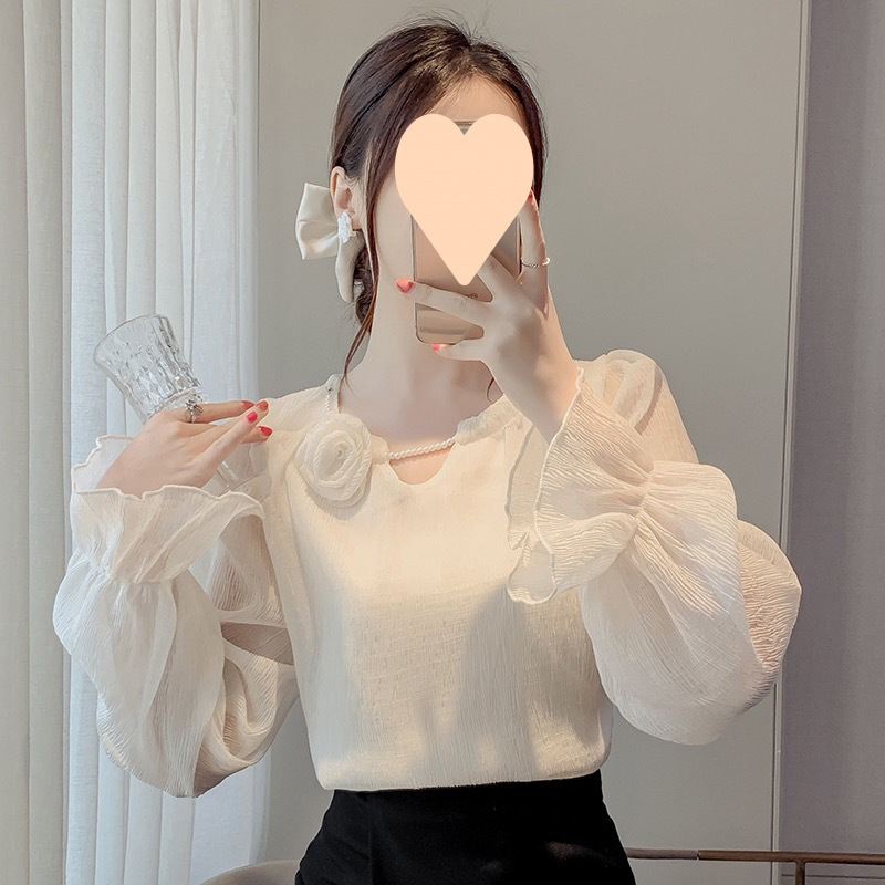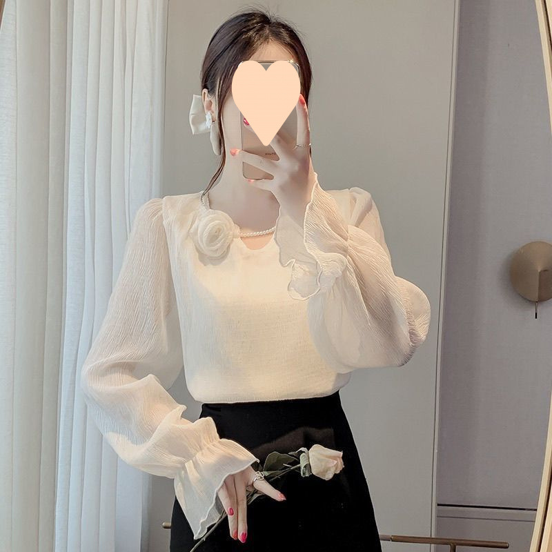 가을 겨울 여성용 프렌치 벨 슬리브 쉬폰 셔츠, 벨벳, 유럽 패션, 시크한 셔츠, 우아한 탑스토어 가기