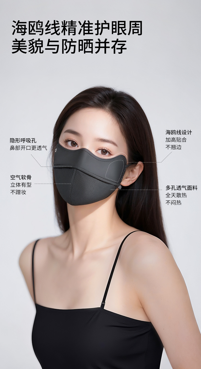 여성을위한 여름 얼음 실크 자외선 차단제 마스크 눈 보호 3D 물고기 뼈 자외선 차단제 마스크 야외 자외선 차단 통기성 마스크