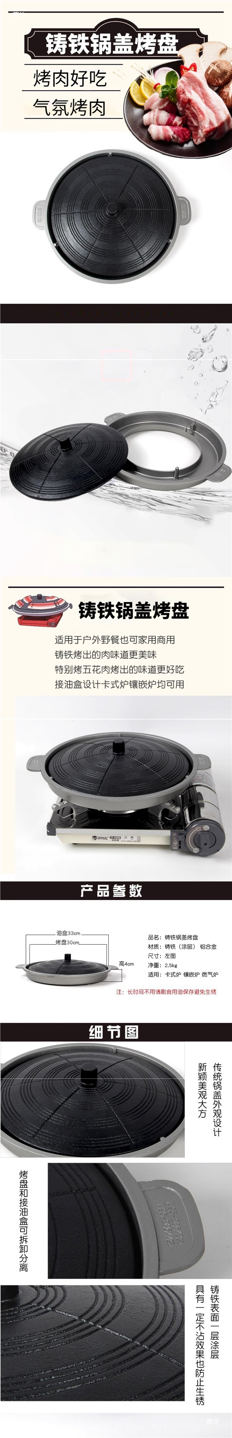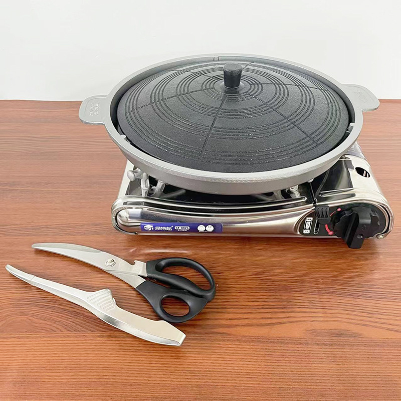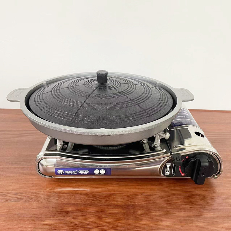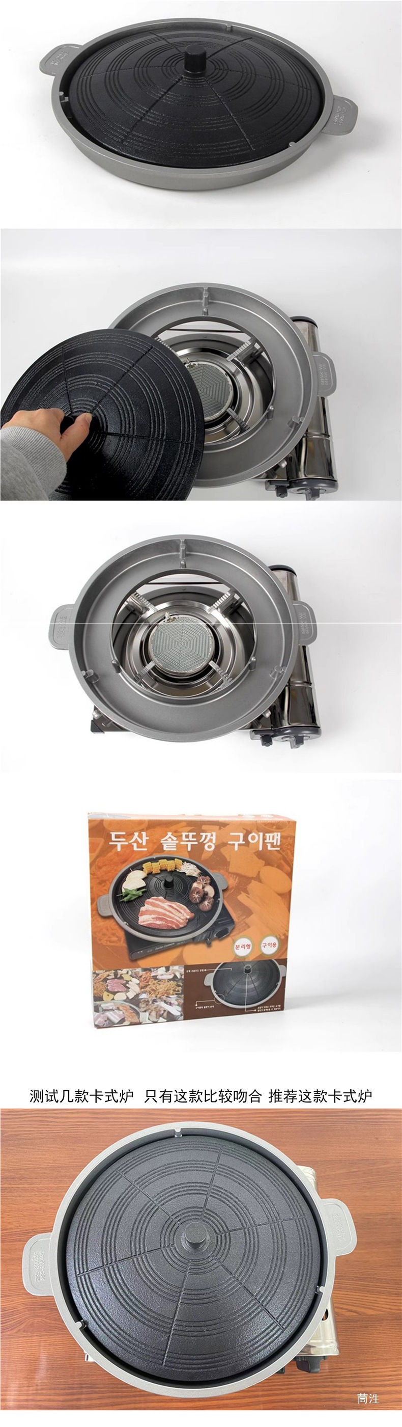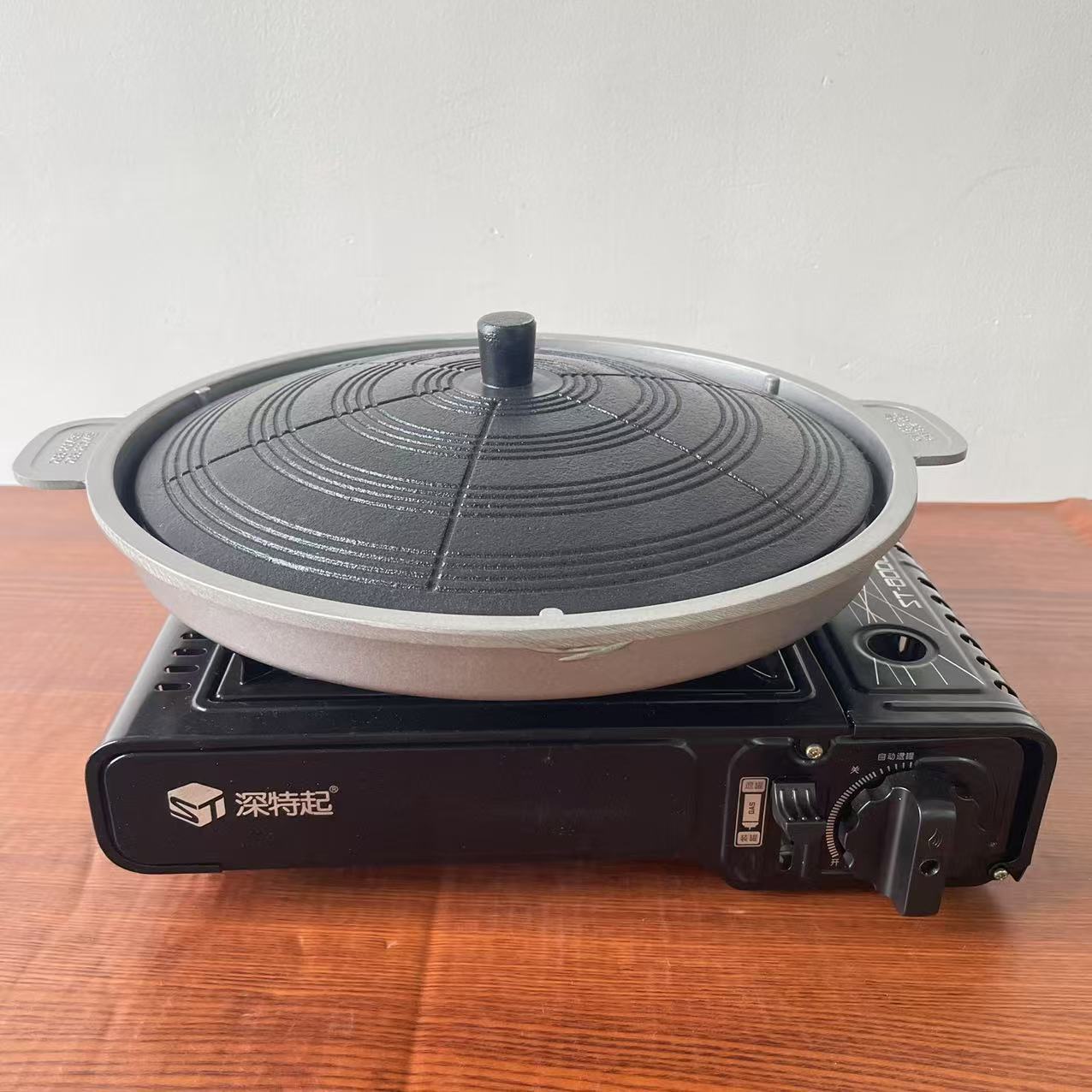 한국식 주철 냄비뚜껑 그릴 팬 상업용 바베큐 팬 카세트 스토브 그릴 팬 원형 주철 삼겹살 그릴 팬 30cm