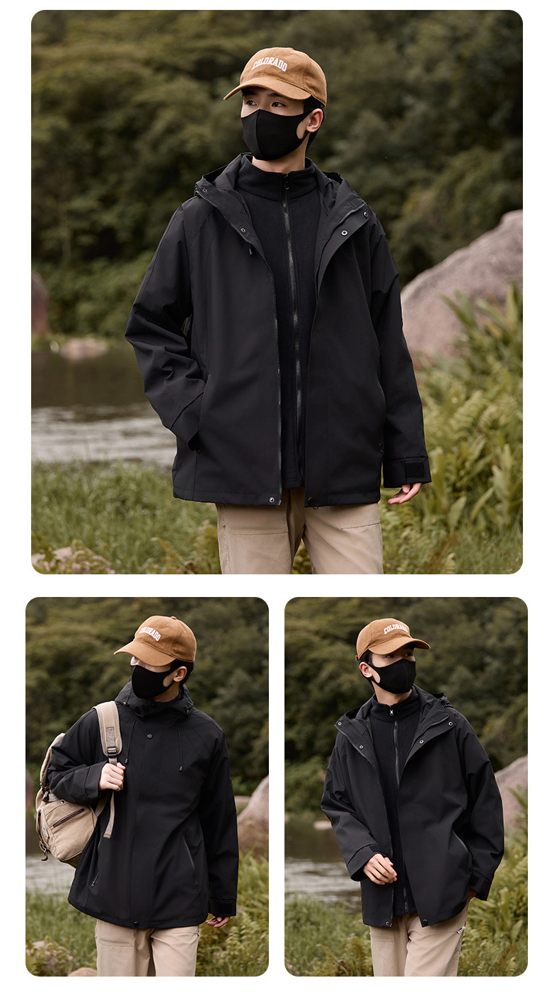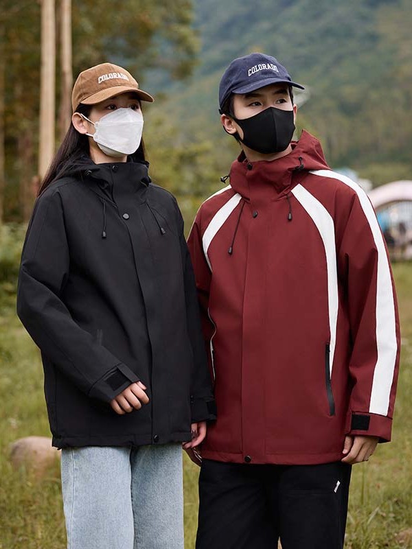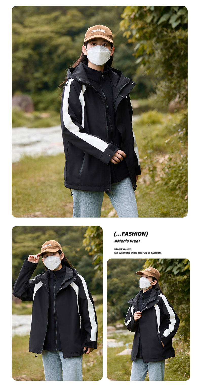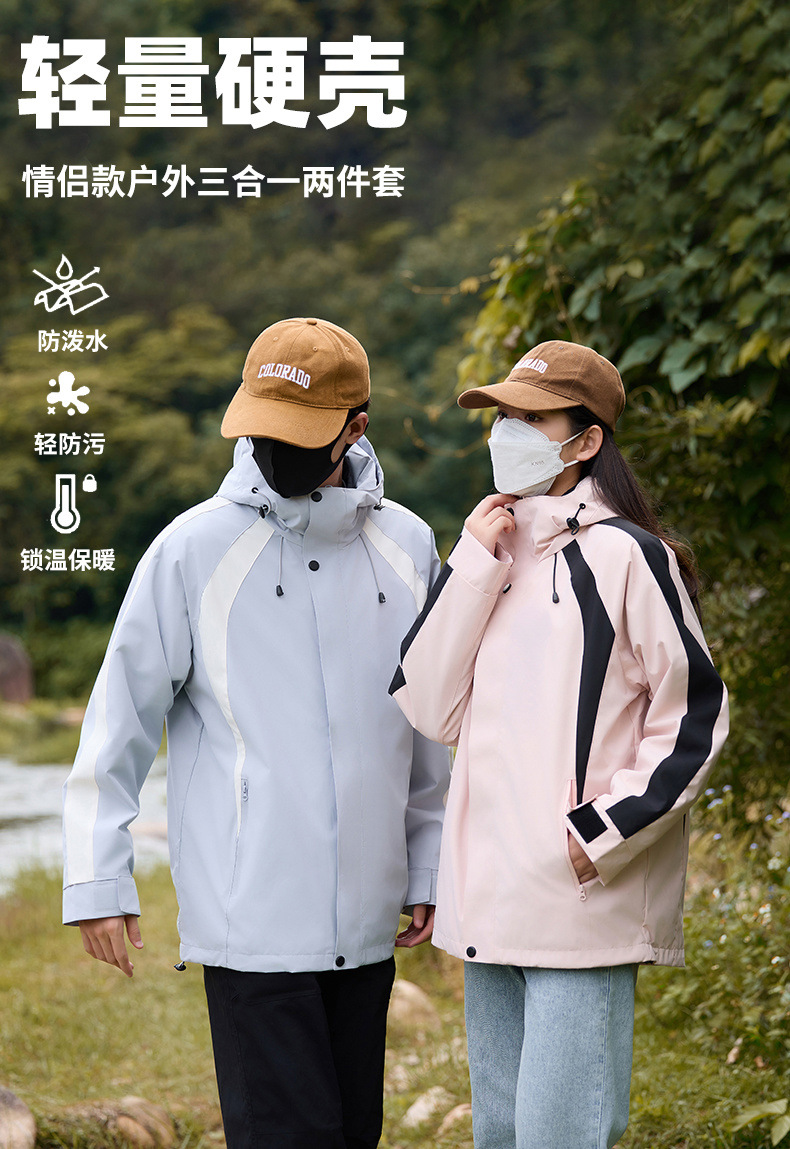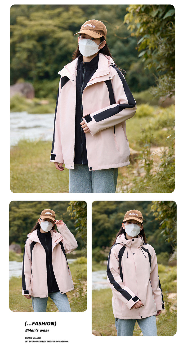봄과 가을 새로운 야외 남성과 여성을위한 3-in-one 재킷, 컬러 블록 방수 재킷, 등산 재킷스토어 가기