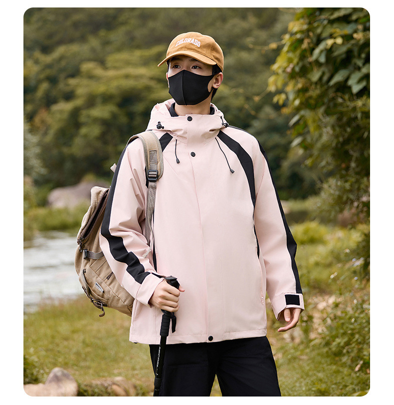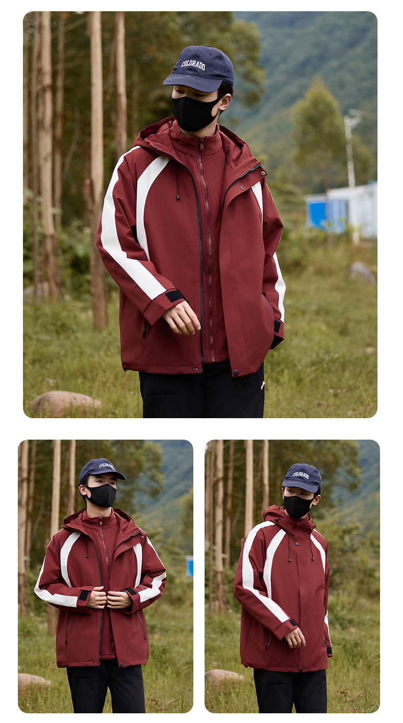 봄과 가을 새로운 야외 남성과 여성을위한 3-in-one 재킷, 컬러 블록 방수 재킷, 등산 재킷