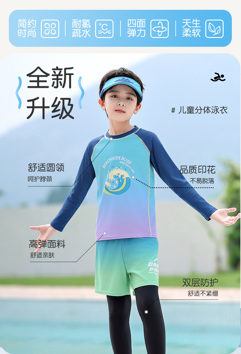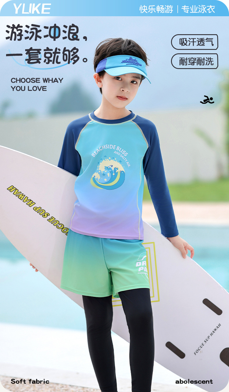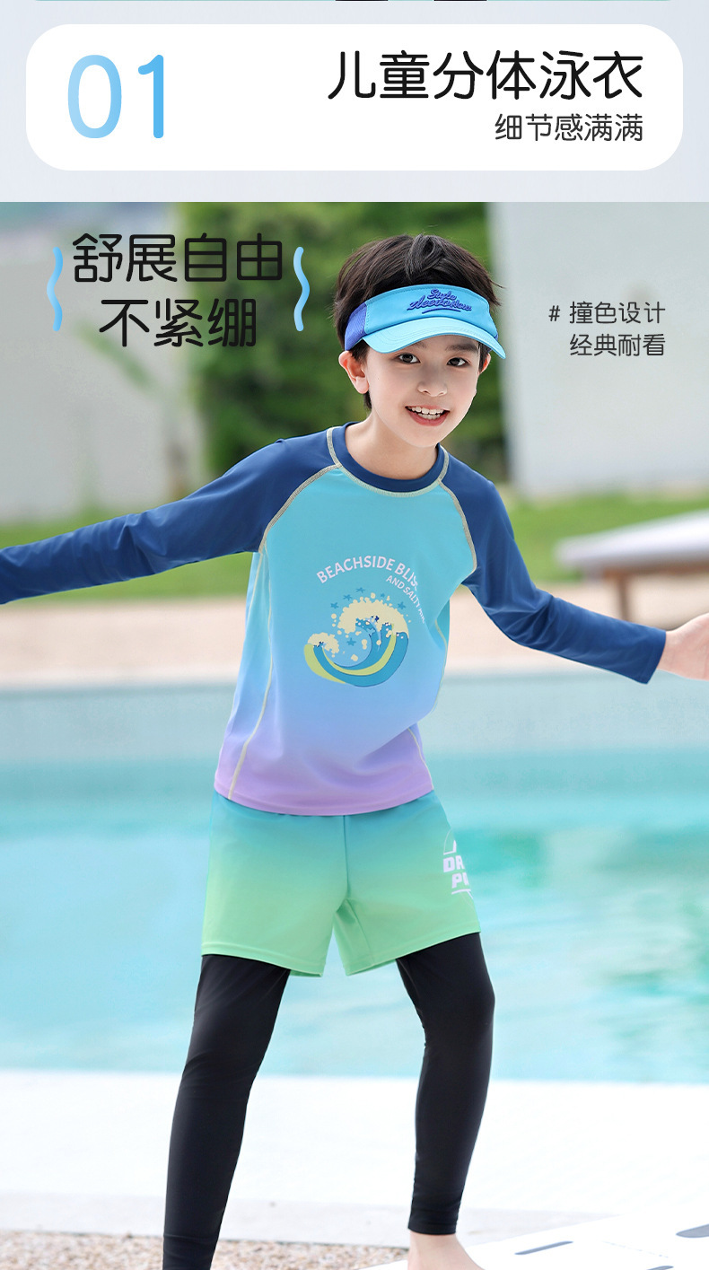 아동용 수영복, 남아용 스플릿 수영복, 긴팔 바지, 새로운 수영복, 청소년 자외선 차단 수영복