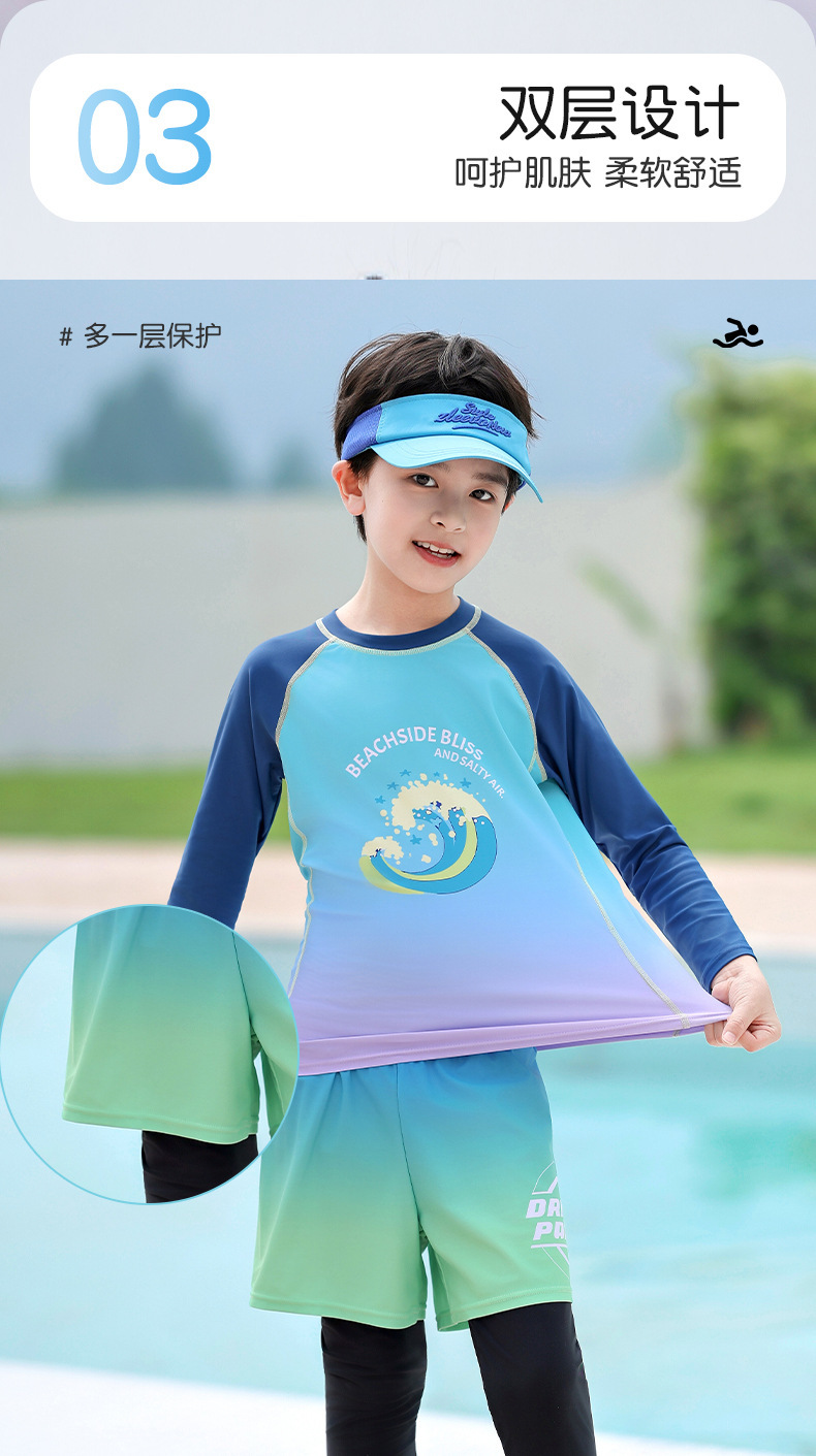아동용 수영복, 남아용 스플릿 수영복, 긴팔 바지, 새로운 수영복, 청소년 자외선 차단 수영복스토어 가기