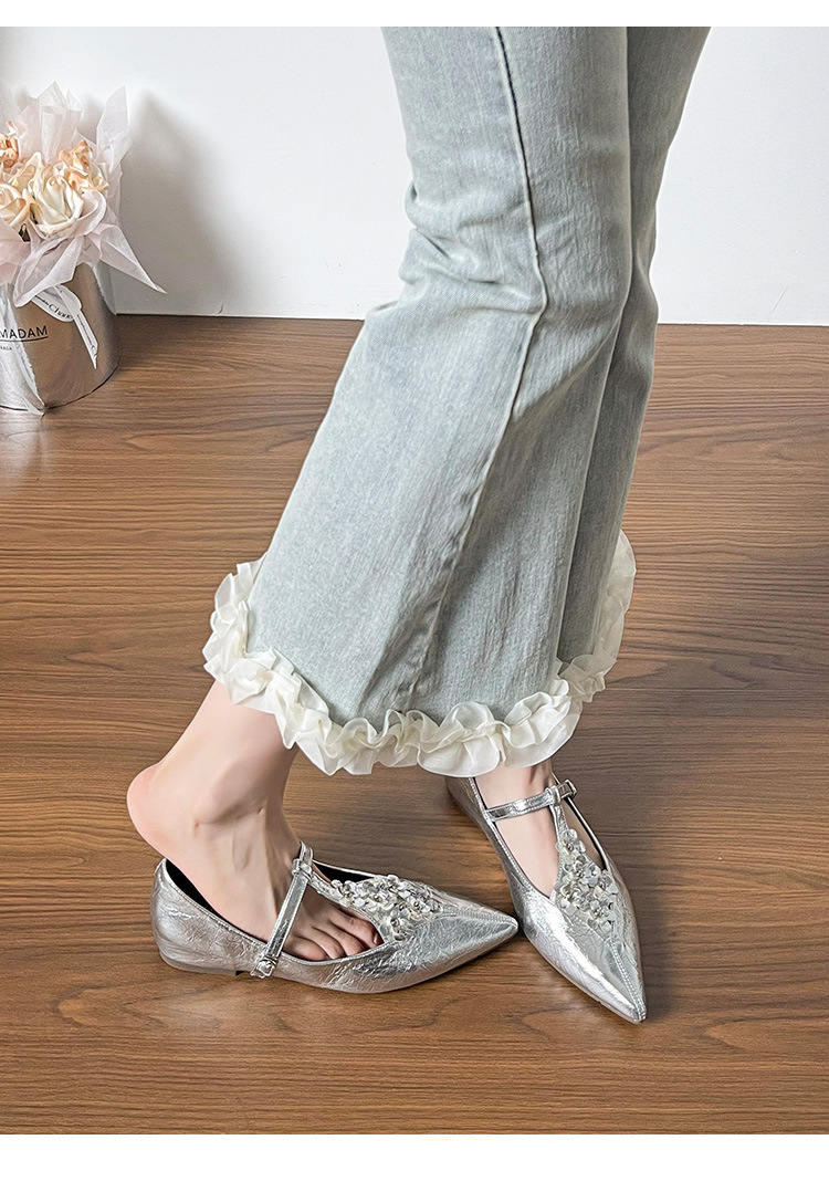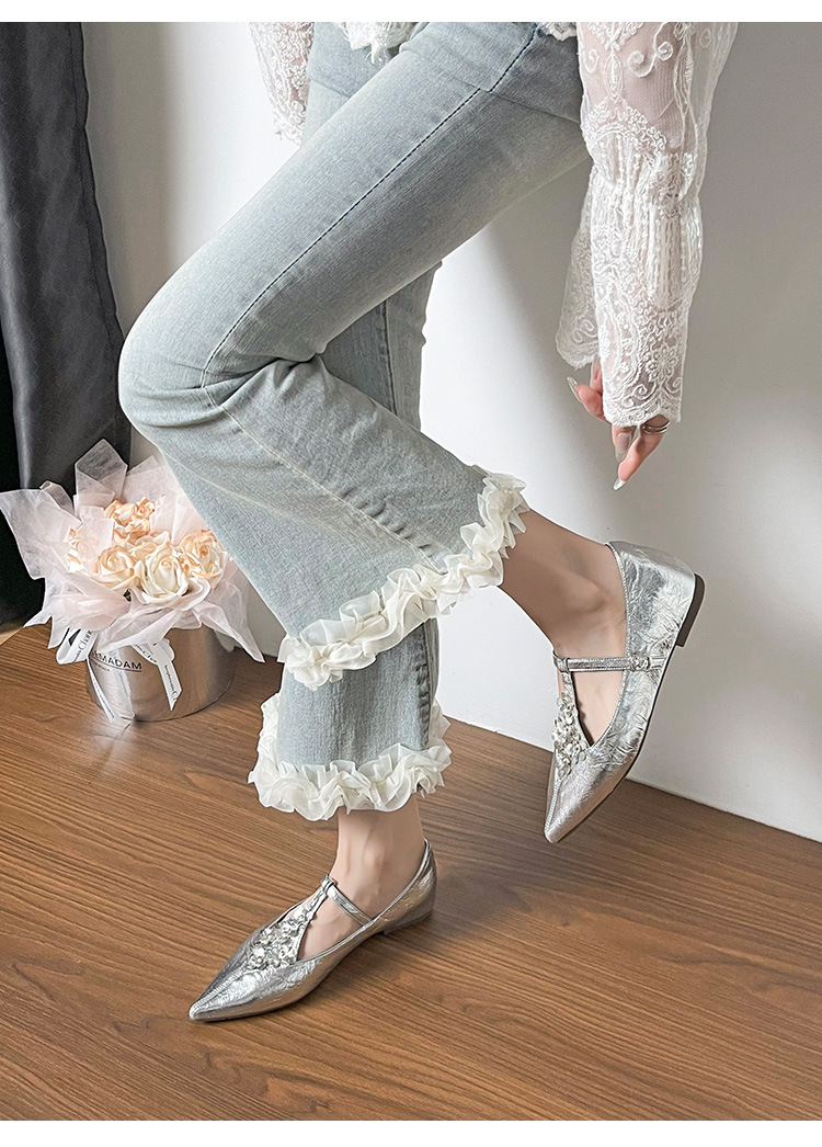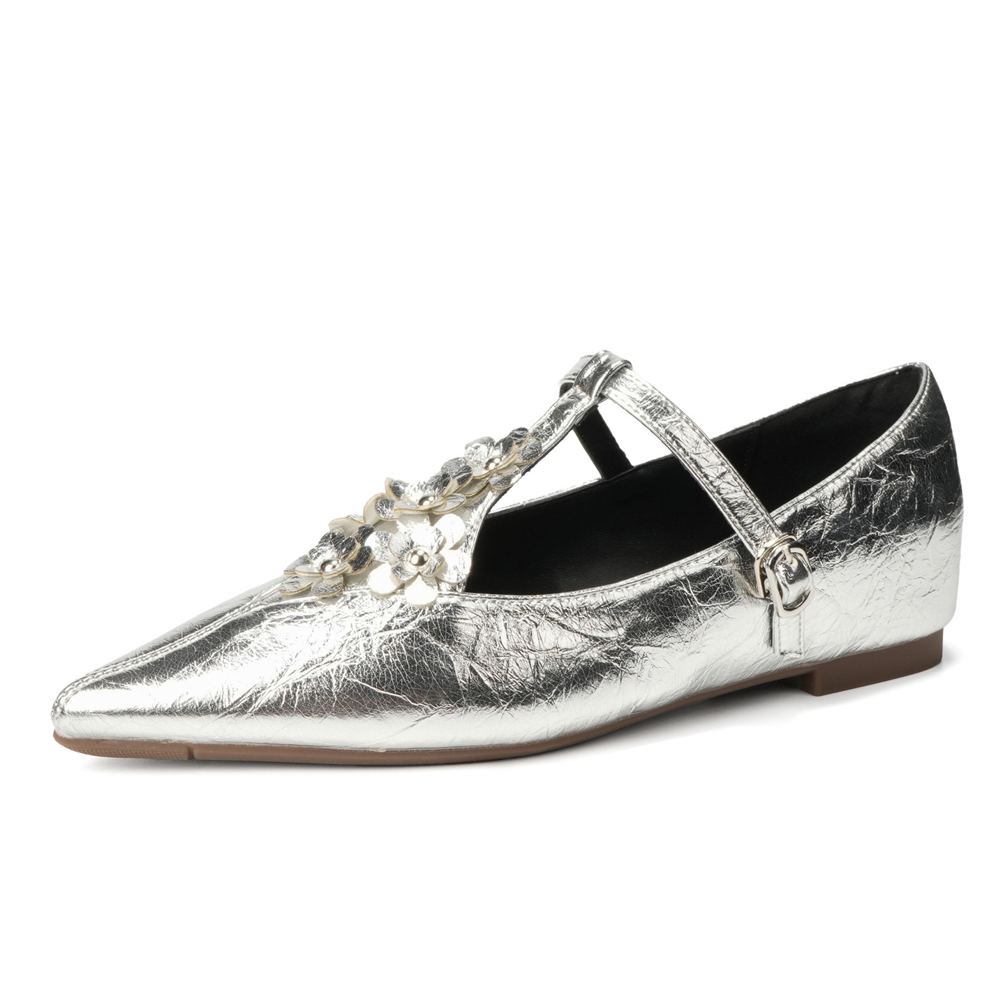 5555-1 신상품 틈새 시장 레트로 플라워 여성용 슈즈 봄 신상품 뾰족코 버클 얕은 입구 직업용 작업화