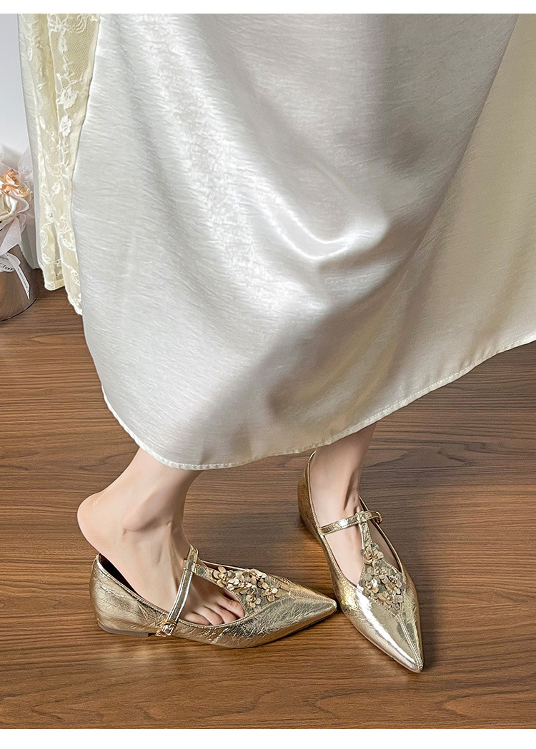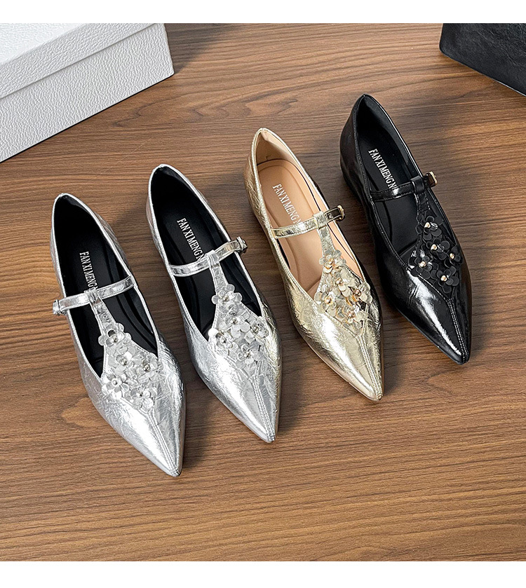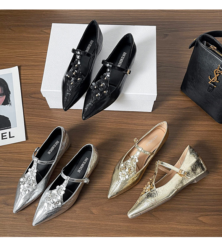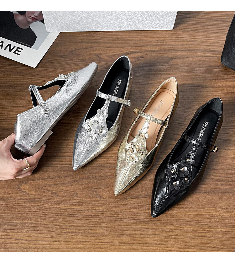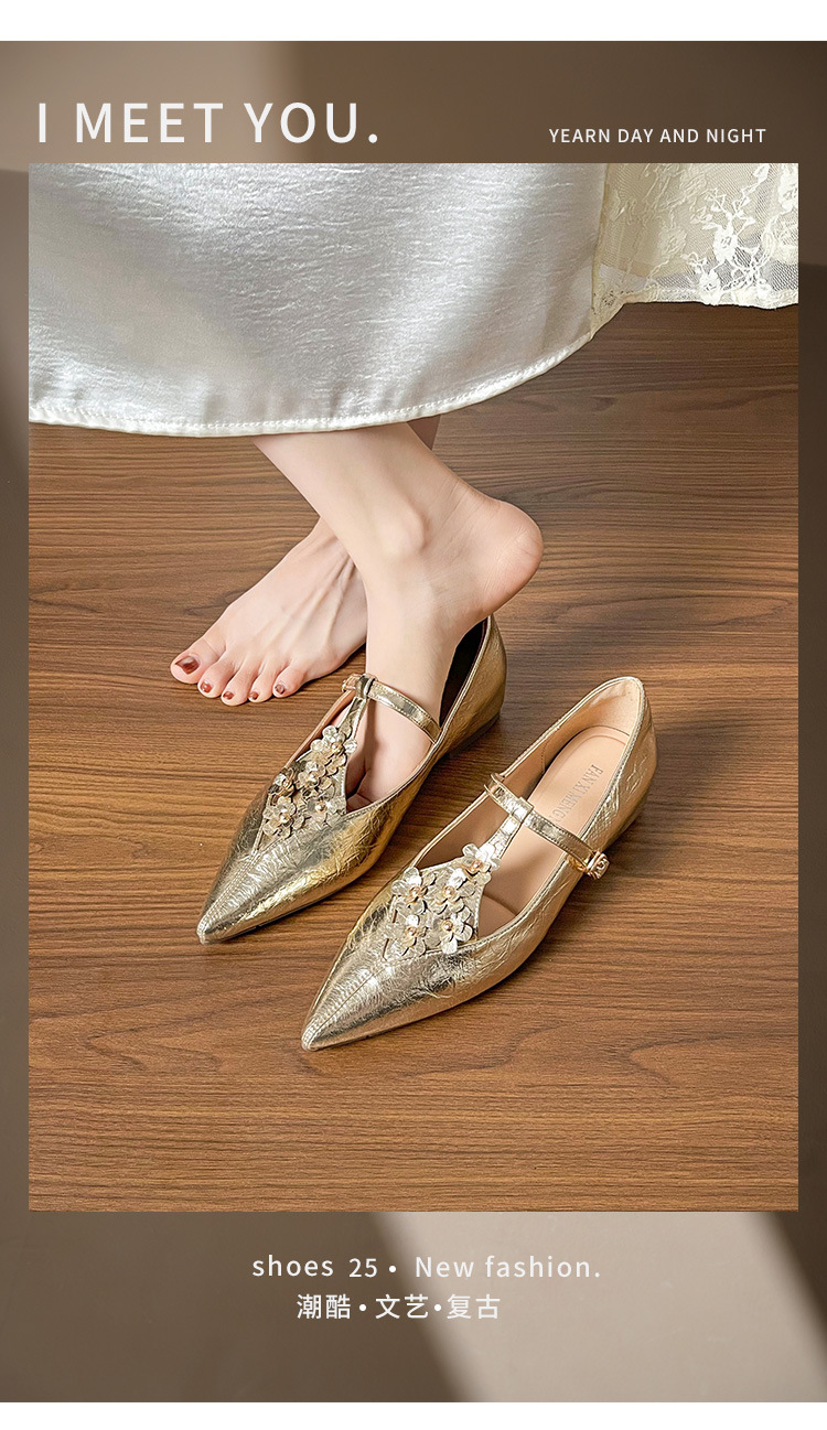 5555-1 신상품 틈새 시장 레트로 플라워 여성용 슈즈 봄 신상품 뾰족코 버클 얕은 입구 직업용 작업화스토어 가기