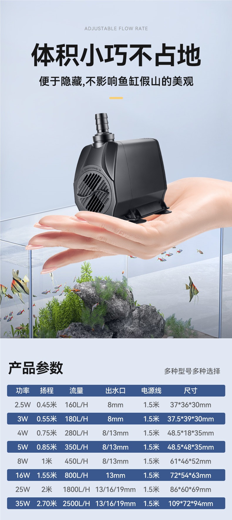 • 2.5w 워터펌프 160L, 리프트 45cm [가상표준이 아닌 실제전력]