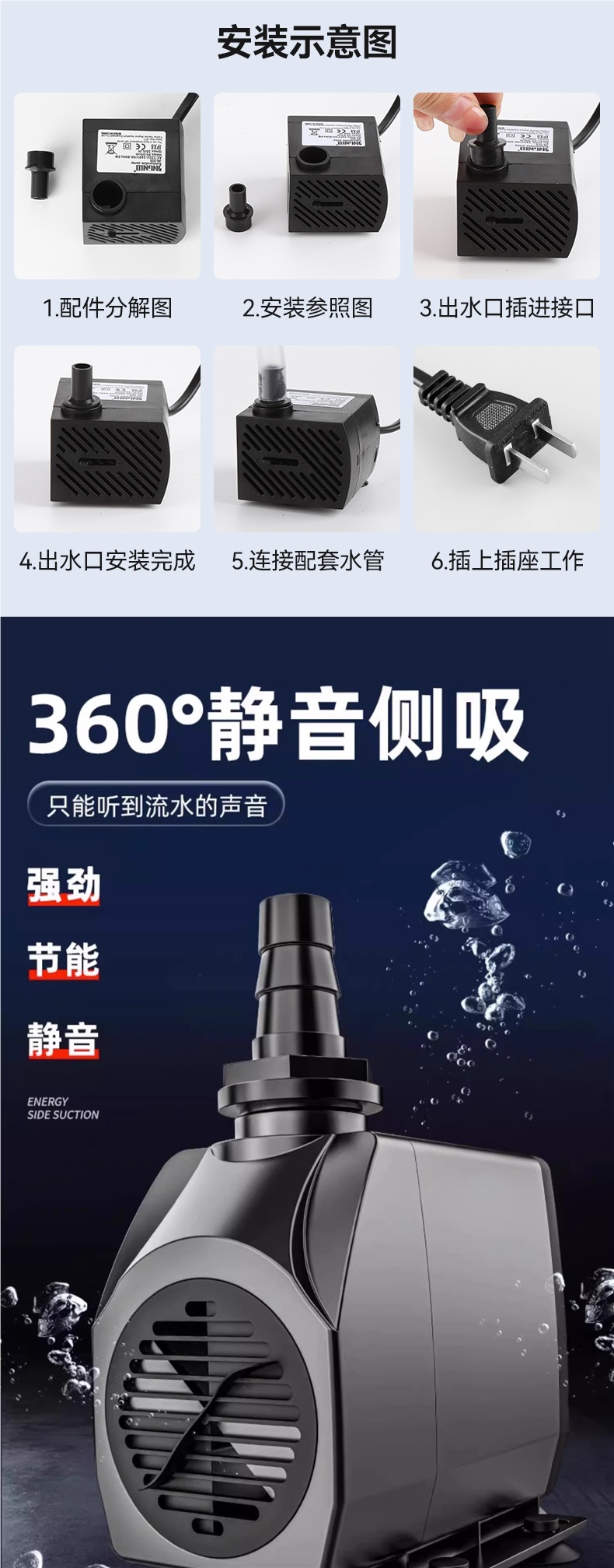 수조 수중 펌프, 워터 펌프, 바닥 흡입 펌프, 저소음 물 순환 필터 펌프, 물 교환 순환, 초저소음 물 흐름스토어 가기