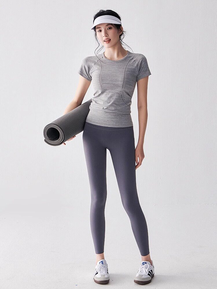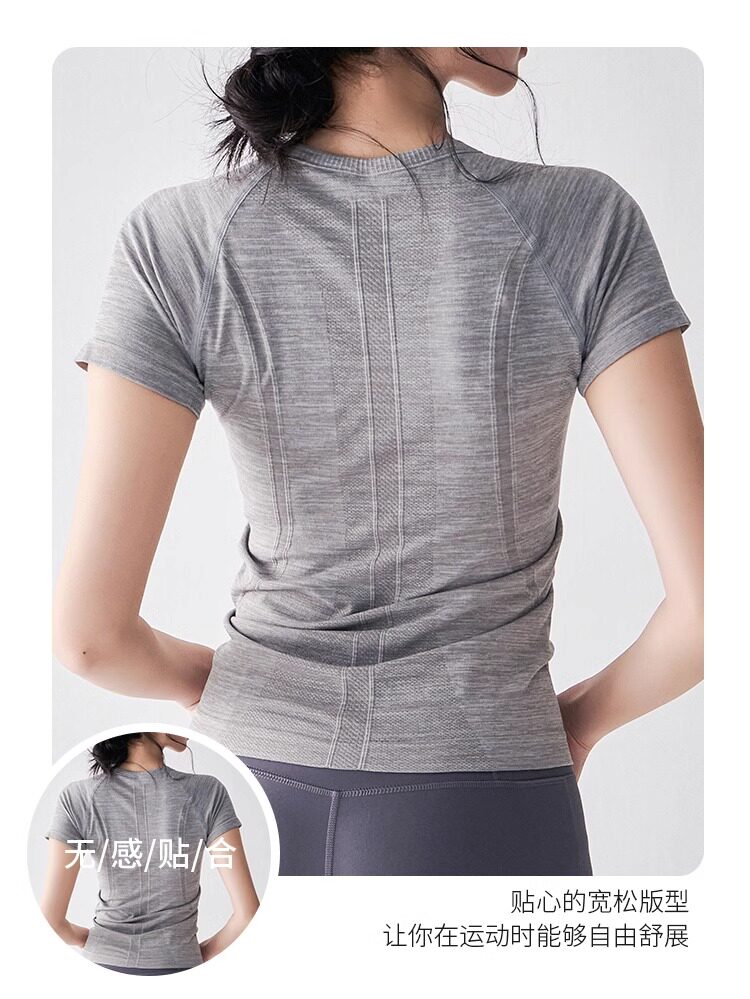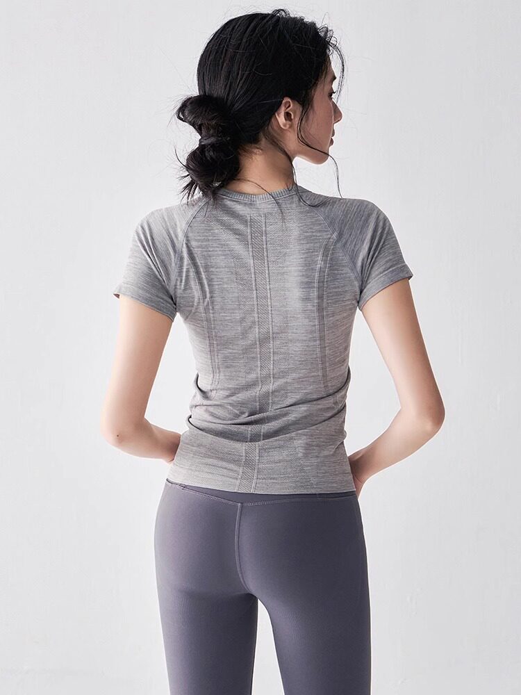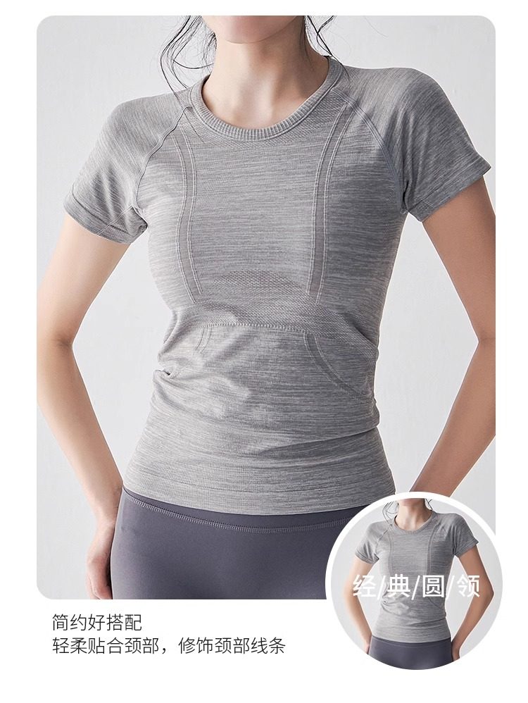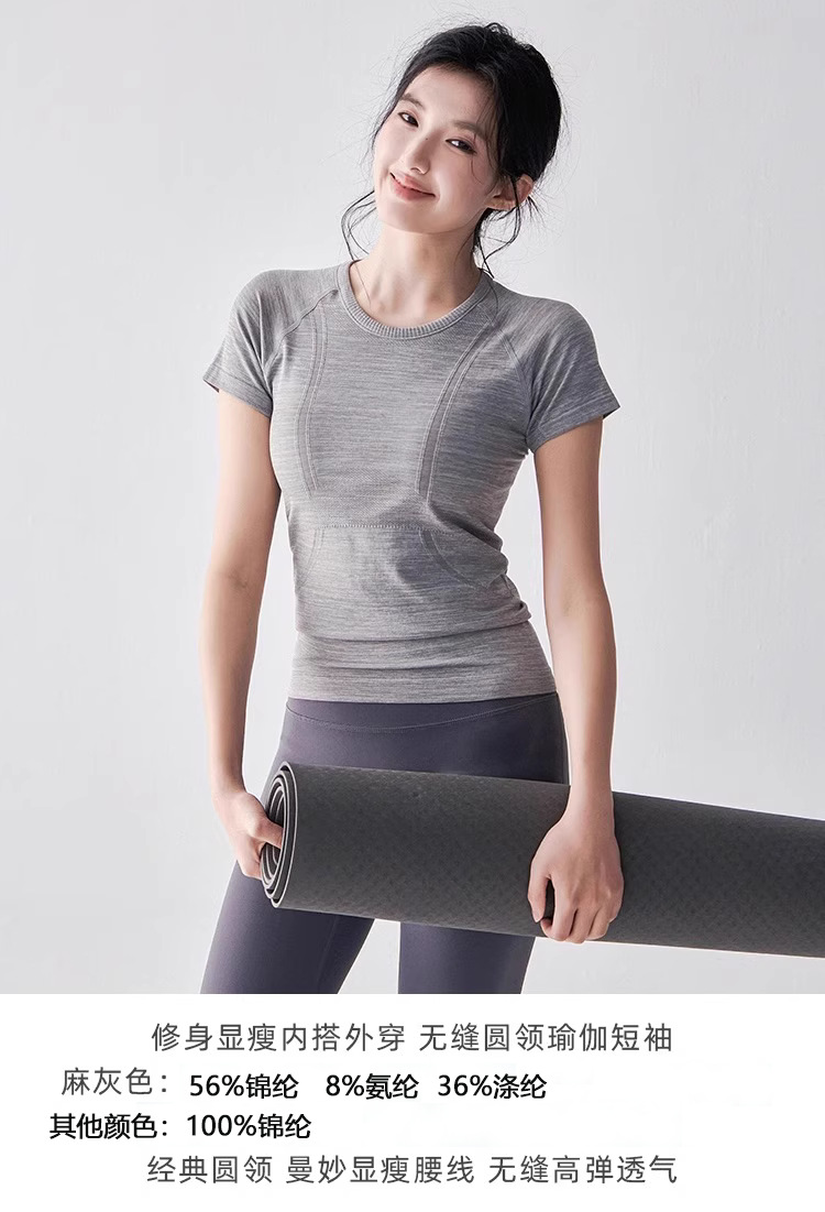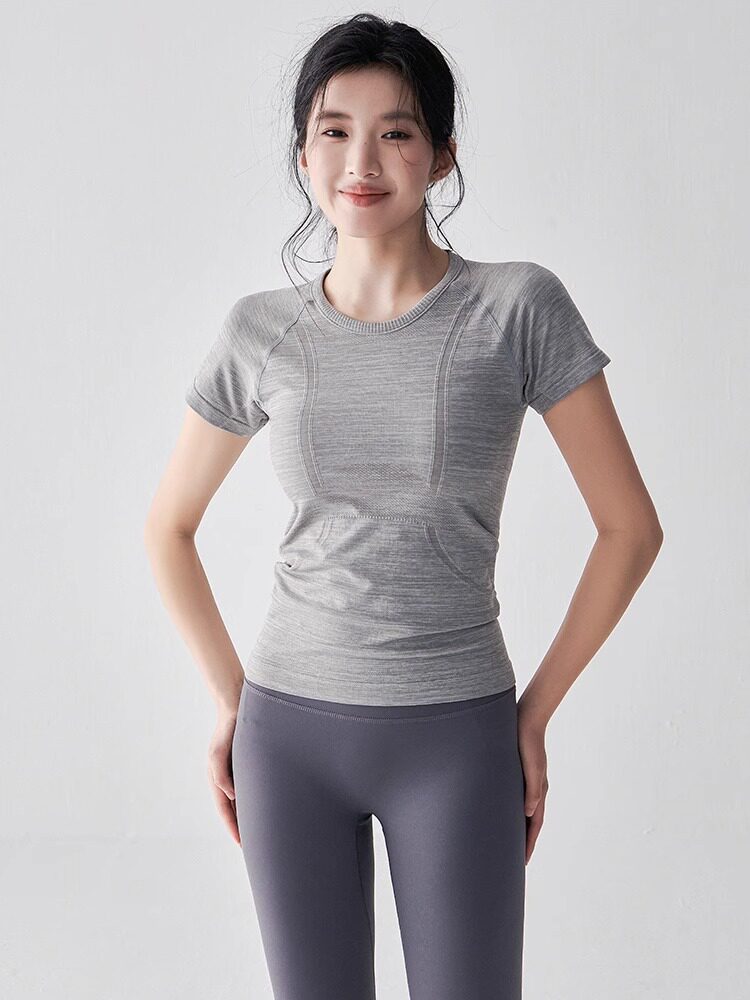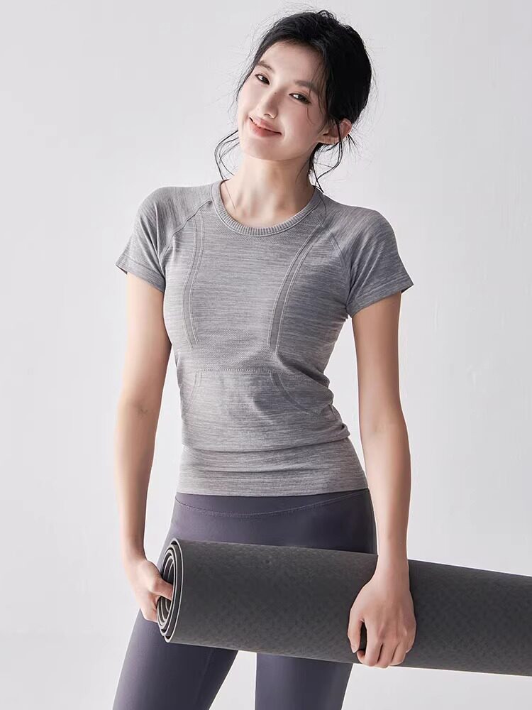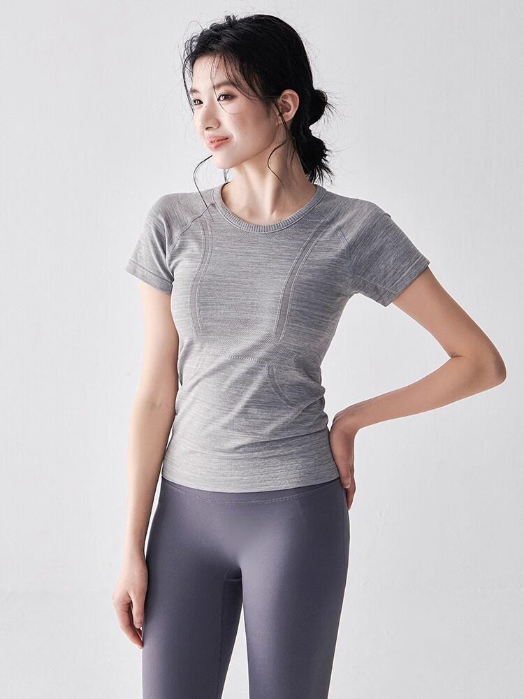 여름 타이트 슬리밍 요가웨어 반팔 라운드 넥 속건성 통기성 러닝 스포츠 티셔츠 스트레치 필라테스 탑스토어 가기