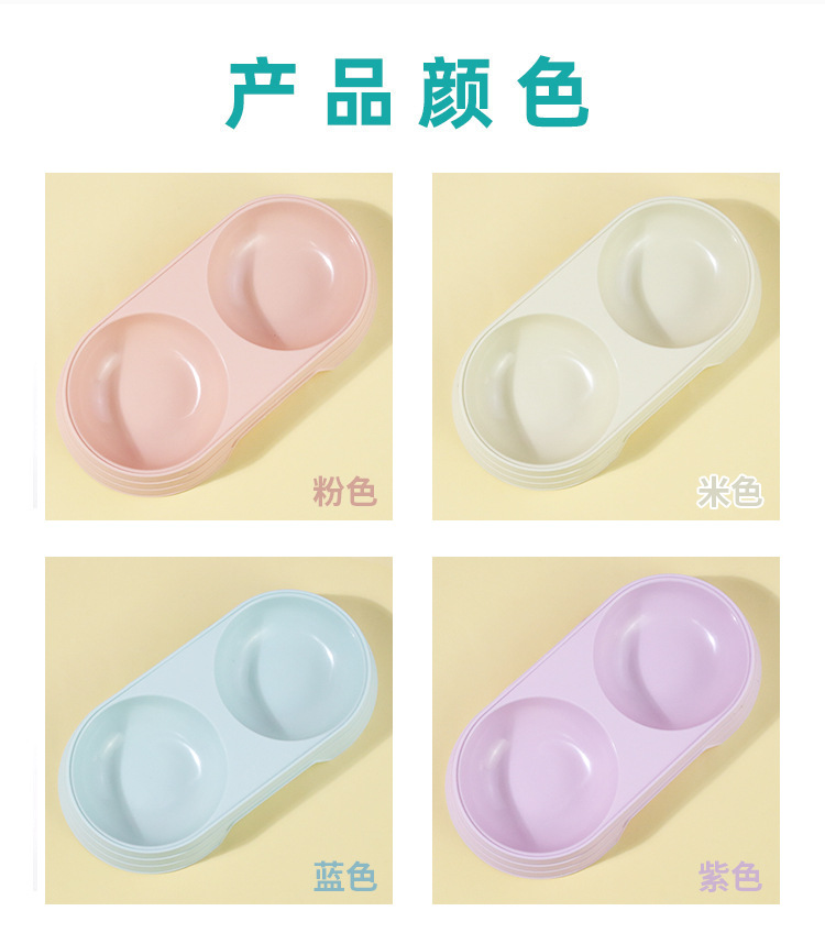 고양이 그릇 마카롱 캔디 컬러 흔들림 방지 애완 동물 피더 플라스틱 더블 그릇 타원형 간결한 스타일 애완 동물 그릇스토어 가기