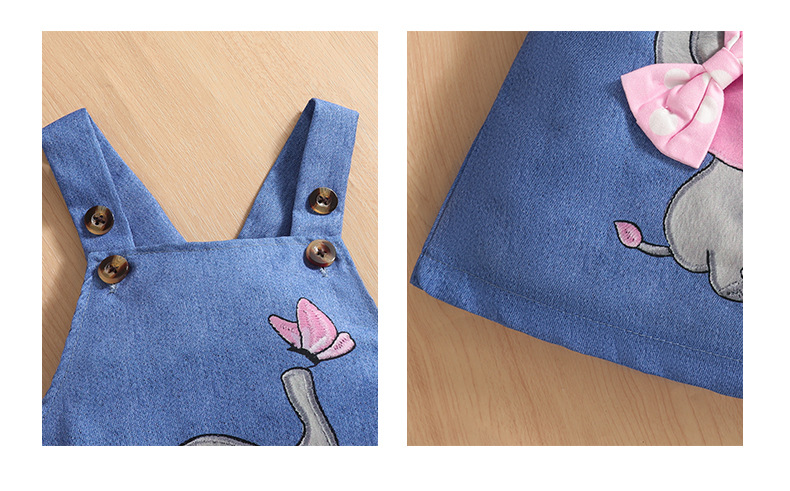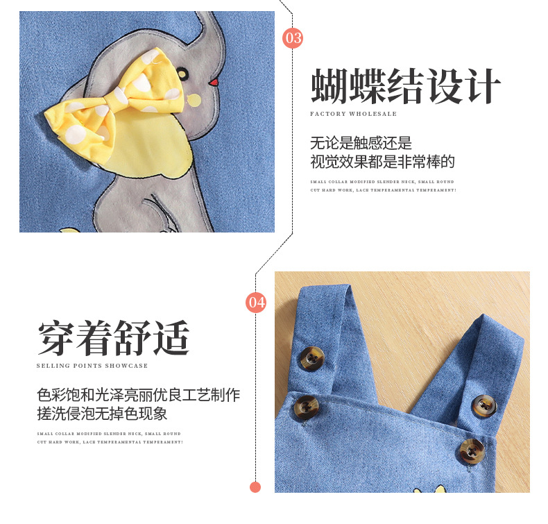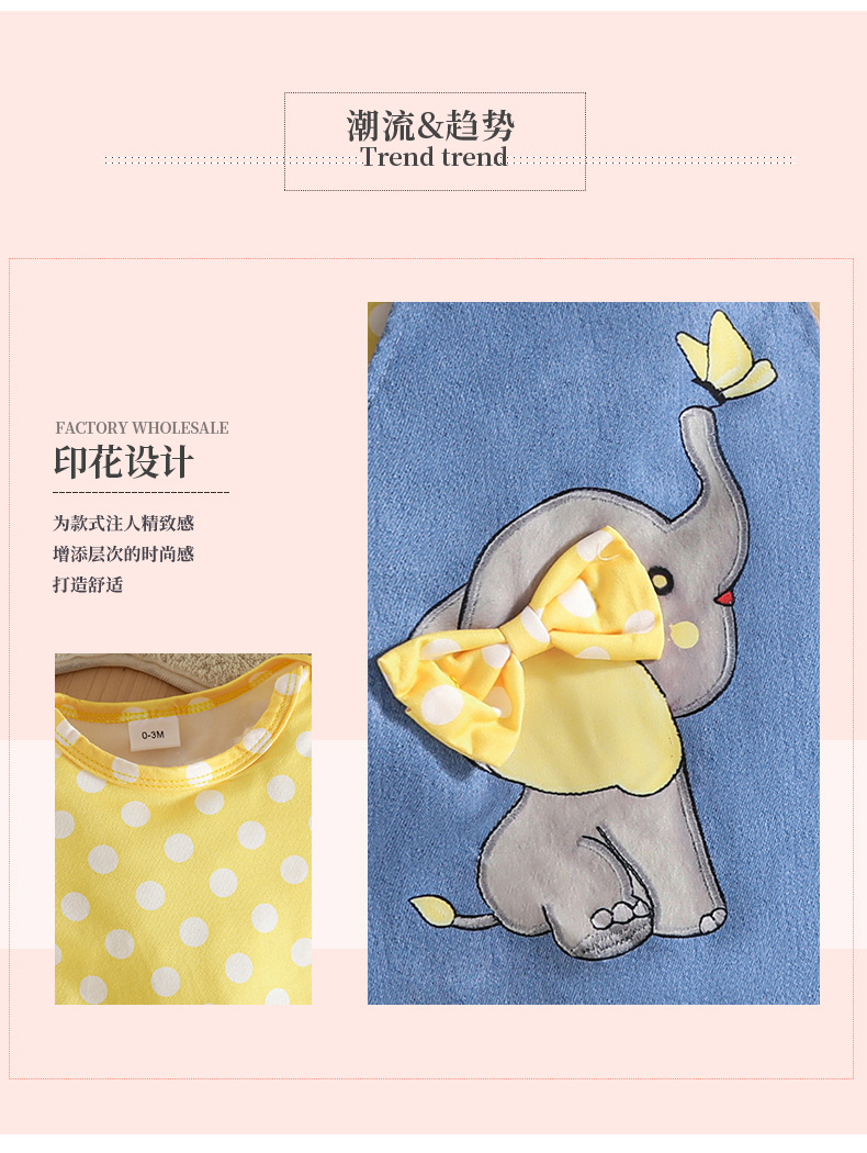 아기 옷 여름 반팔 양복 1 ~ 3 세 아기 소년 세련되고 귀여운 코끼리 데님 작업복 투피스 세트