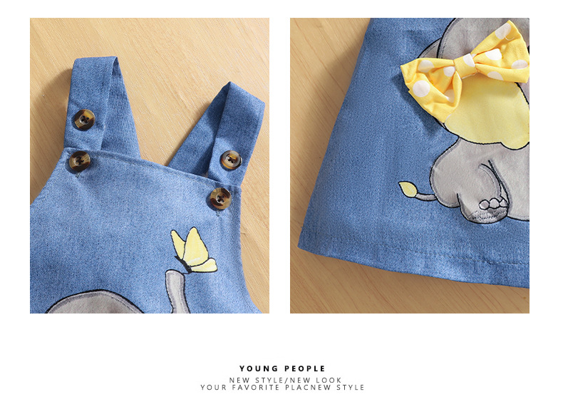 아기 옷 여름 반팔 양복 1 ~ 3 세 아기 소년 세련되고 귀여운 코끼리 데님 작업복 투피스 세트스토어 가기