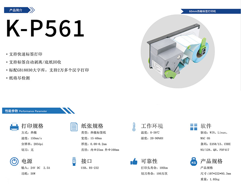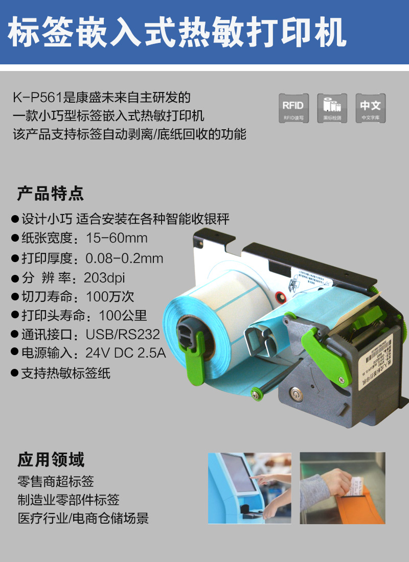 K-P561 임베디드 라벨 인쇄 모듈 자동 필링 라벨이 있는 스마트 스케일 임베디드 열전사 프린터