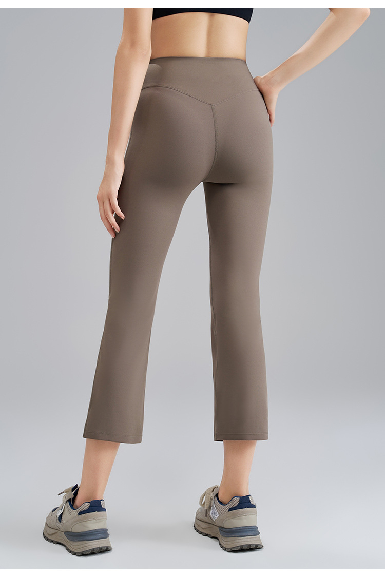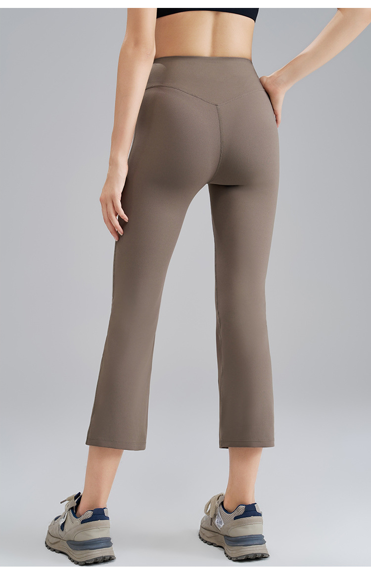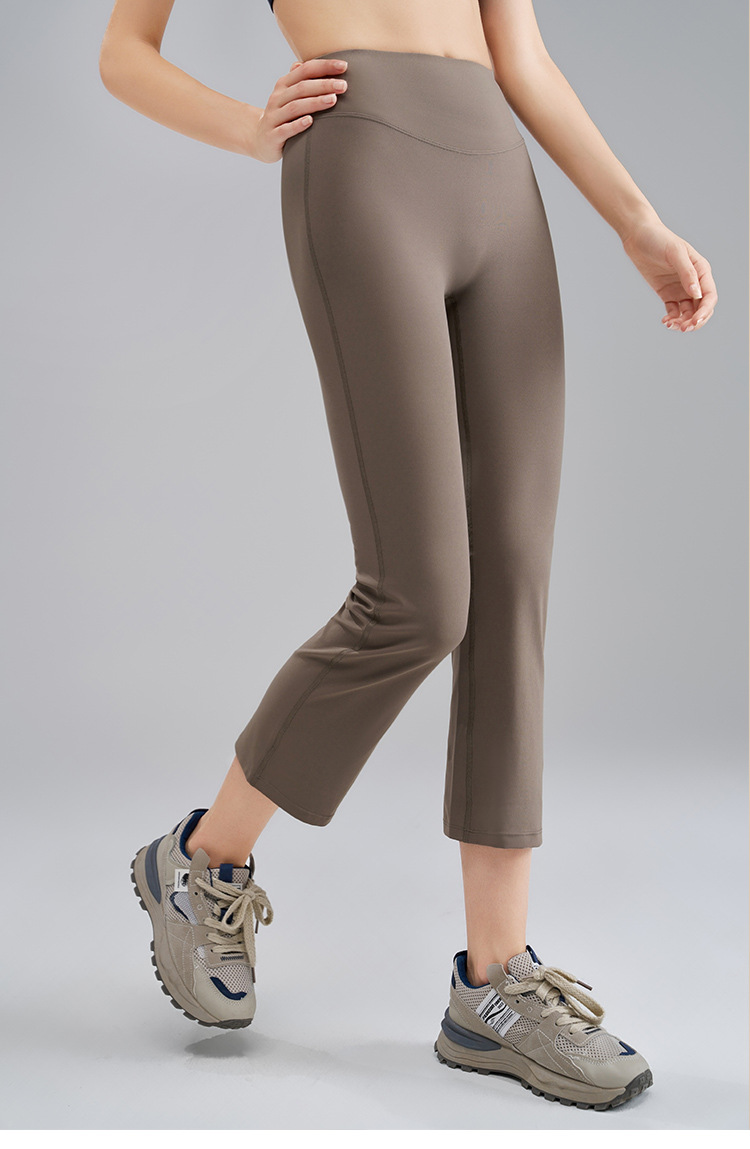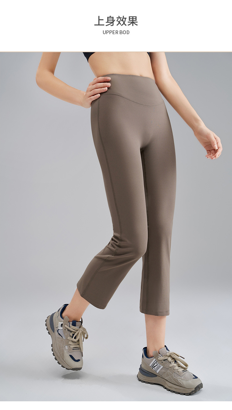 8부 스모크팬츠, 누드감 고탄력 요가 플레어팬츠, 여성 여름 마이크로 플레어팬츠, 하이웨이스트 피치힙 타이트 요가팬츠