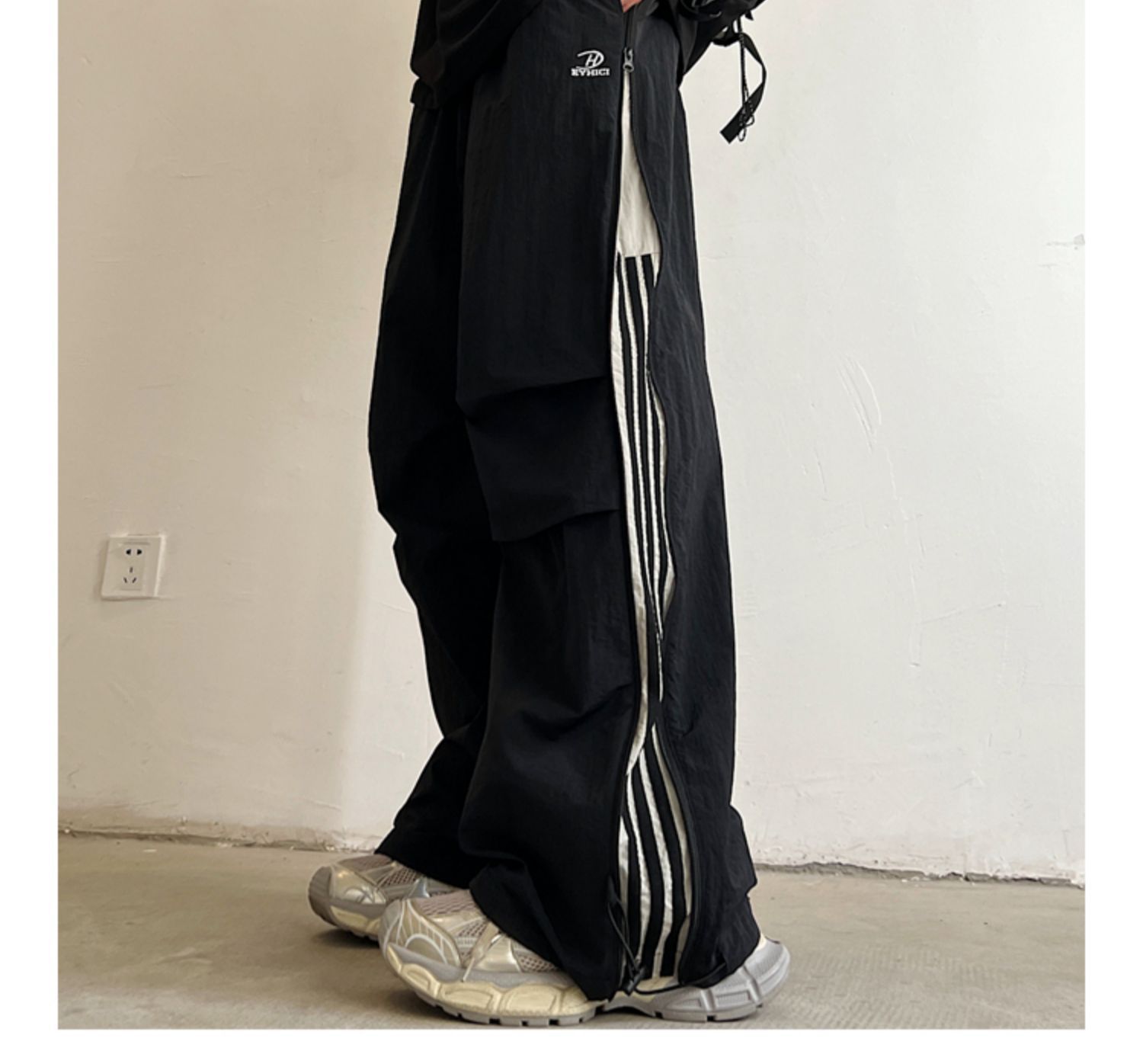 가을 남성용 미국식 속건성 낙하산 바지 트렌디 하이 스트리트 스트라이프 충전 바지 얇은 지퍼 와이드 레그 캐주얼 바지스토어 가기